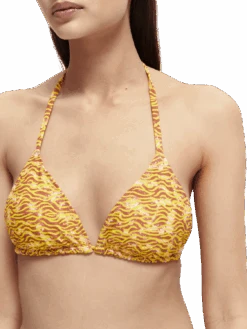 This bikini top is perfect for summer days at the pool, or trips to the beach. Adorned with an all-over pattern and available in a variety of colourways. Pair with our reversible bikini bottom to complete the look.