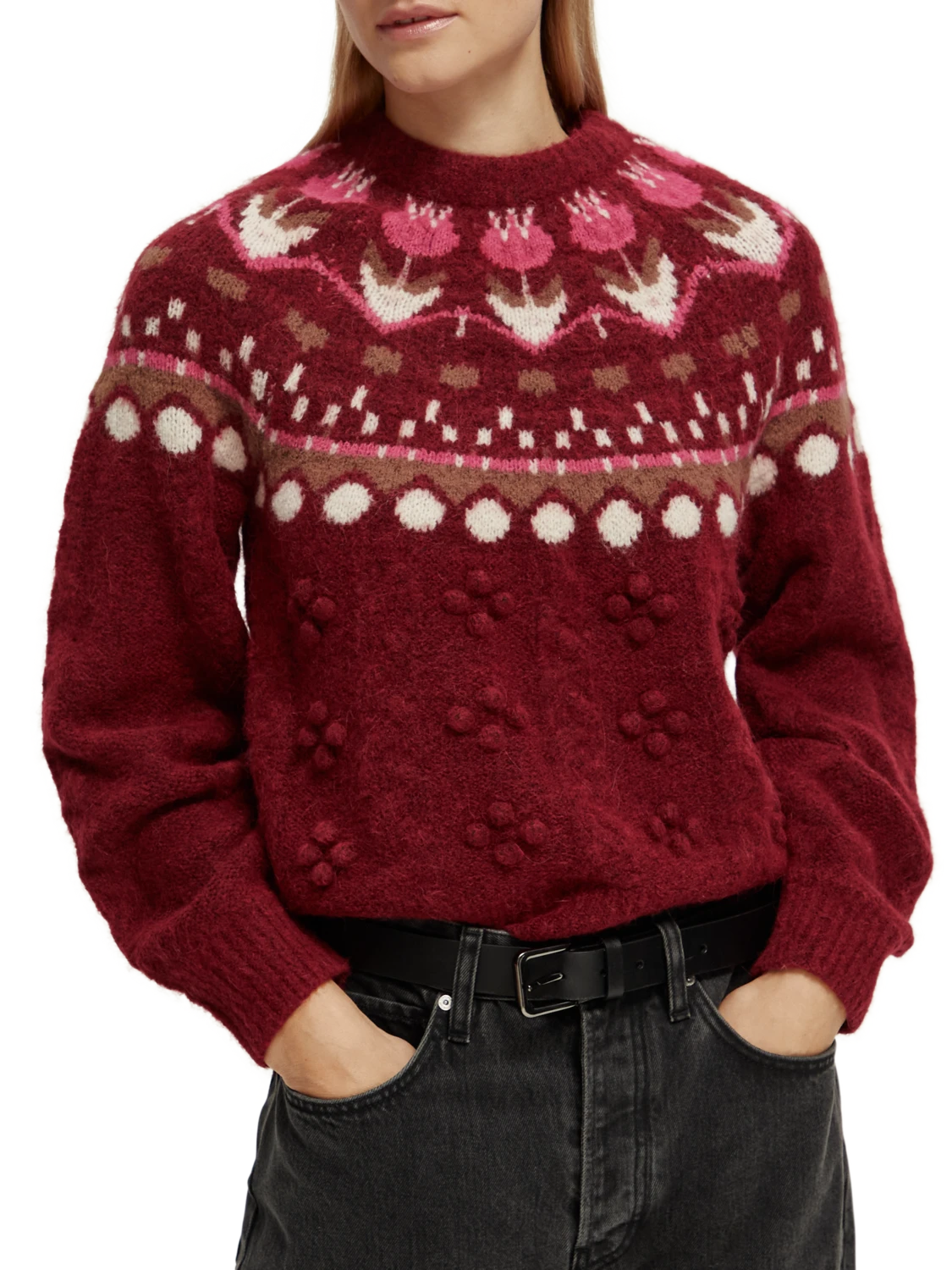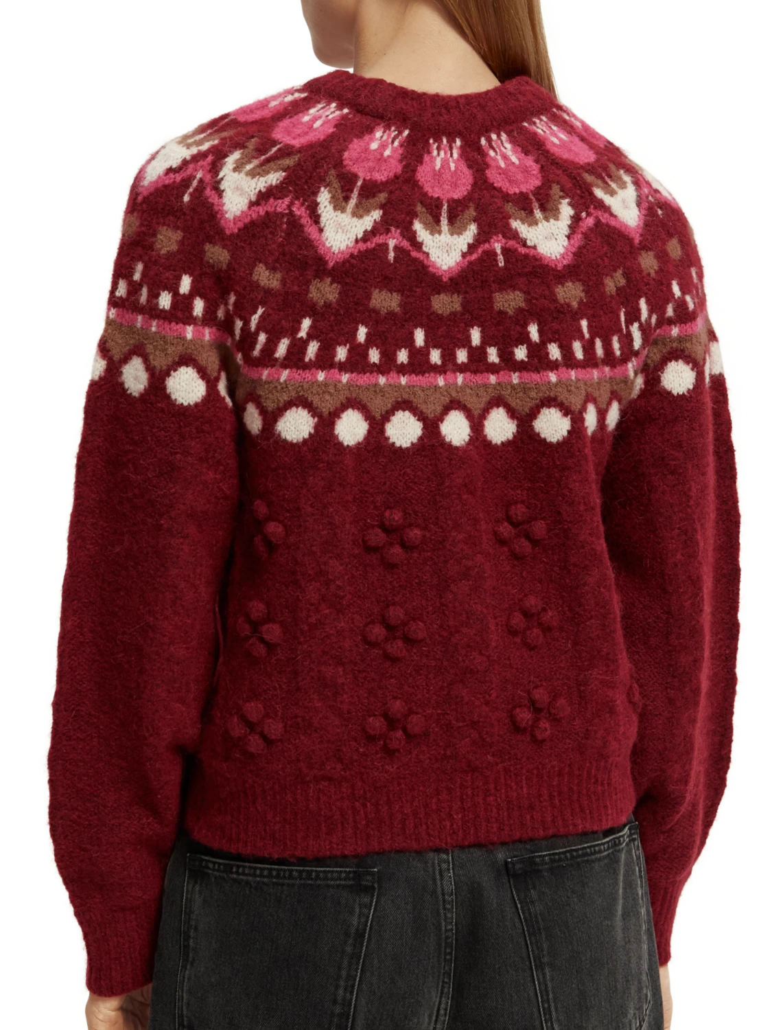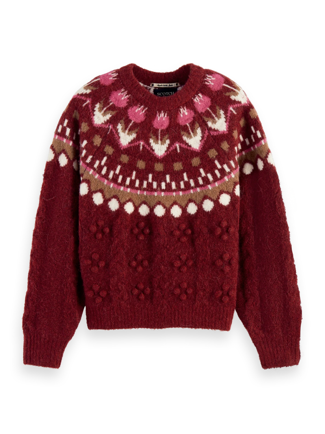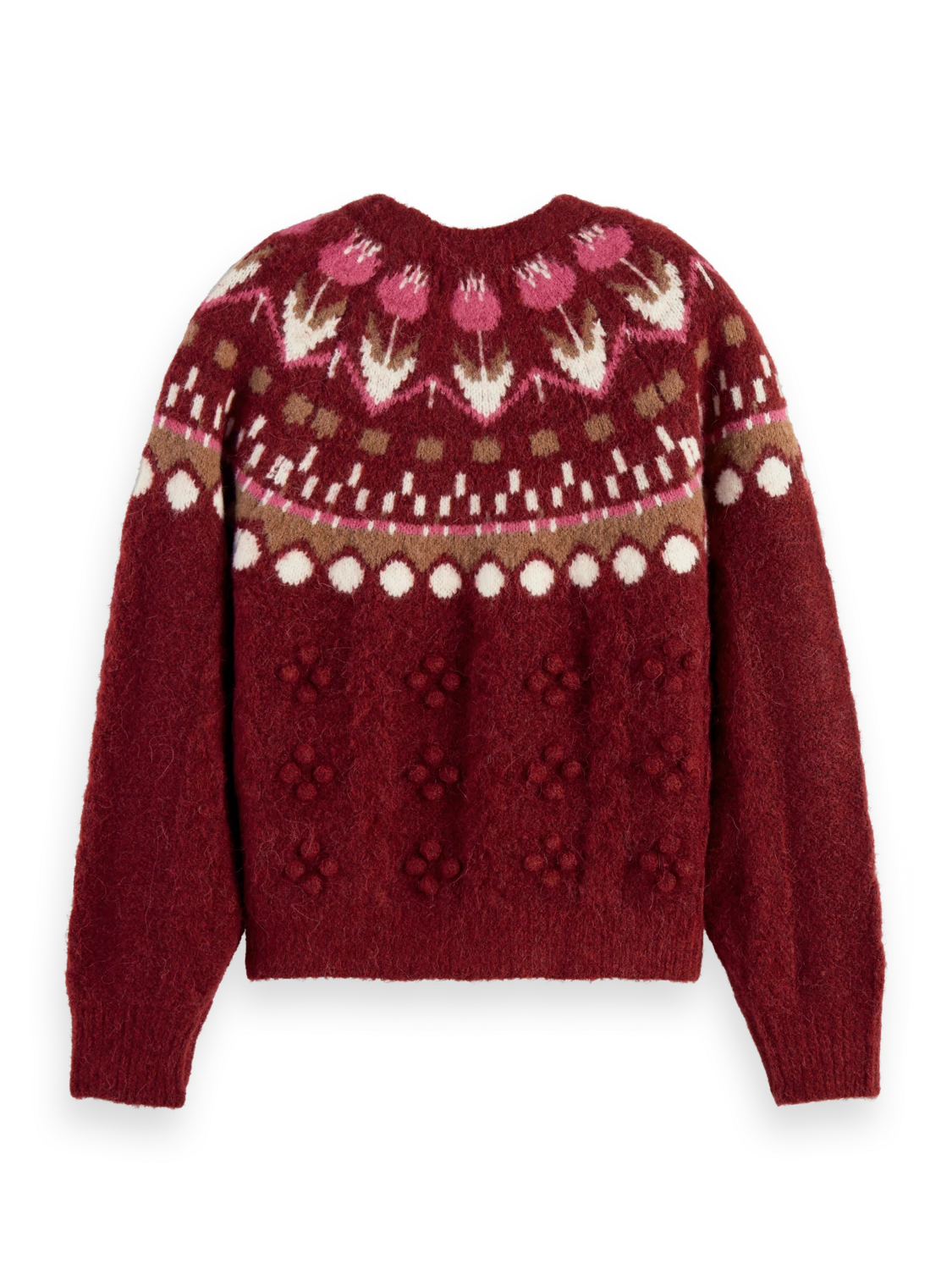The classic sweater is a favourite in any collection. Featuring a cable knit Fair Isle pattern and finished with a wide ribbed cuff and collar – this style supplies comfort and warmth for day-to-day wear.