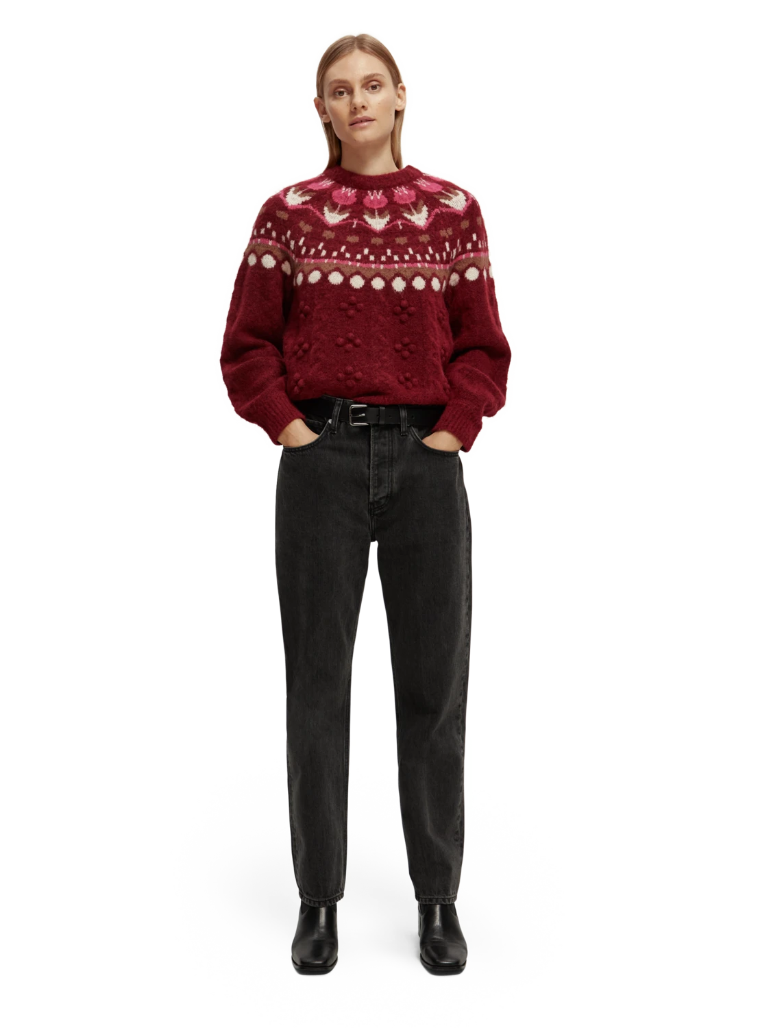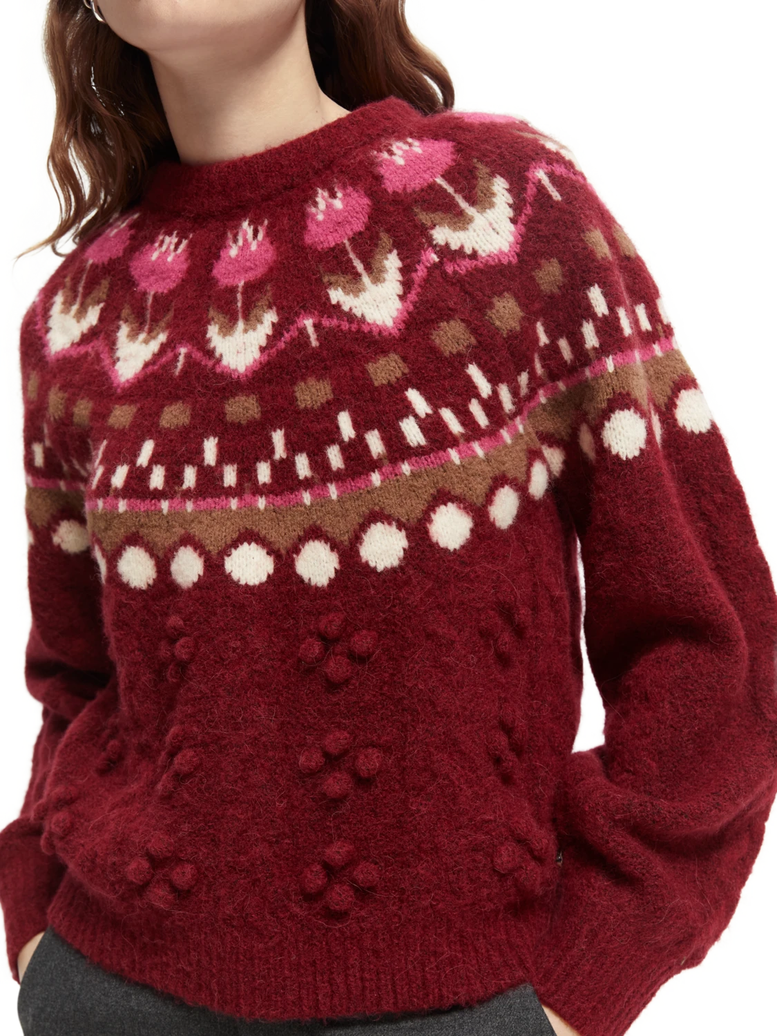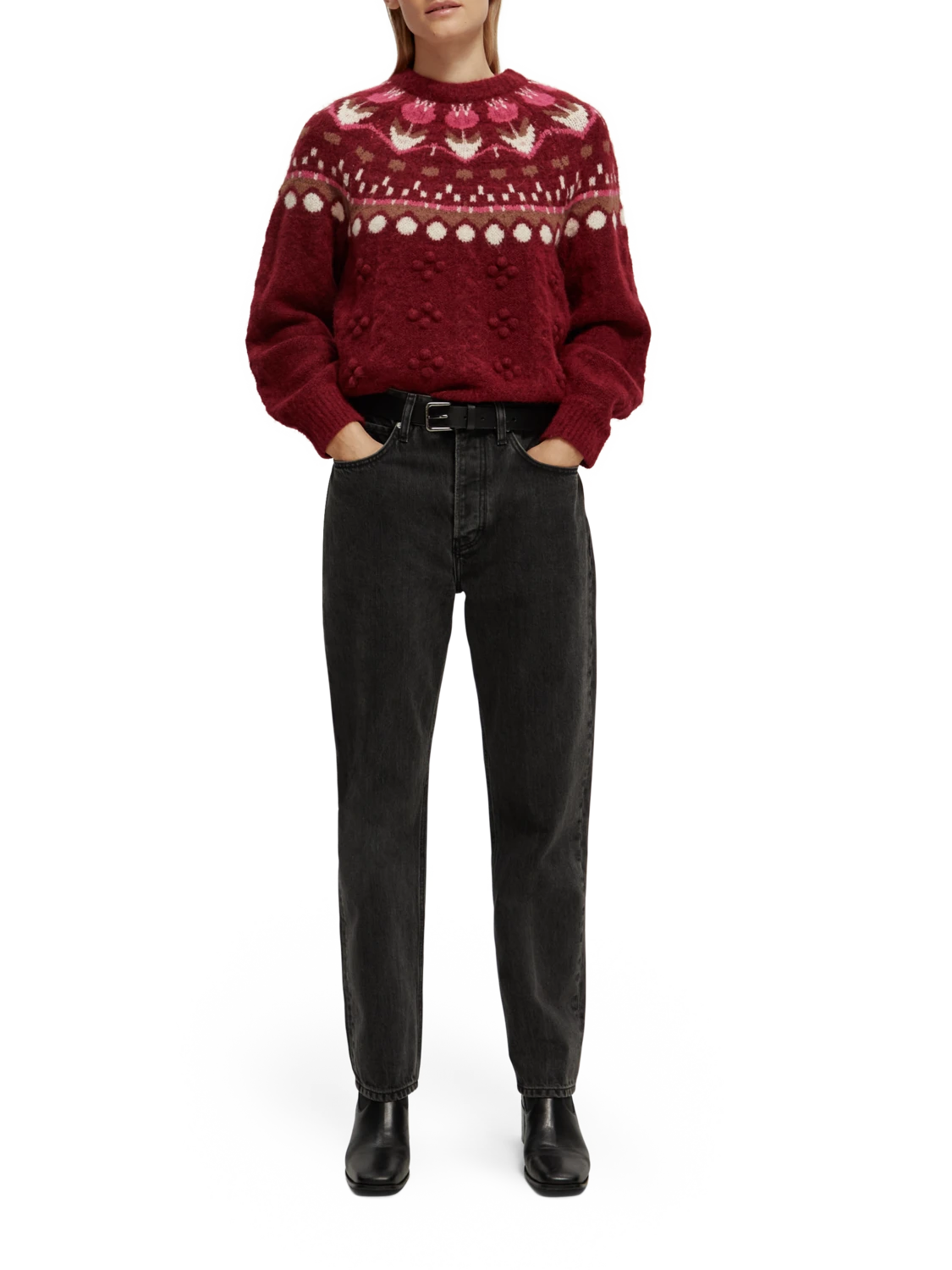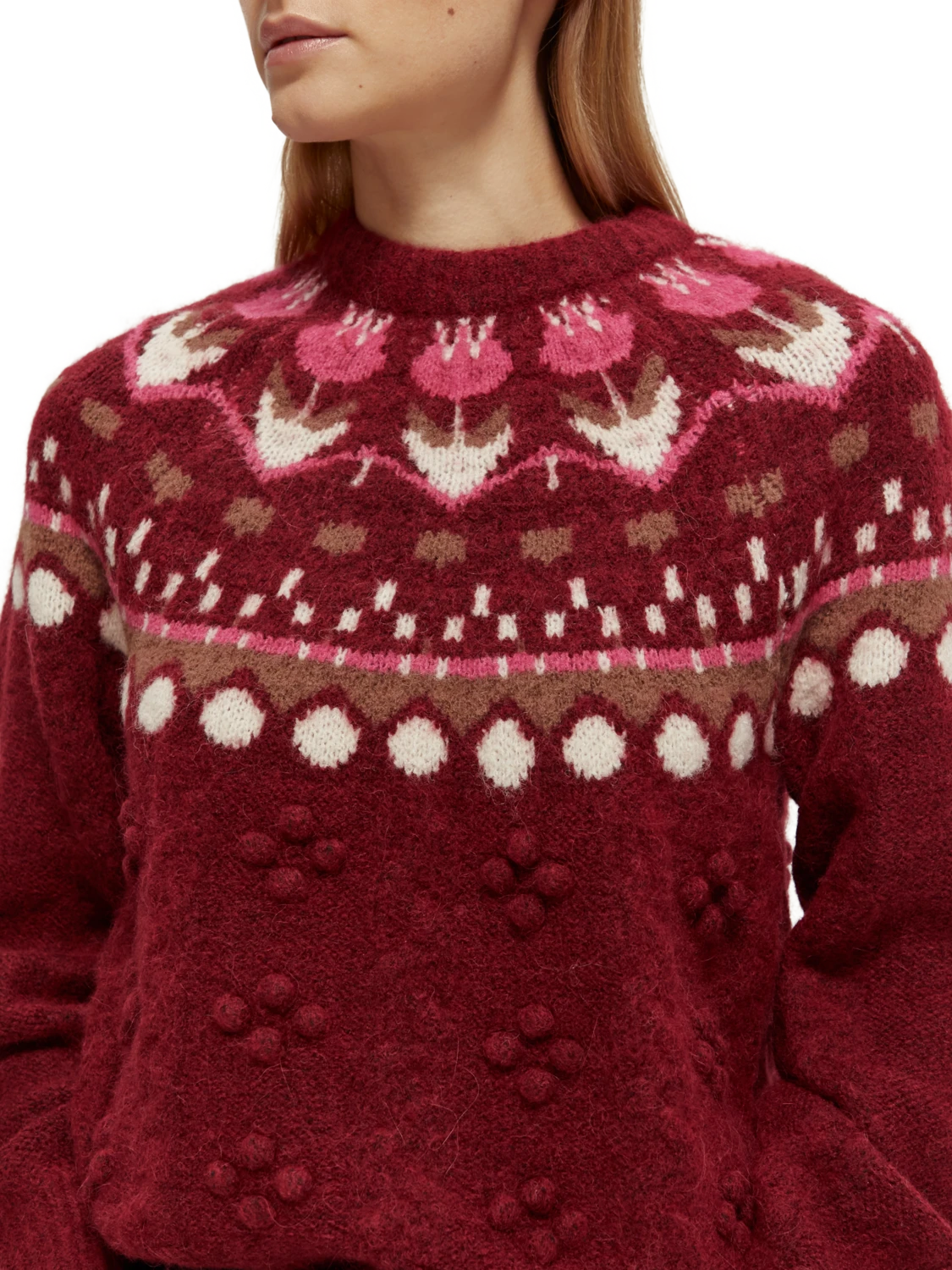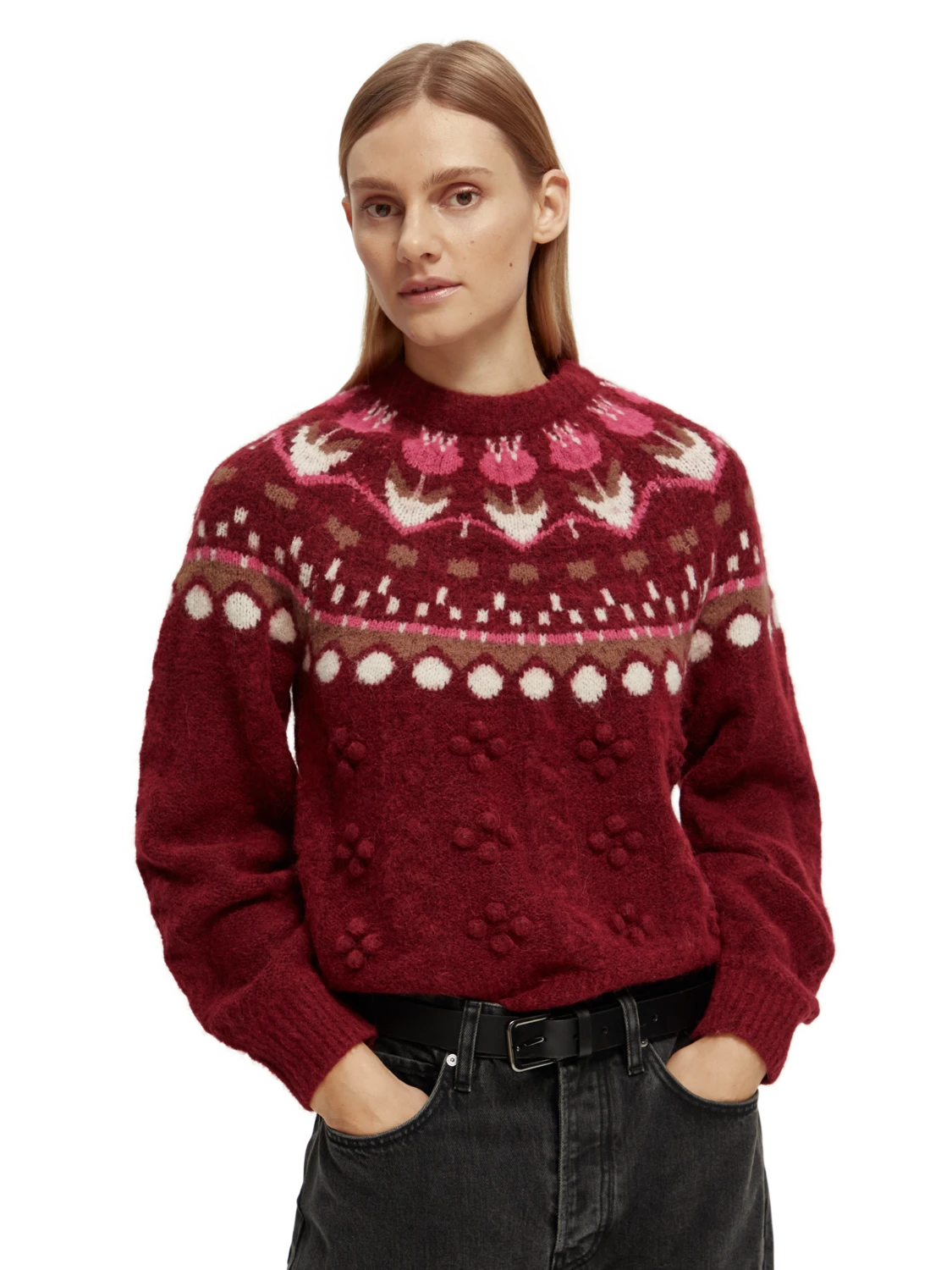 The classic sweater is a favourite in any collection. Featuring a cable knit Fair Isle pattern and finished with a wide ribbed cuff and collar – this style supplies comfort and warmth for day-to-day wear.
