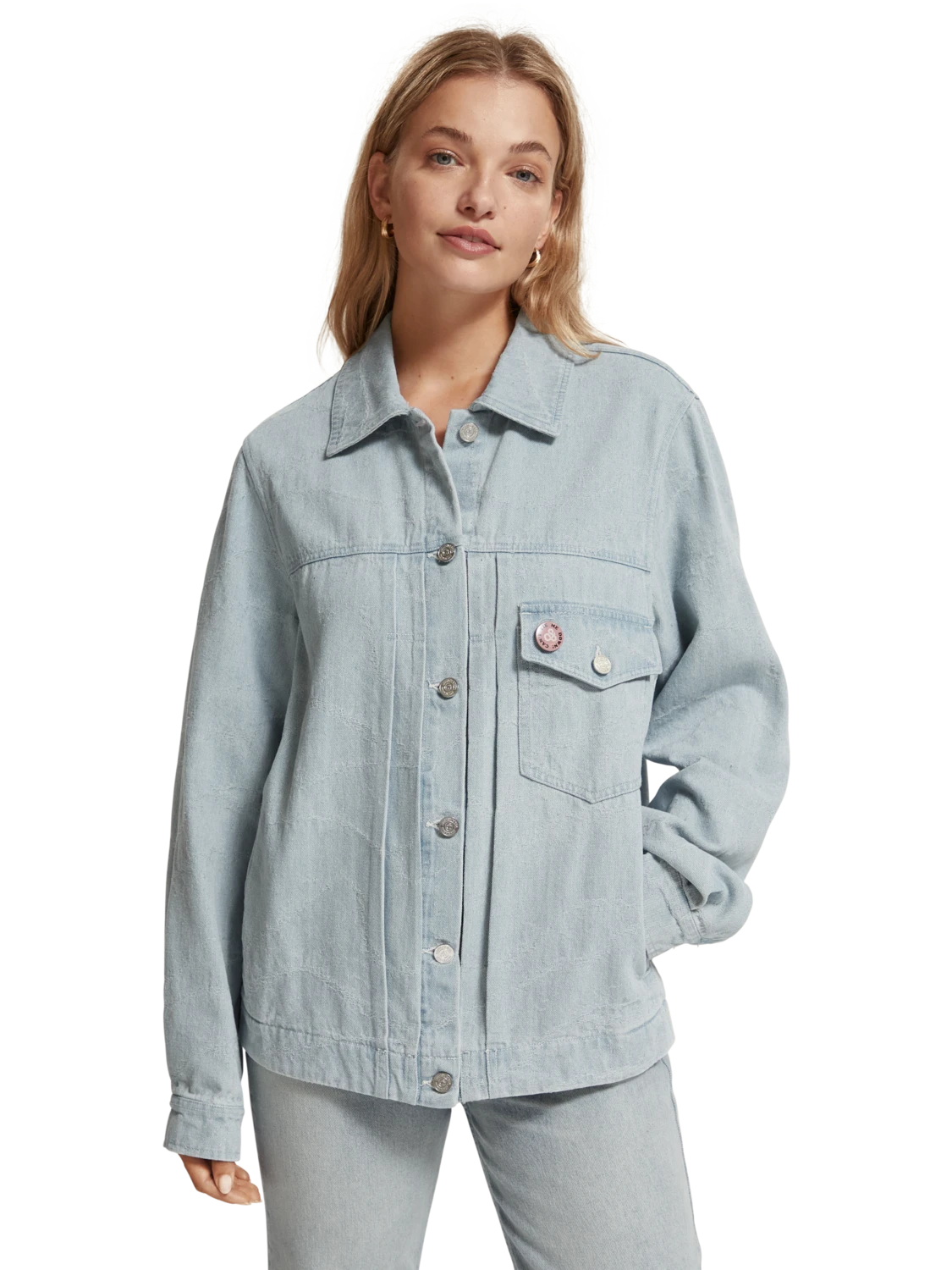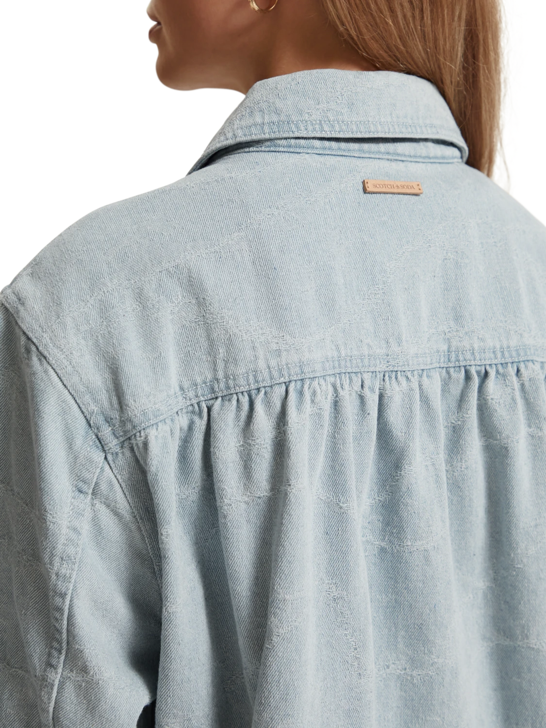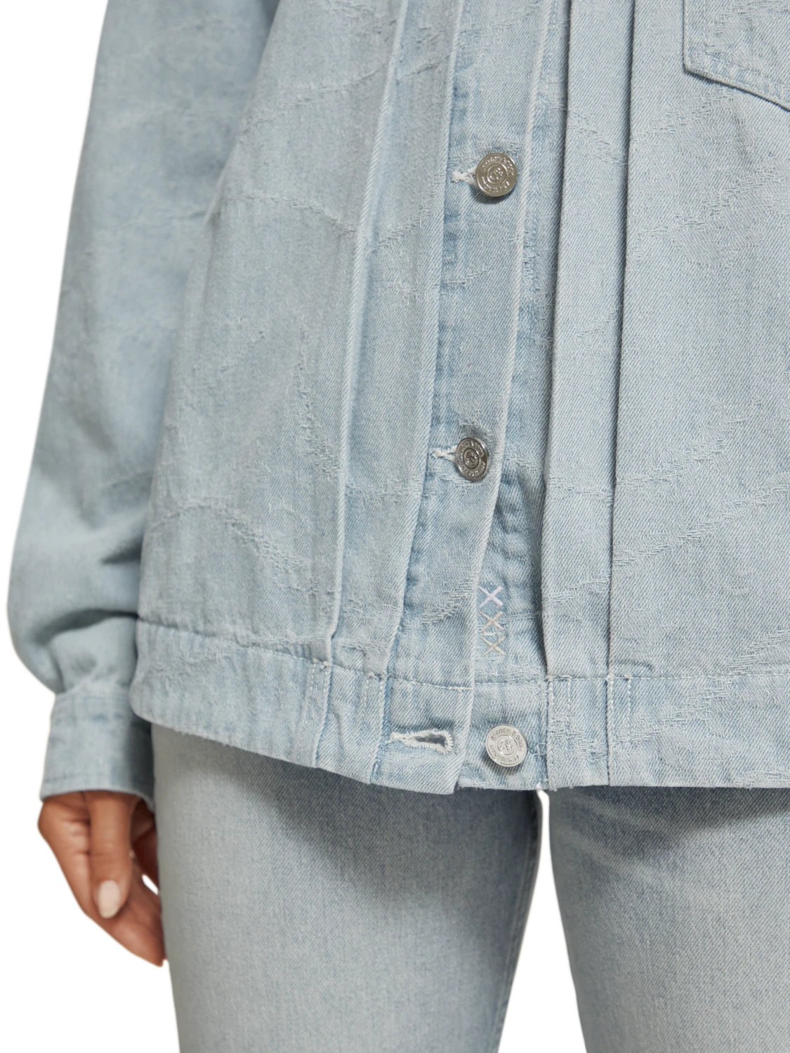Ride the waves of style with our Trucker Jacket in Indigo Waves Jacquard. The intricate jacquard pattern adds a touch of elegance to this timeless silhouette. With its effortlessly cool and versatile design, this jacket is perfect for layering or making a statement on its own. Whether you’re heading to a music festival or exploring the city streets, this jacket will have you riding the waves of fashion.