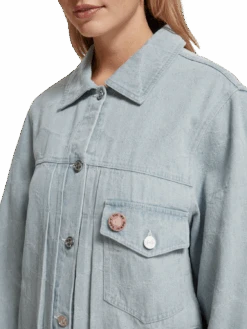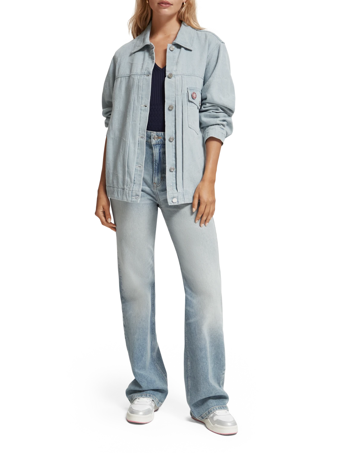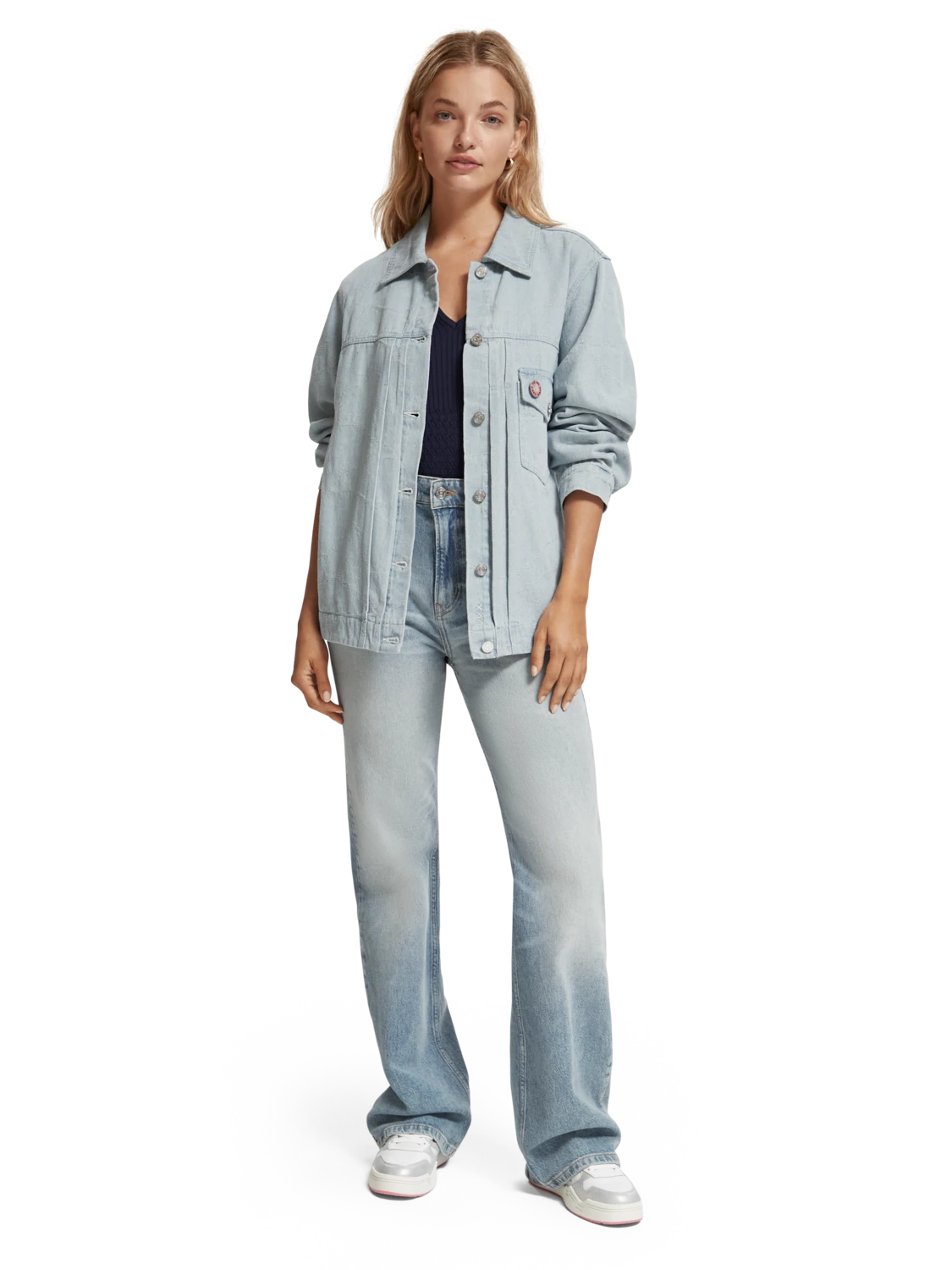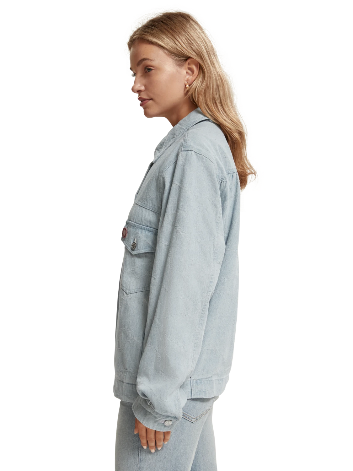 Ride the waves of style with our Trucker Jacket in Indigo Waves Jacquard. The intricate jacquard pattern adds a touch of elegance to this timeless silhouette. With its effortlessly cool and versatile design, this jacket is perfect for layering or making a statement on its own. Whether you’re heading to a music festival or exploring the city streets, this jacket will have you riding the waves of fashion.