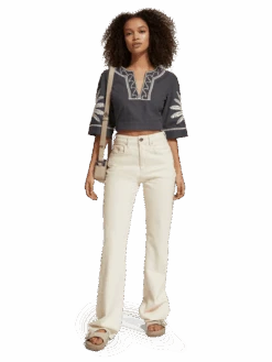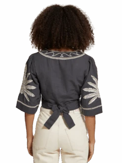 Bring out your inner bohemian with this embroidered crop top. Perfect for warm weather days, this top is designed to let you move with ease while making a statement through its intricate embroidered details. Pair it with high-waisted denim shorts or a flowy skirt, and you’re ready to channel your free-spirited side.