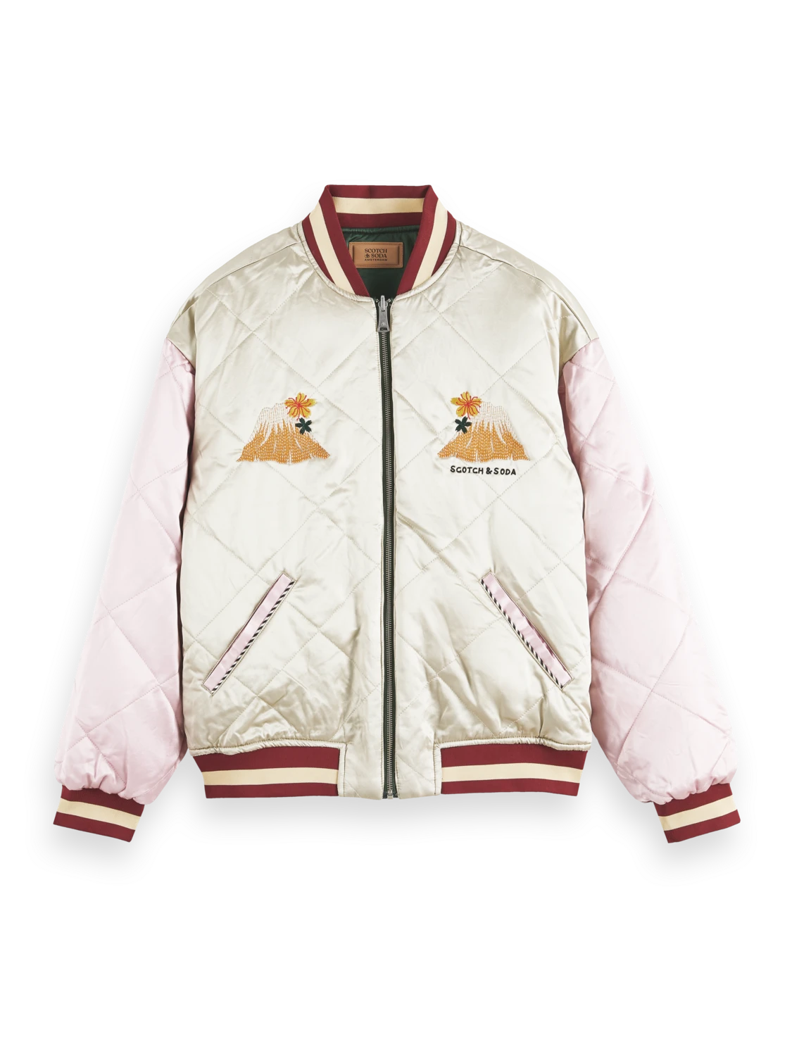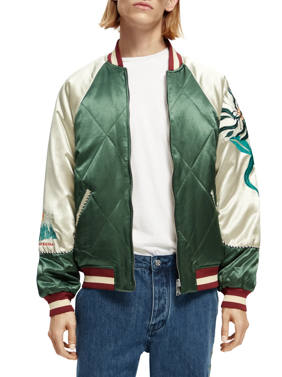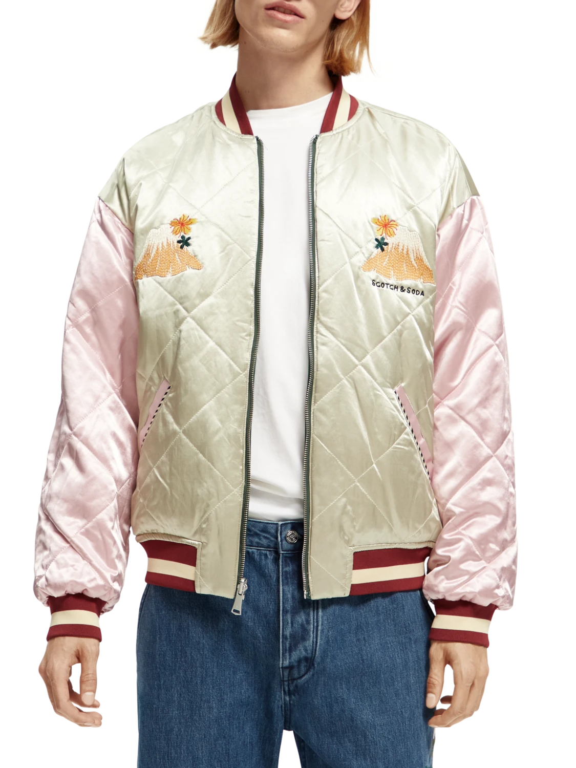 The bomber jacket is a timeless favourite with an iconic design. This satin variation comes highlighted by this season’s Sakura floral themes in an eye-catching embroidery with a zip-through closure – finished with a two-toned ribbed hem, cuff and collar.