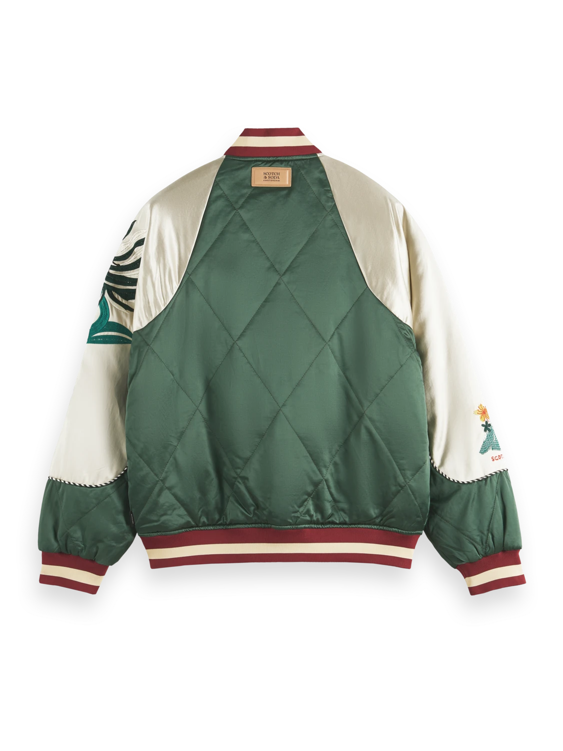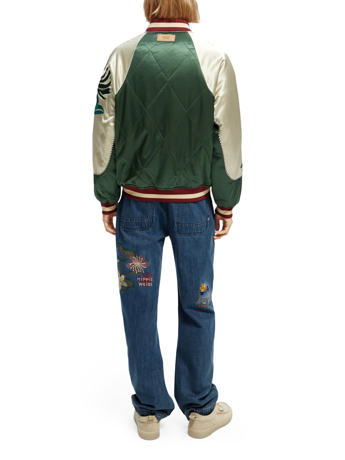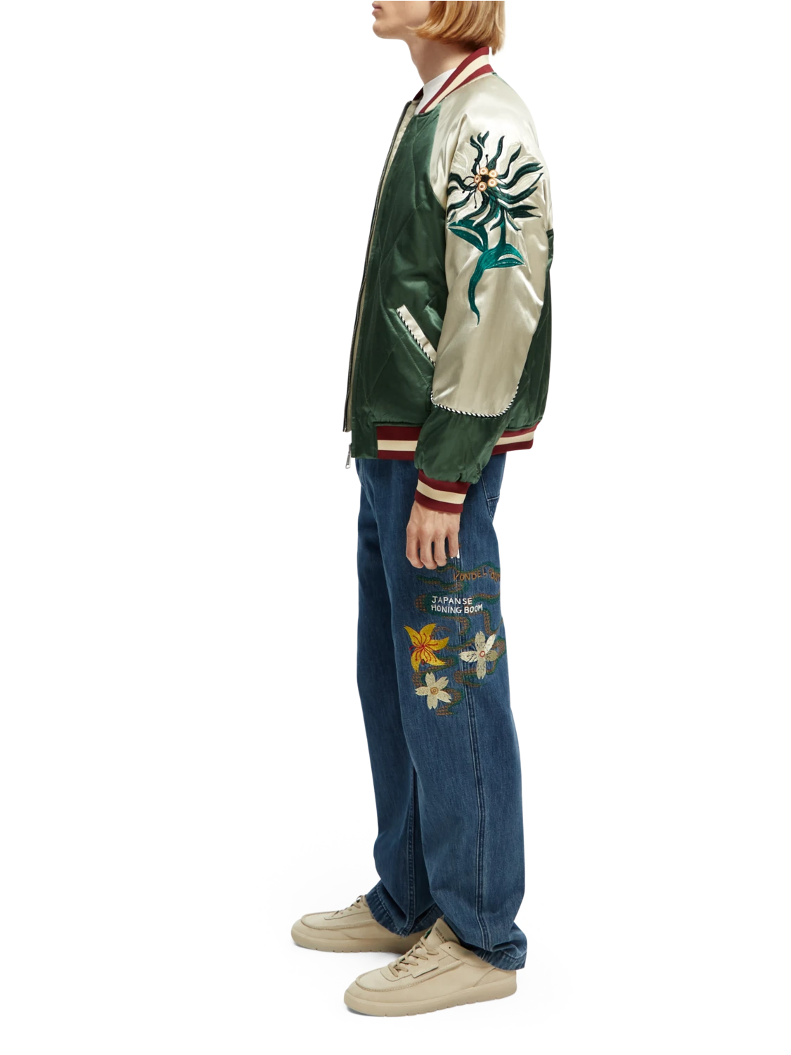 The bomber jacket is a timeless favourite with an iconic design. This satin variation comes highlighted by this season’s Sakura floral themes in an eye-catching embroidery with a zip-through closure – finished with a two-toned ribbed hem, cuff and collar.