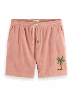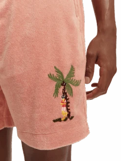 Our latest variation of the iconic summer favourite, Bermuda shorts, comes right in time as temperatures start to rise. Cut from a soft towelling, these Bermuda shorts feature an eye-catching tropical-themed embroidery. We’ve added a tipped drawstring adjustment making it effortless to find a perfect fit.