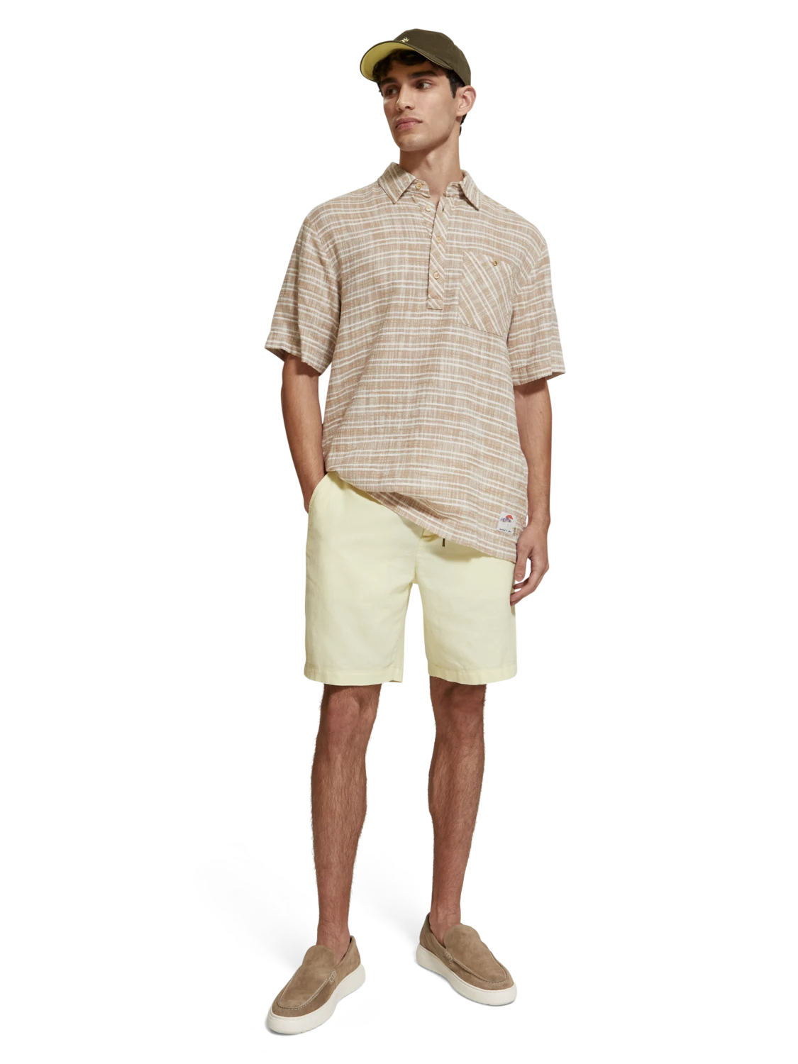 Our FAVE- Cotton/Linen Twill Bermuda shorts are the perfect blend of comfort and style. Made with premium fabrics, these eclectic shorts offer a unique twist on a classic silhouette. Whether you’re hitting the beach or exploring the city, these Bermuda shorts are a versatile addition to your warm-weather wardrobe. Embrace your individuality and express yourself with this bold and contemporary piece.