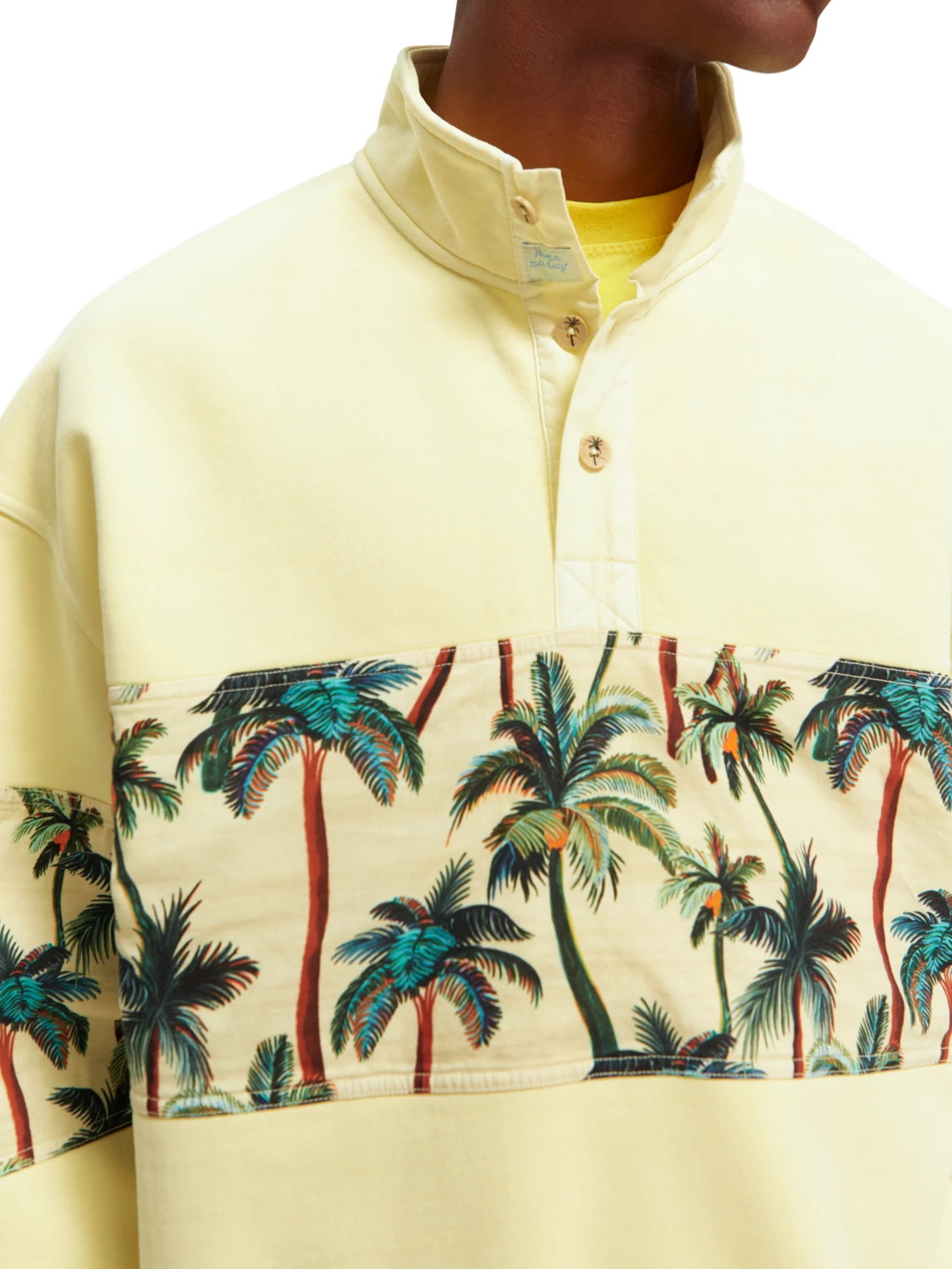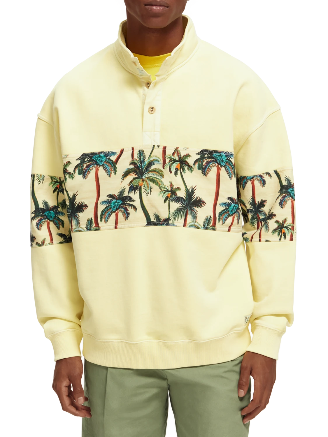The sweatshirt is a favourite in any collection. Featuring a high neck with a half-button placket and a fun, tropical themed design across the mid-section – this style supplies comfort and warmth for day-to-day wear.