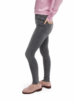 Haut is our high-rise skinny-fit denim. The super stretch grey fabric on these jeans is stone-washed down to a Summery shade and finished with a soft hand feel.
