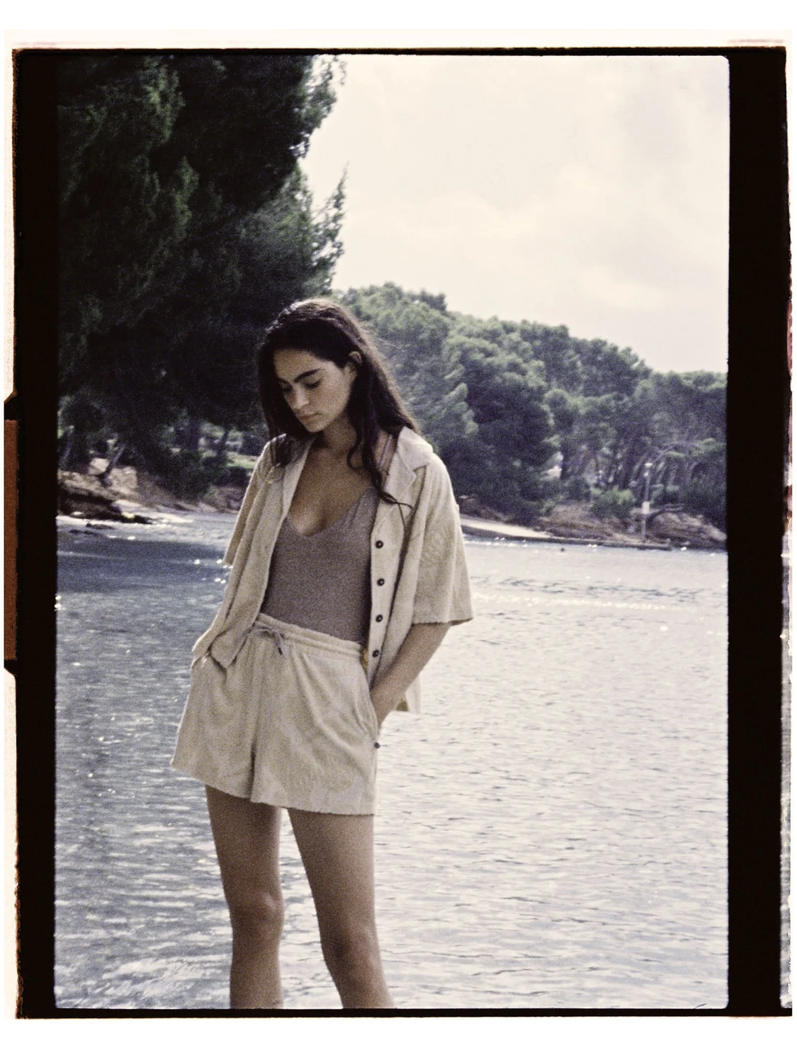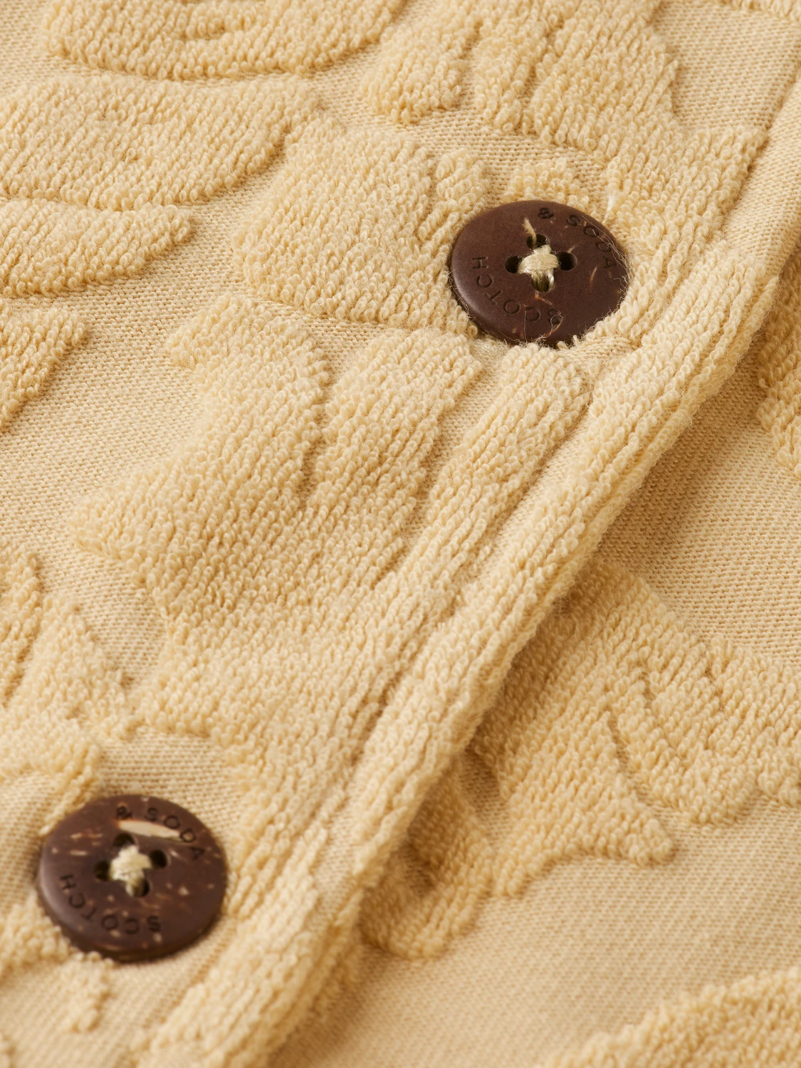 Step into ultimate comfort and style with our Jacquard Toweling Camp Shirt. The luxe jacquard toweling fabric adds a touch of sophistication to this relaxed silhouette. Made with high-quality materials and attention to detail, this camp shirt is perfect for expressing your true self. Whether you’re lounging at home or heading to the beach, the Jacquard Toweling Camp Shirt is the epitome of effortless style.