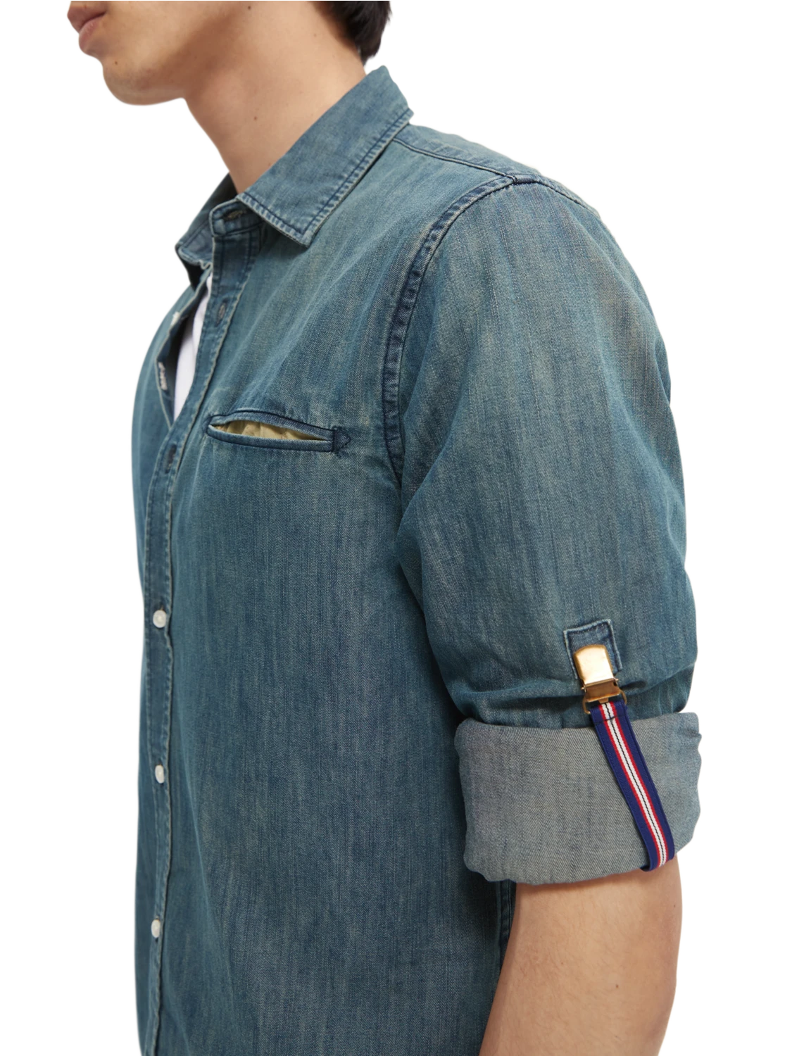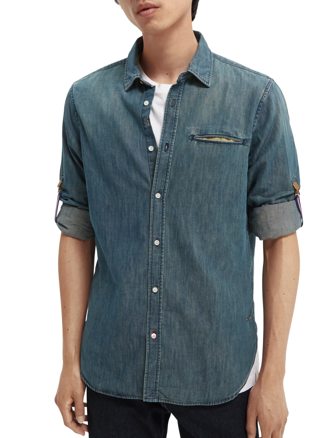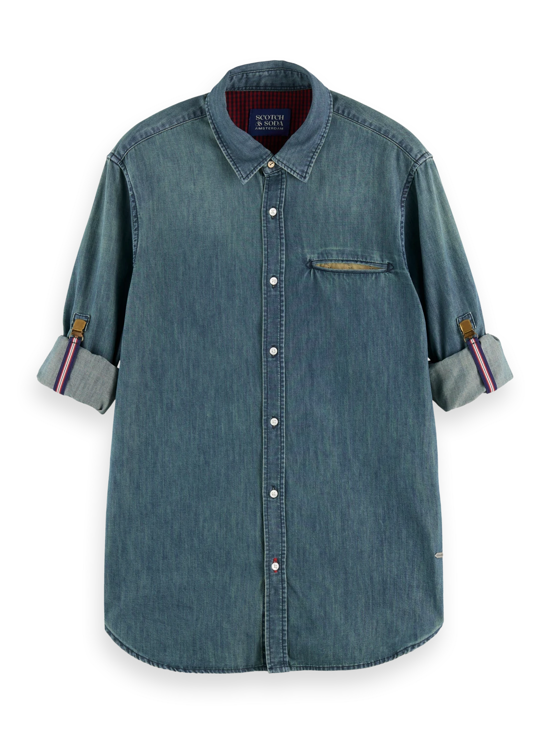 Cut from a lightweight cotton-blend, this shirt features a pocket style chest pocket and sleeve holders.