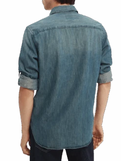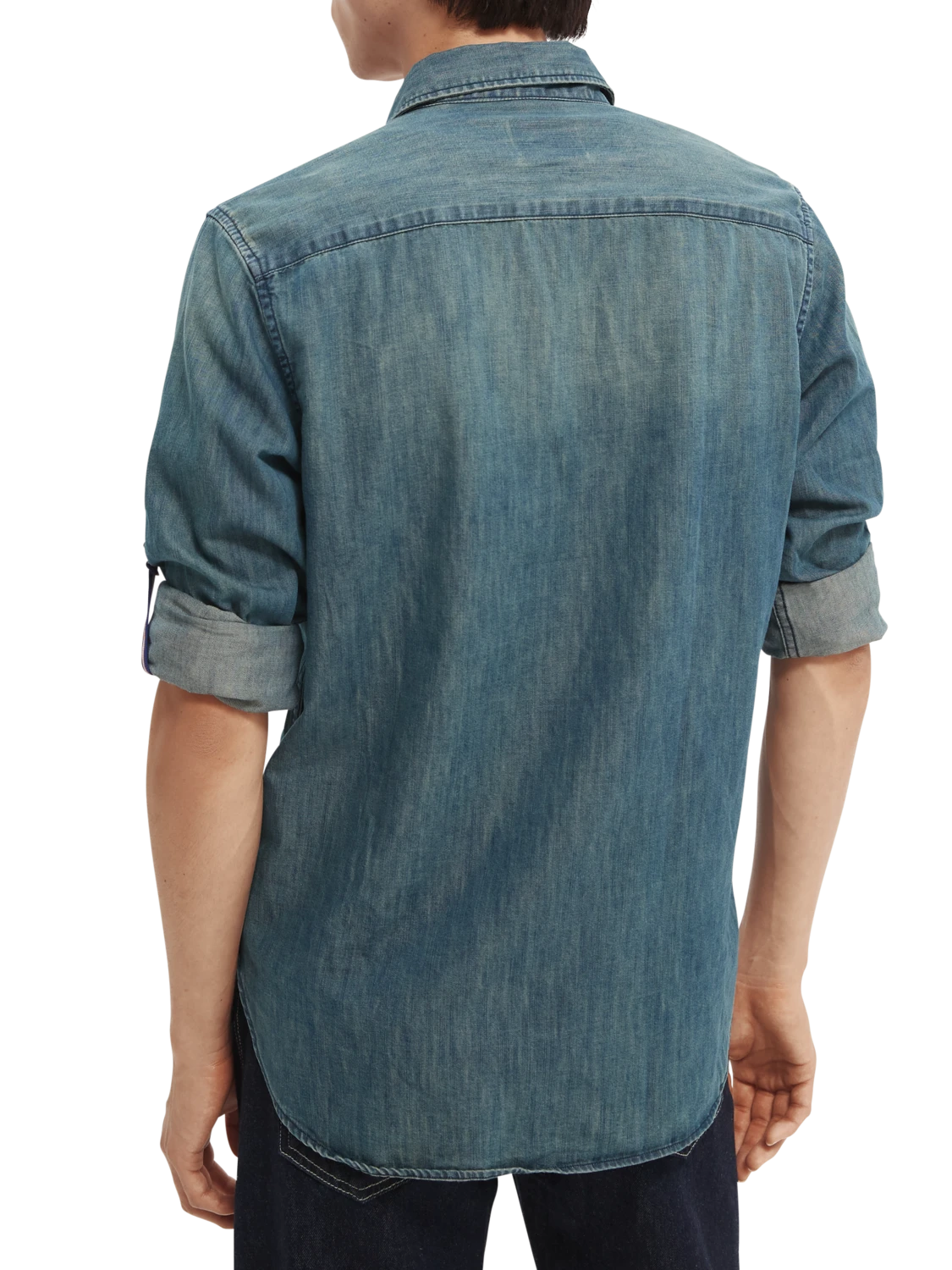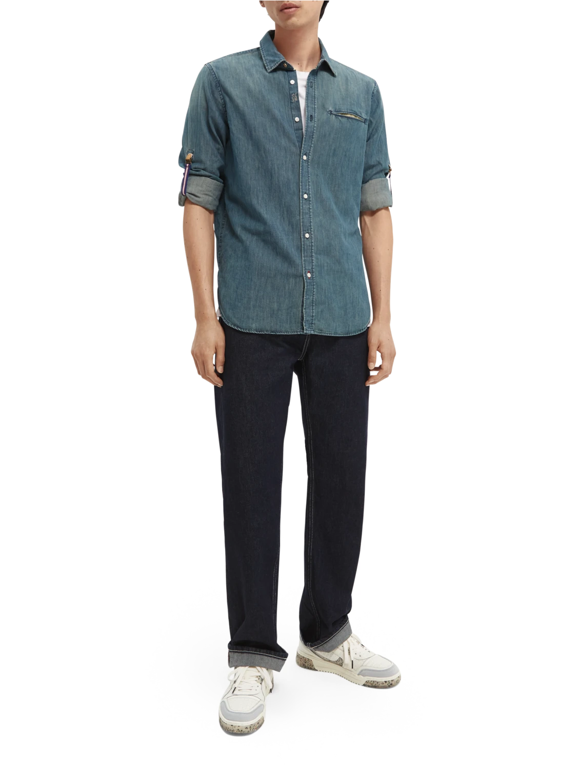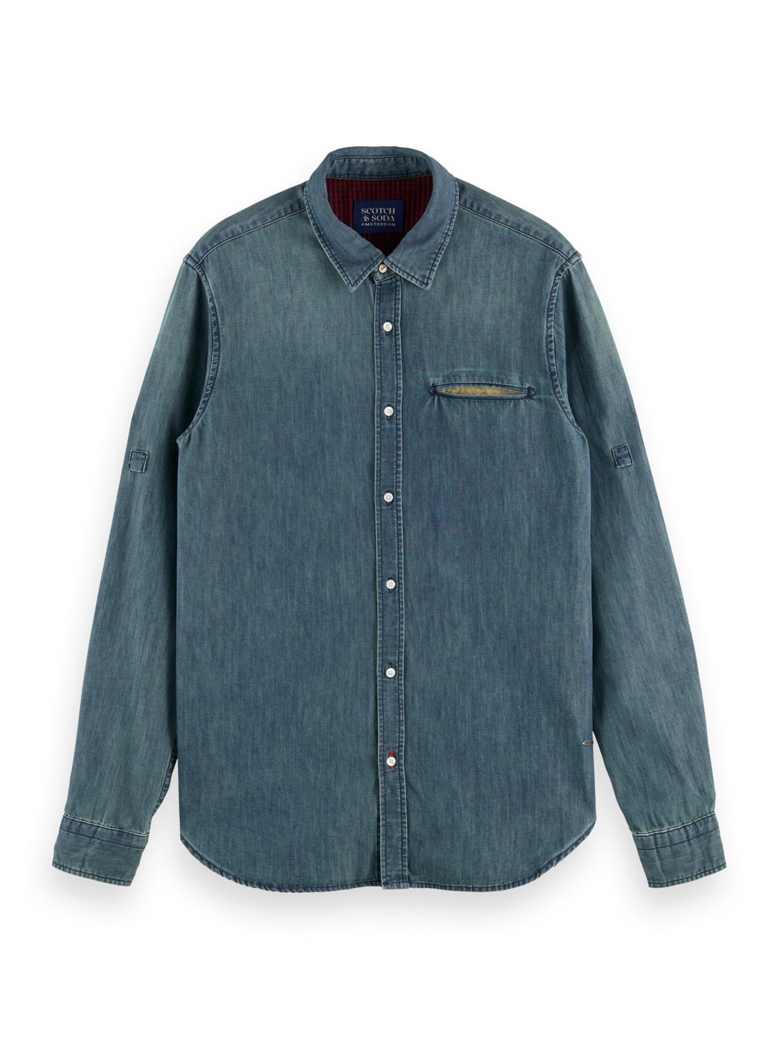 Cut from a lightweight cotton-blend, this shirt features a pocket style chest pocket and sleeve holders.