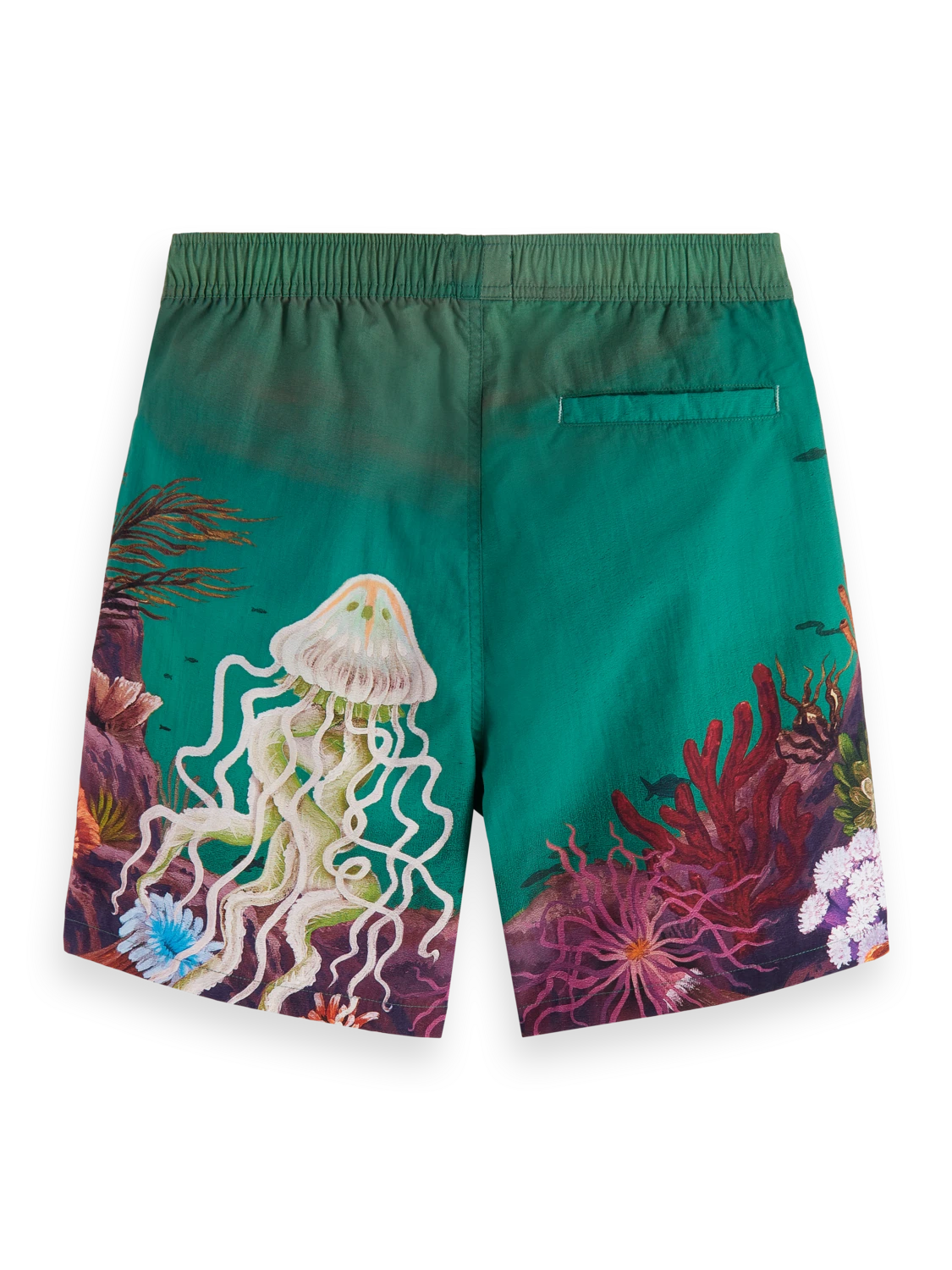 Make a statement at the beach with our Mid Length Swim Short Placement Print. The strategically placed print, quick-dry fabric, and comfortable fit come together to create a swim short that celebrates creativity and individuality. Embrace your unique style and dive into summer with this eclectic essential.