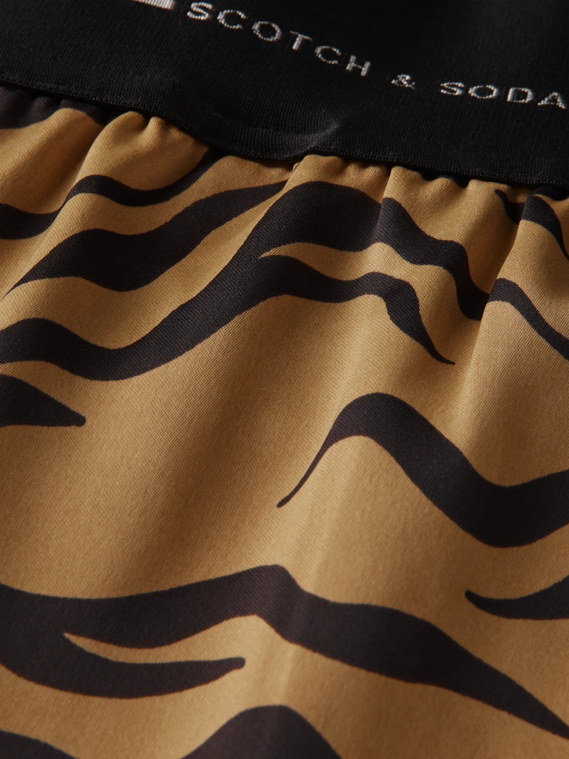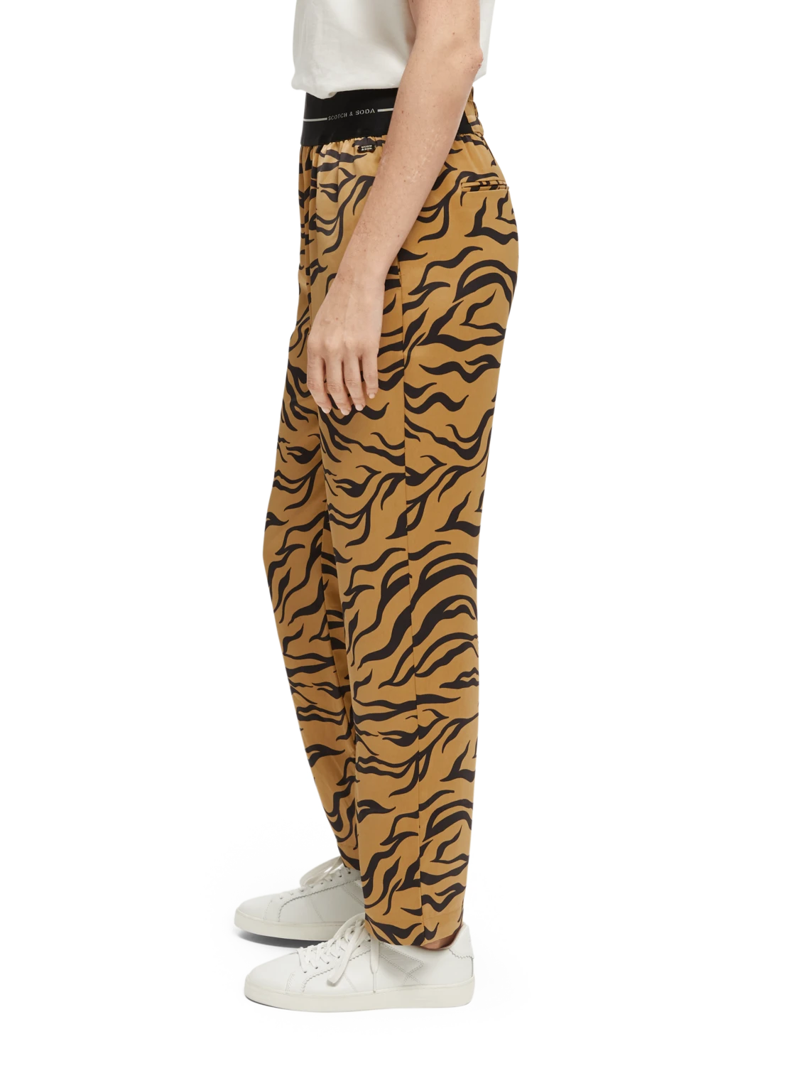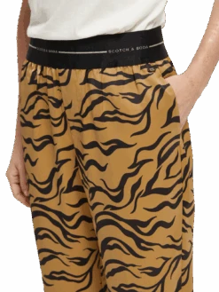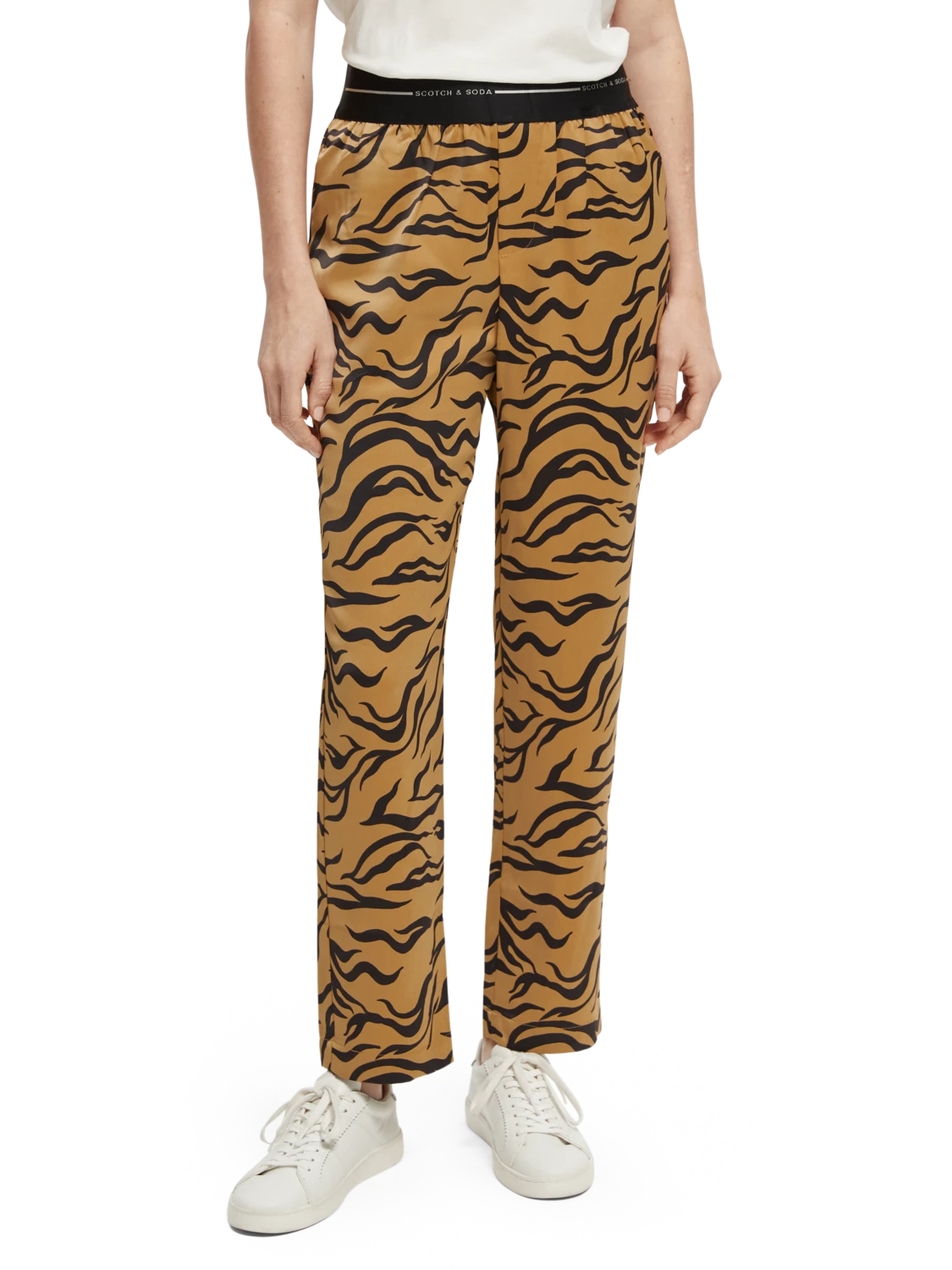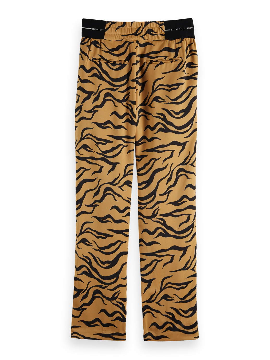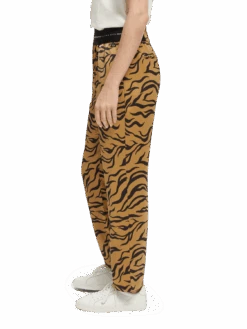 Who said being bold shouldn’t be comfortable? Well not us. This season enjoy our elasticated trousers in two stunning prints. Finished with branded waistband, metal plate detailing and back pockets.