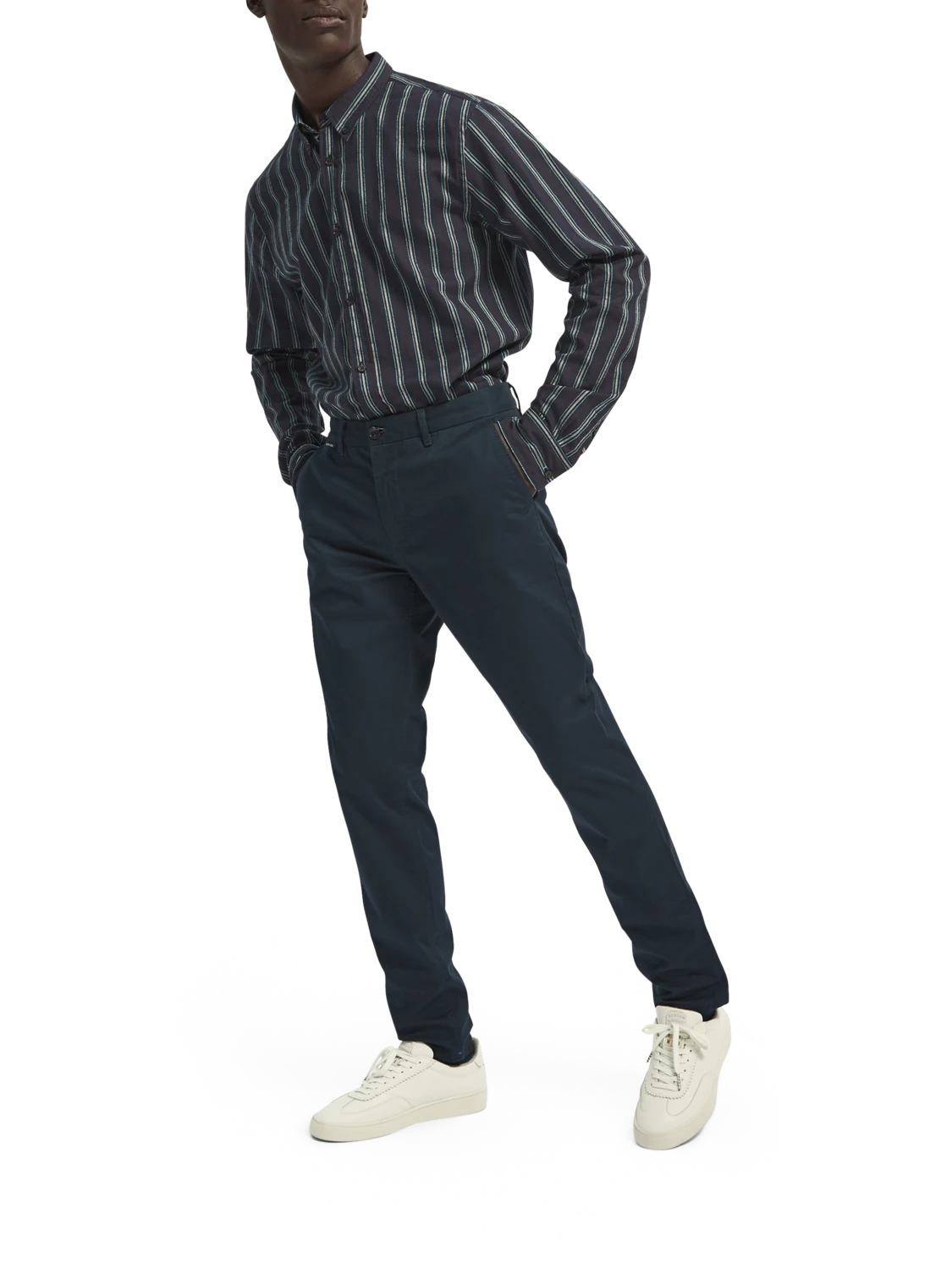 A super-slim leg, regular length and mid-rise make these trousers for men a versatile style essential. Made with an easy stretch.