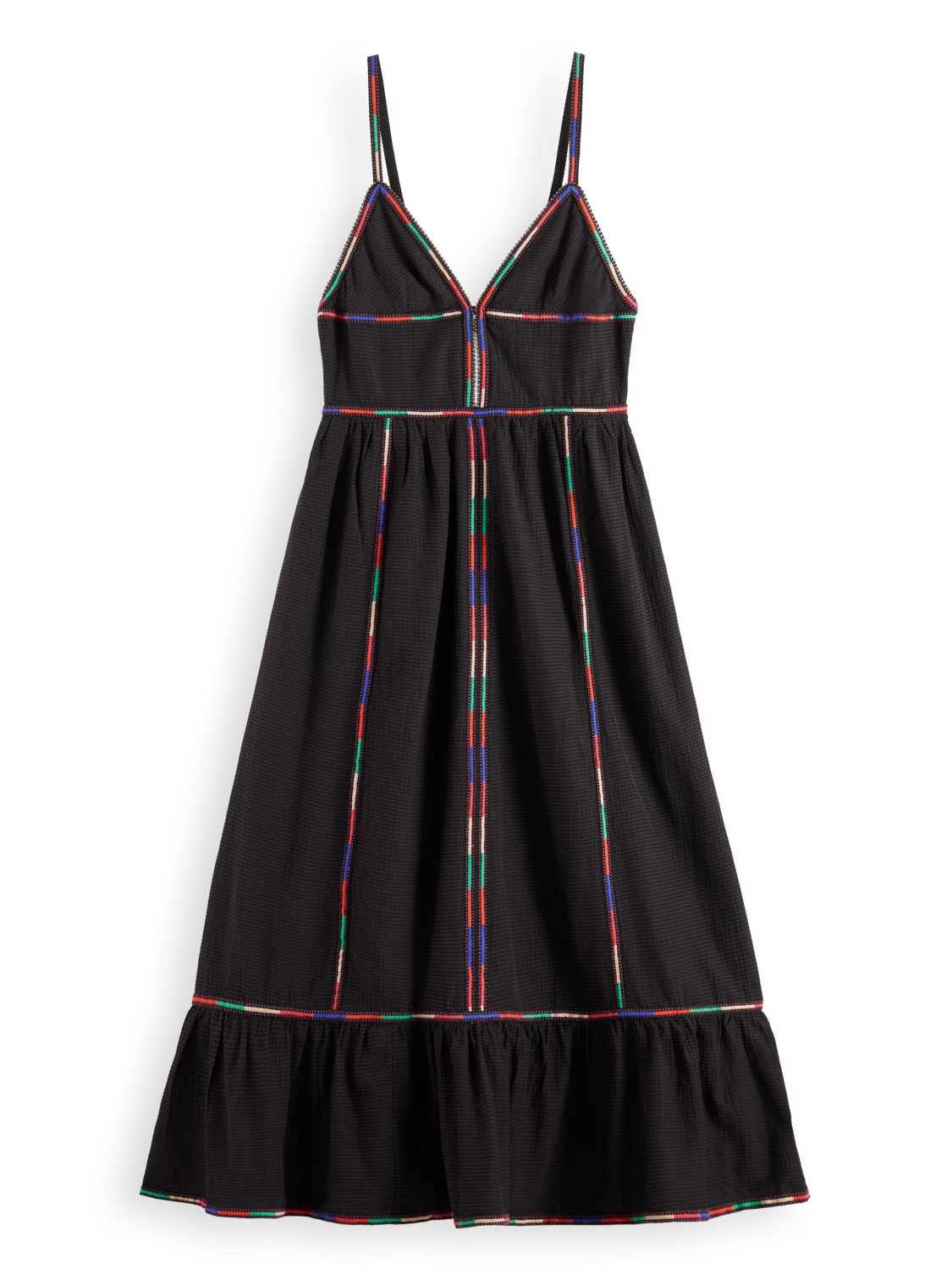 Channel the bohemian spirit with our multicolor embroidery maxi dress. This eclectic piece showcases the perfect fusion of classic and contemporary design. The intricate embroidery adds a touch of artistry, while the classic hue pairs well with your favorite accessories. With its flowing silhouette and maxi length, this dress is a celebration of freedom and self-expression. Stand out from the crowd and embrace your individuality in this stunning maxi dress.
