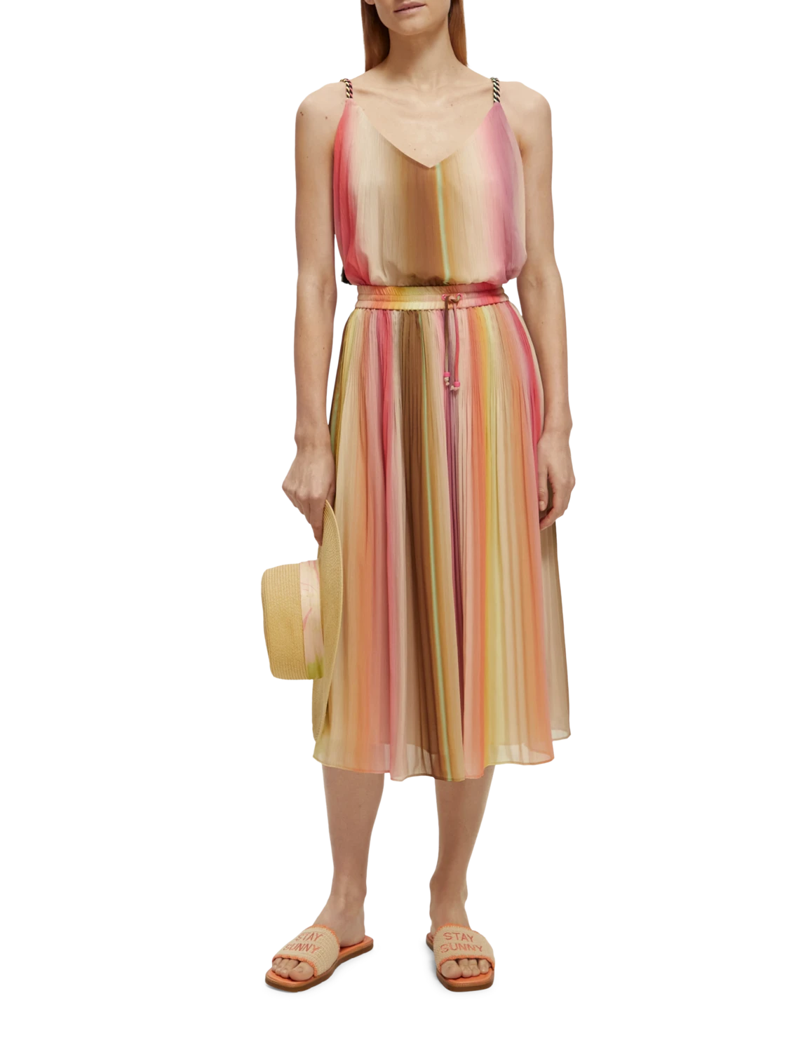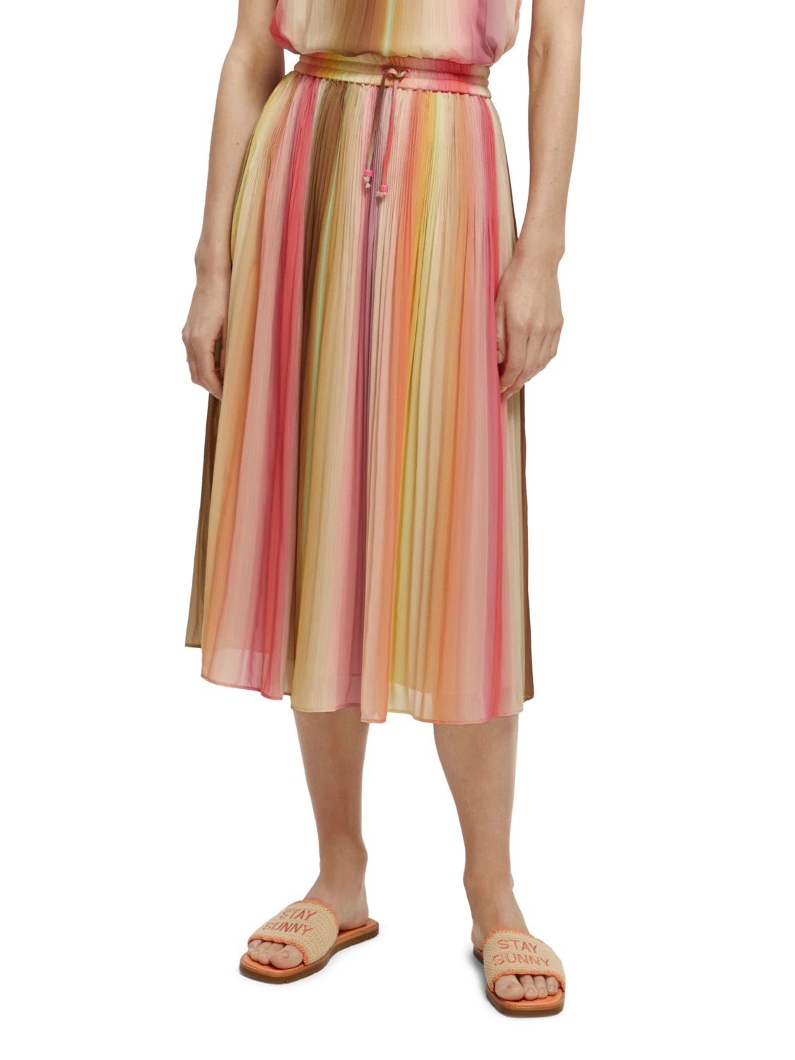 This midi skirt comes with a pleated design that gives a beautiful, dynamic flow whilst on-the-go. We’ve finished this style with an elasticated drawstring waist, for an all-day perfect, comfortable fit.