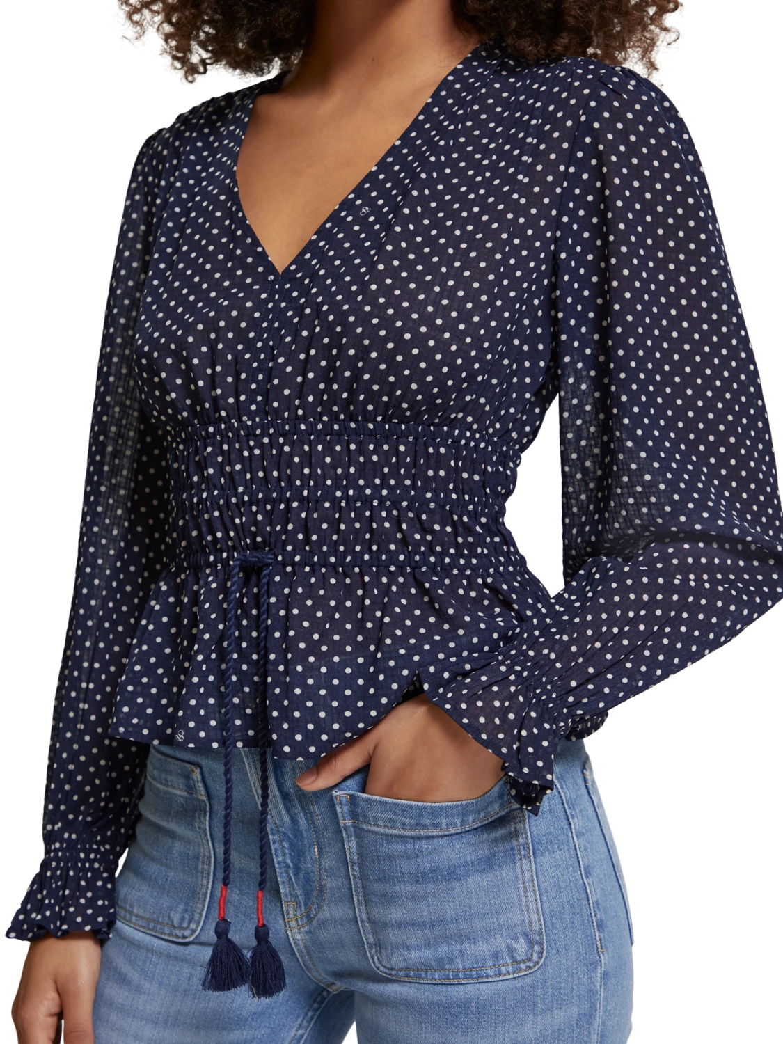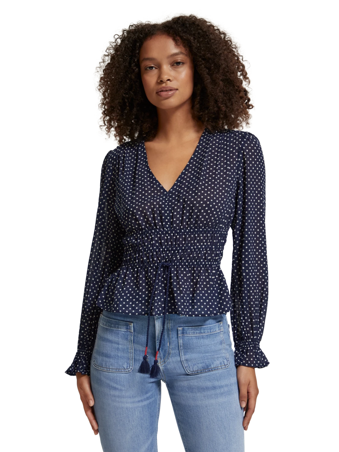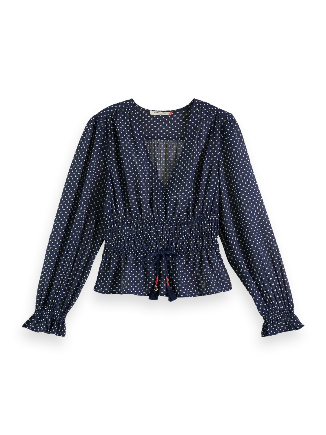 Effortlessly stylish and endlessly versatile, this V-neck top with an elastic waist is a must-have addition to your wardrobe. The V-neckline adds a hint of allure, while the elastic waist creates a flattering silhouette. Pair it with tailored trousers and heels for a polished office look or dress it down with denim shorts and sandals for a laid-back weekend vibe.