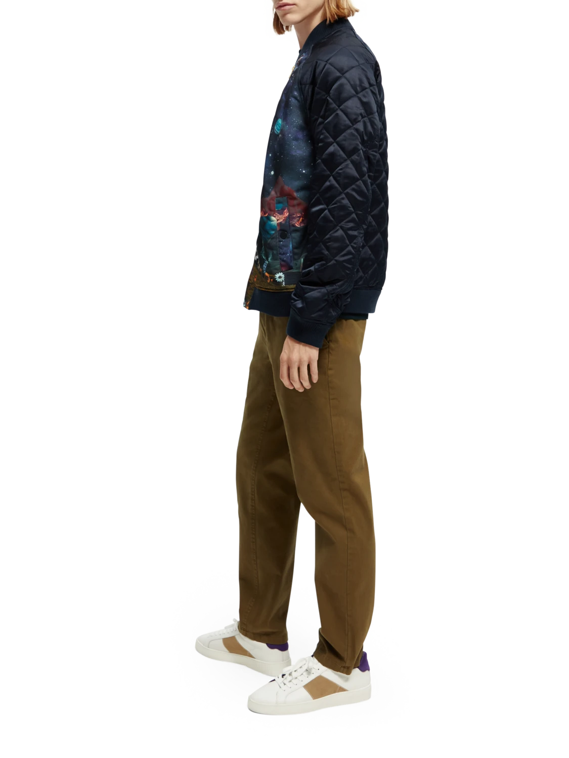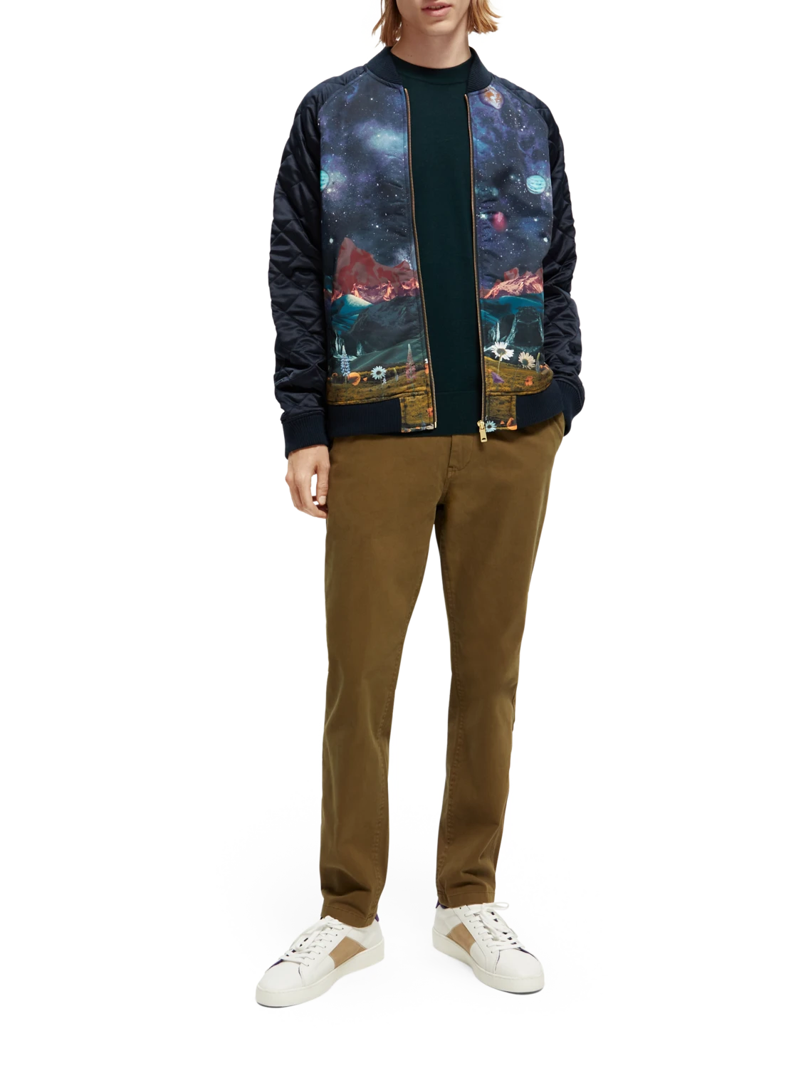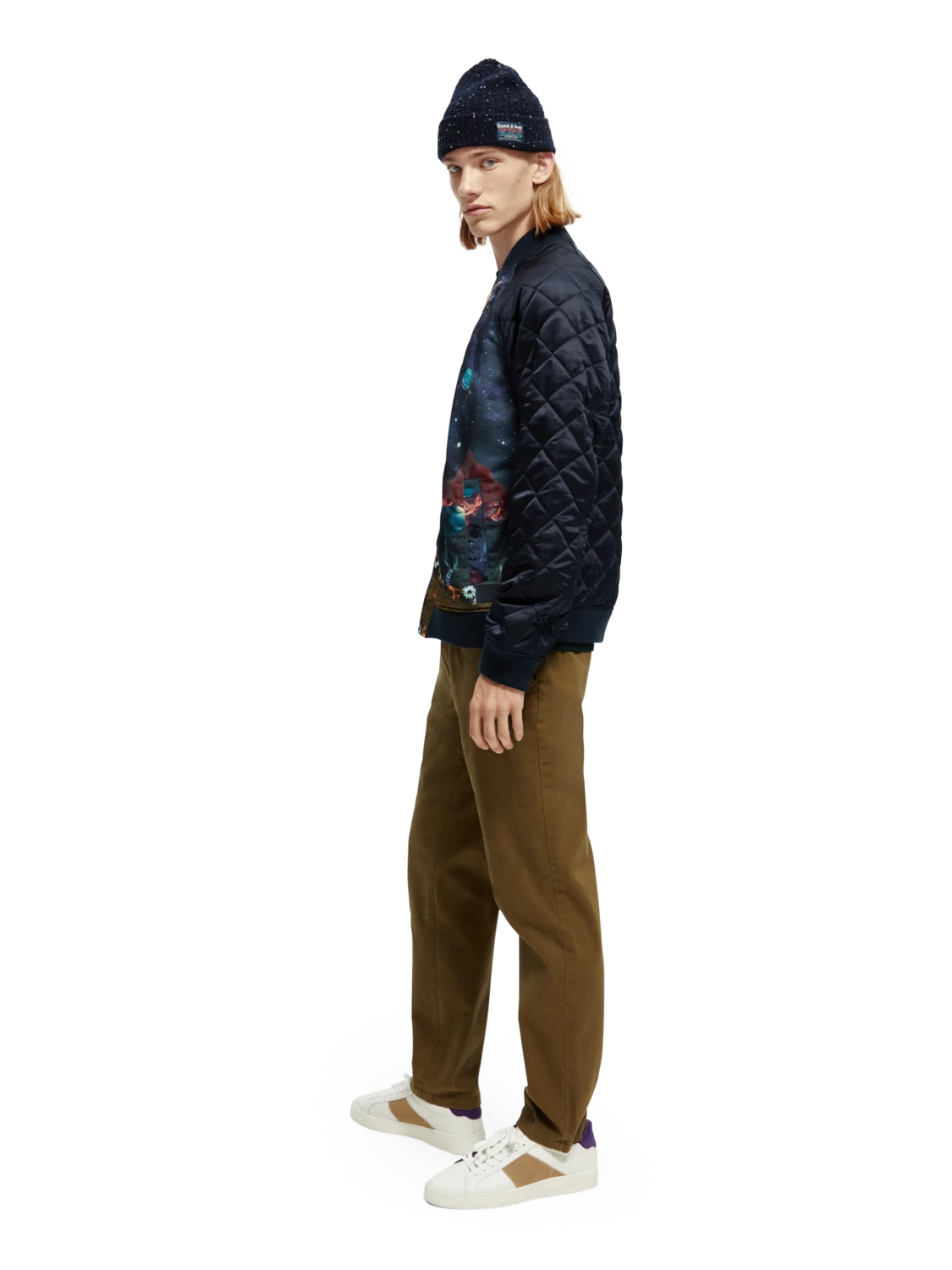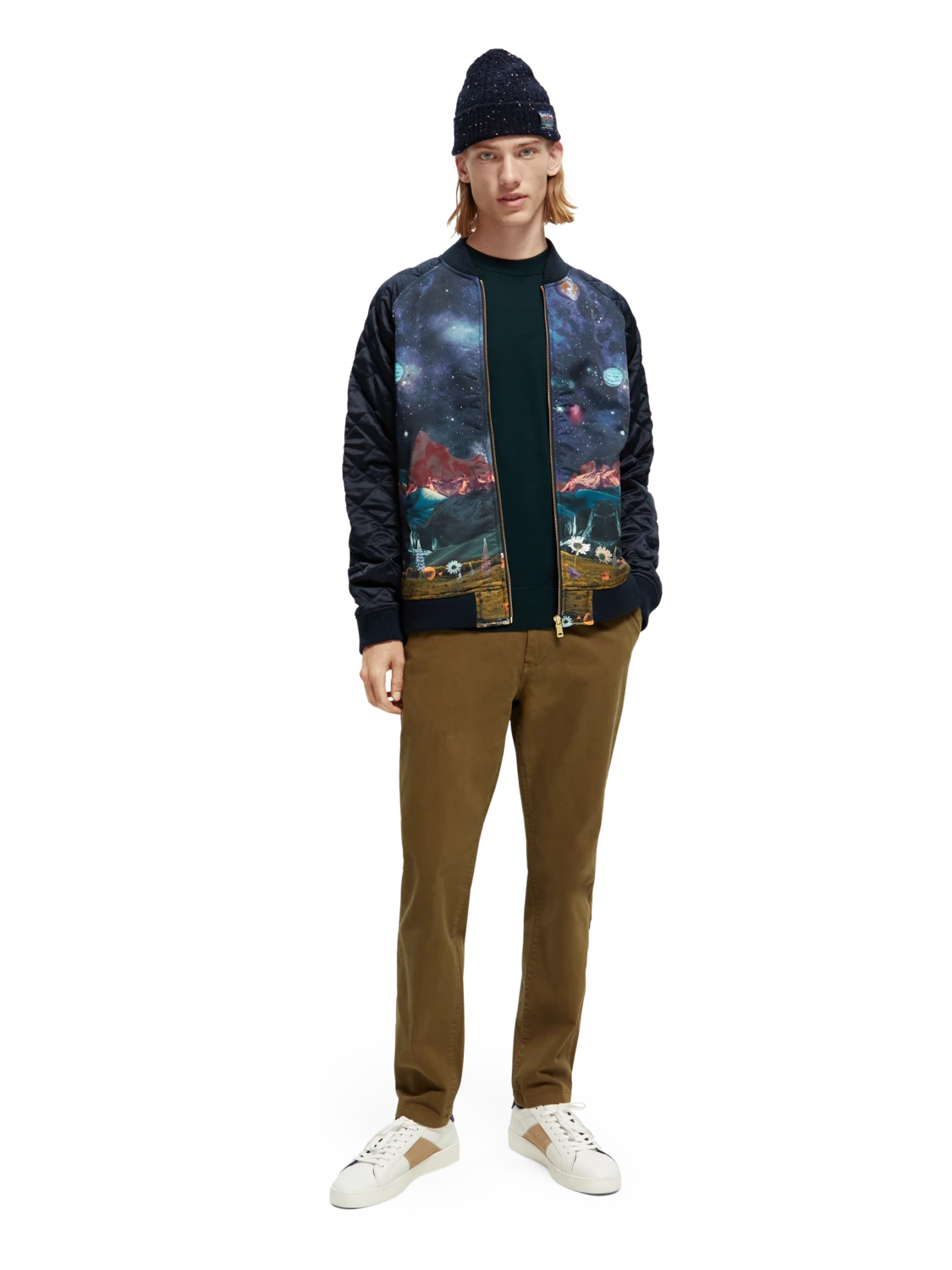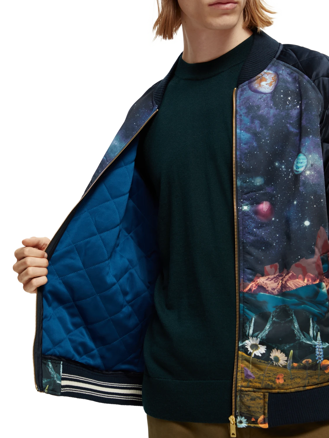 The bomber jacket is a proven style, popular across generations. This printed bomber jacket has a zip closure, finished with a ribbed hem and cuff .