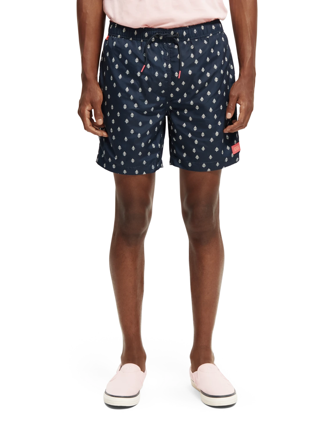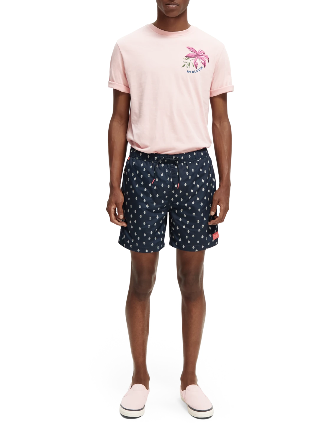 Perfect for days at the beach or lounging by the pool – these swim shorts are adorned with an eye-catching all over print. Made with recycled polyester, we’ve finished these shorts with an elasticated drawstring waist, making adjustments for a perfect fit a breeze.