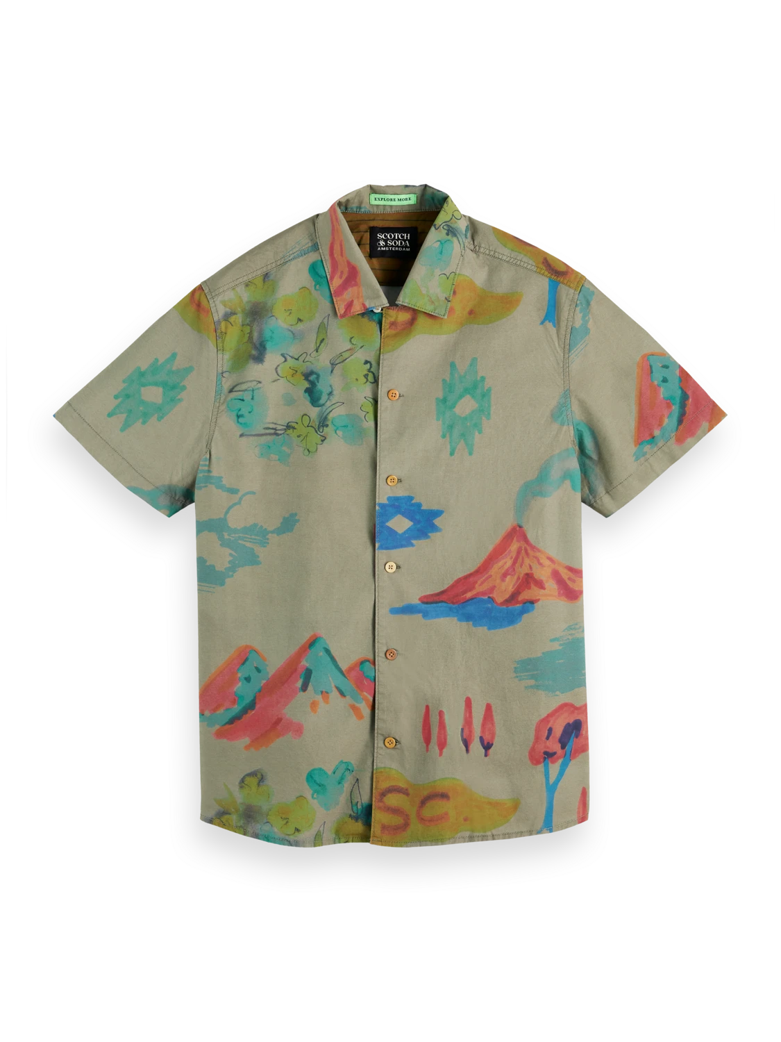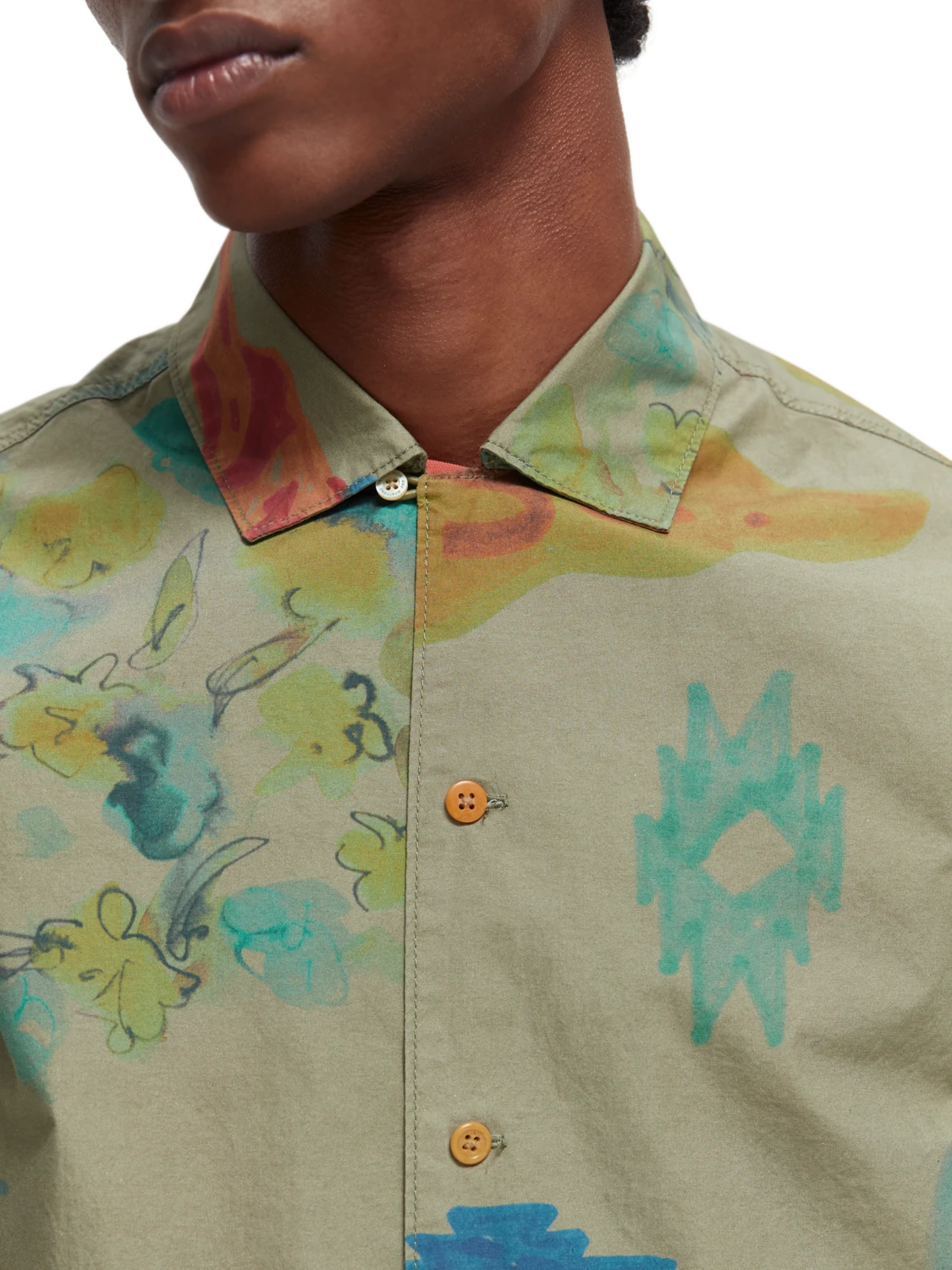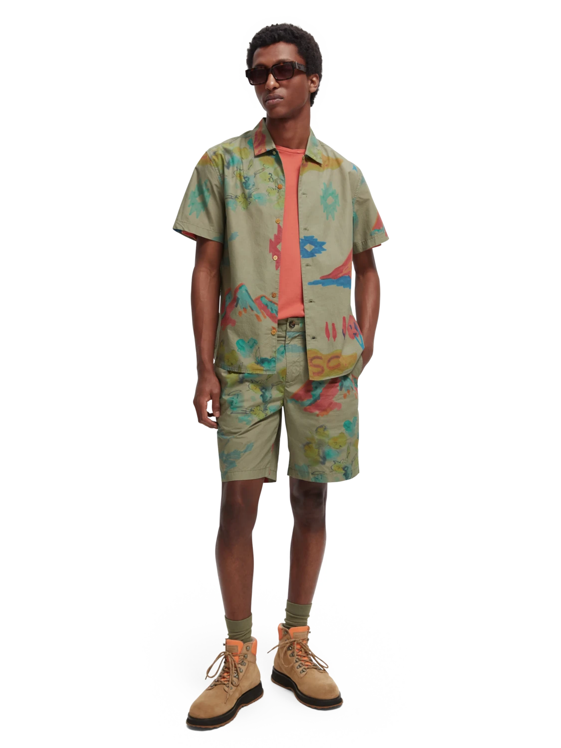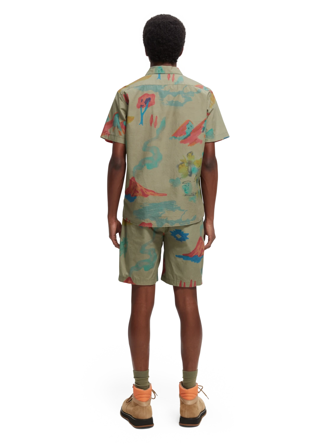 Cut with a regular-fit, this short-sleeve poplin shirt features an eye-catching print.