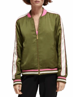 This reversible bomber jacket is two looks in one, letting you switch things up to match your style. Featuring an all-over print and complementary detailed ribbed hem, cuff, and collar. Filled with 100% recycled polyester filling from REPREVE®.