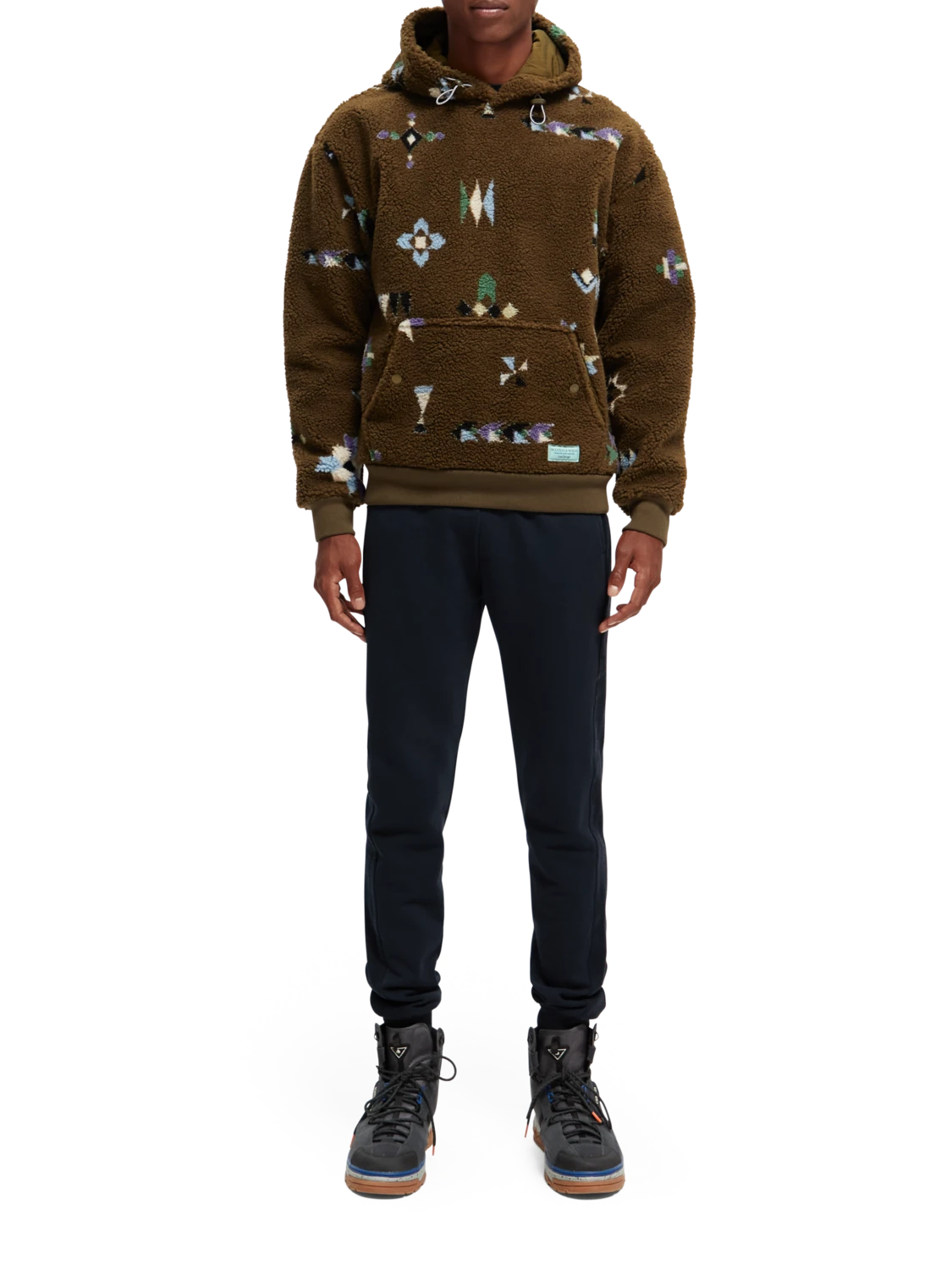 Effortlessly comfortable, a favourite hoodie always feels good to wear. Featuring an all-over traditional print motif and finished with a large pouch pocket and ribbed hem and cuff – this teddy hoodie is ready for anytime wear.