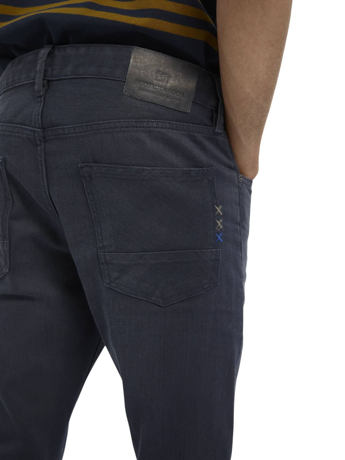 The Ralston is our regular slim fit denims. These jeans are crafted with stone bleached effects and damaged details.