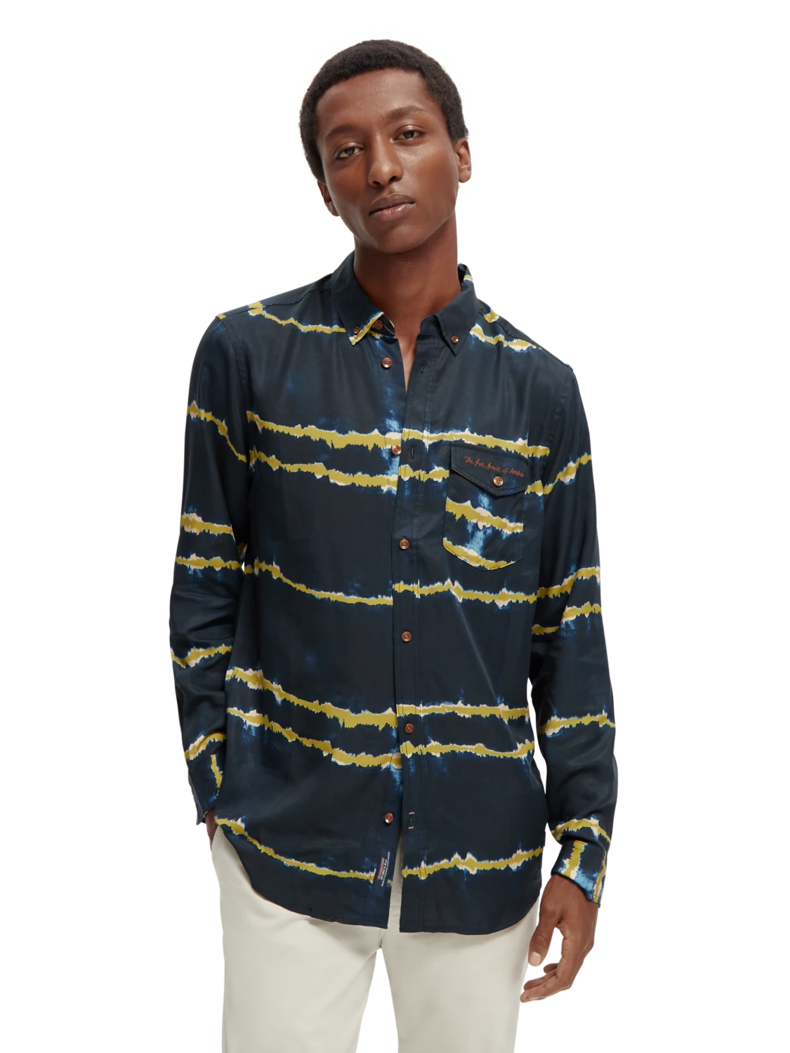 Striking a balance between utility and style, this shirt comes in a striking tie-dye colouration with a button-secured chest pocket. Finished with a full-length button closure, this shirt is perfect for layering or wear on its own.