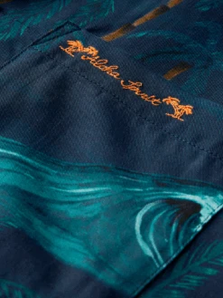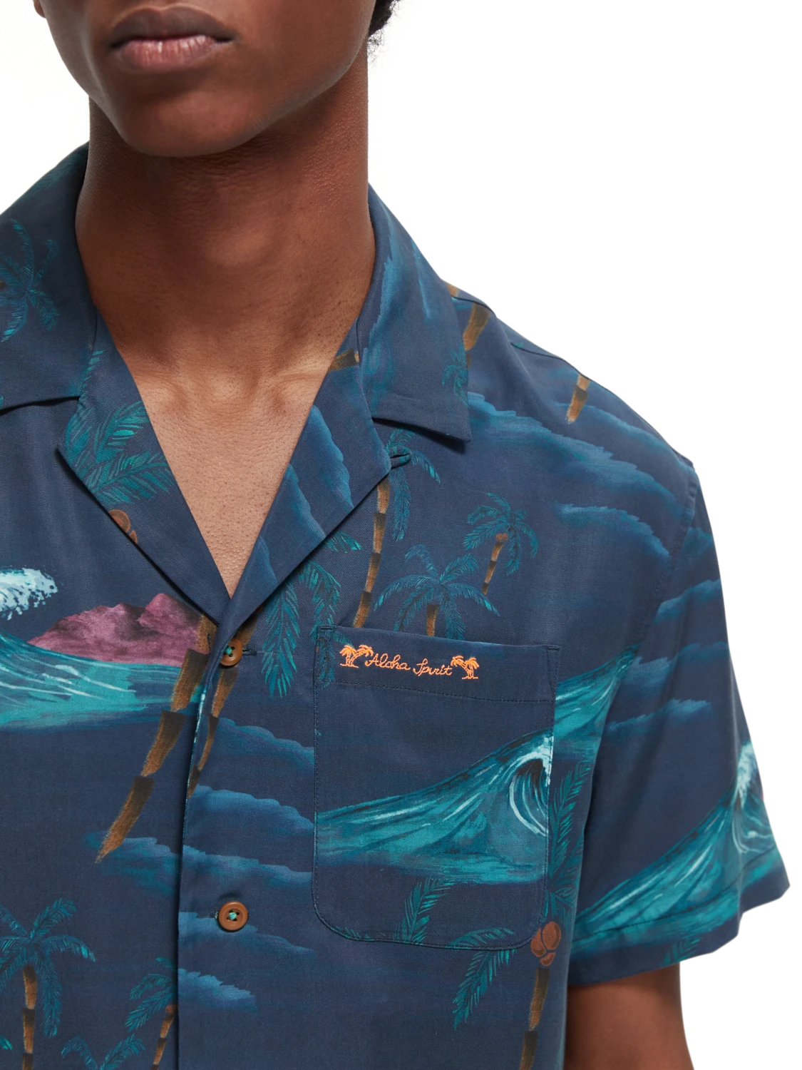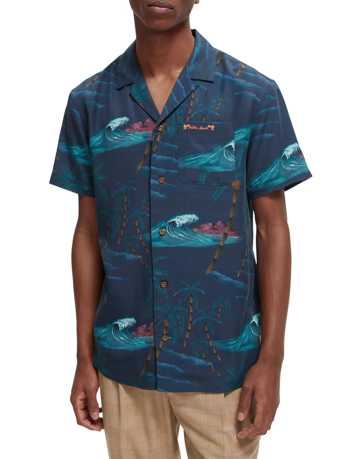 With a cool tropical print and theme, this short-sleeved camp shirt is summer-ready. Simply button up and go.