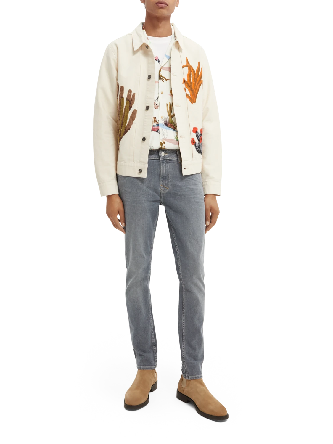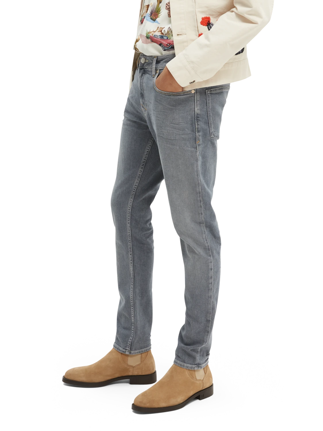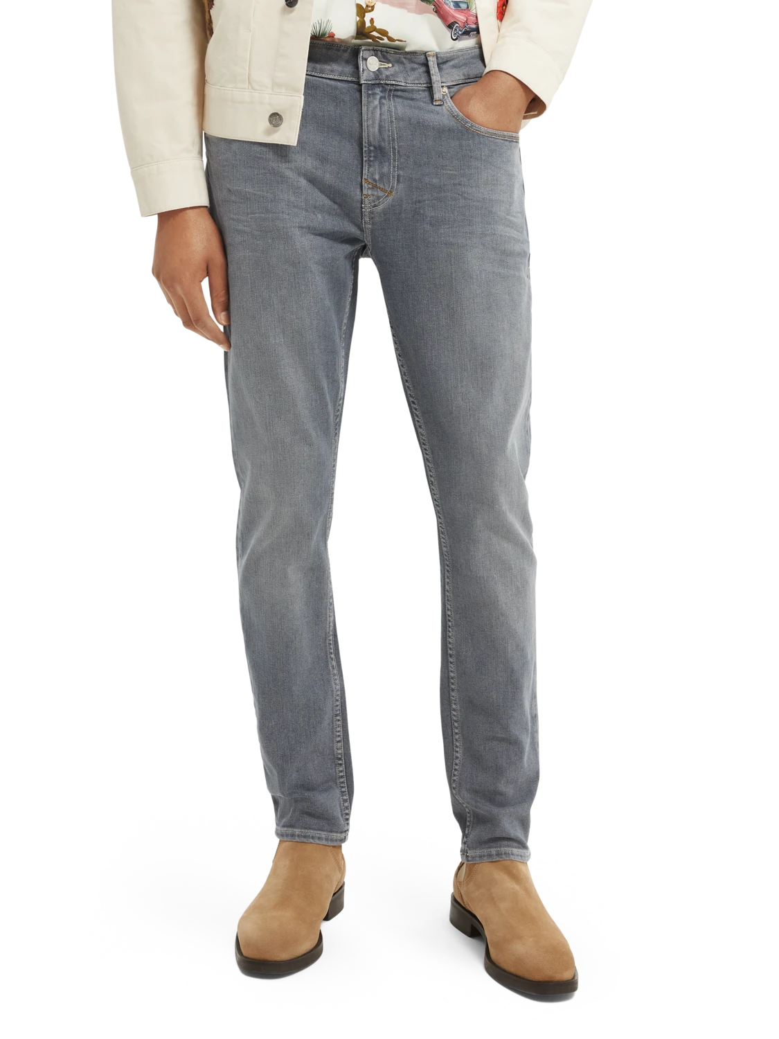 The Skim is our skinniest fit. Snug from hip to foot, this model features a bit of stretch for that all-day comfort. Stonewashed and finished with classic trims and stitching details, this denim comes in an uncommon grey indigo shade.