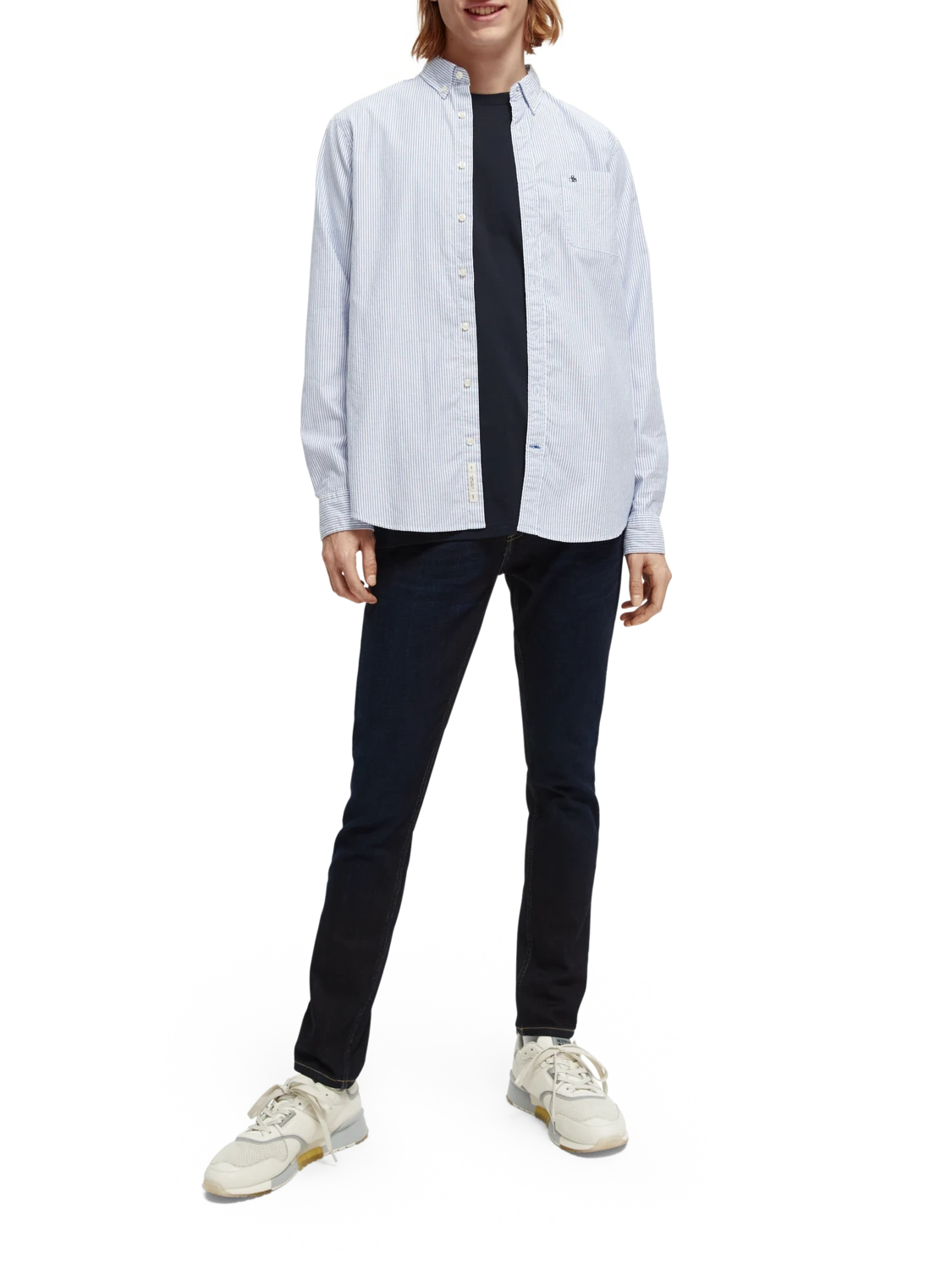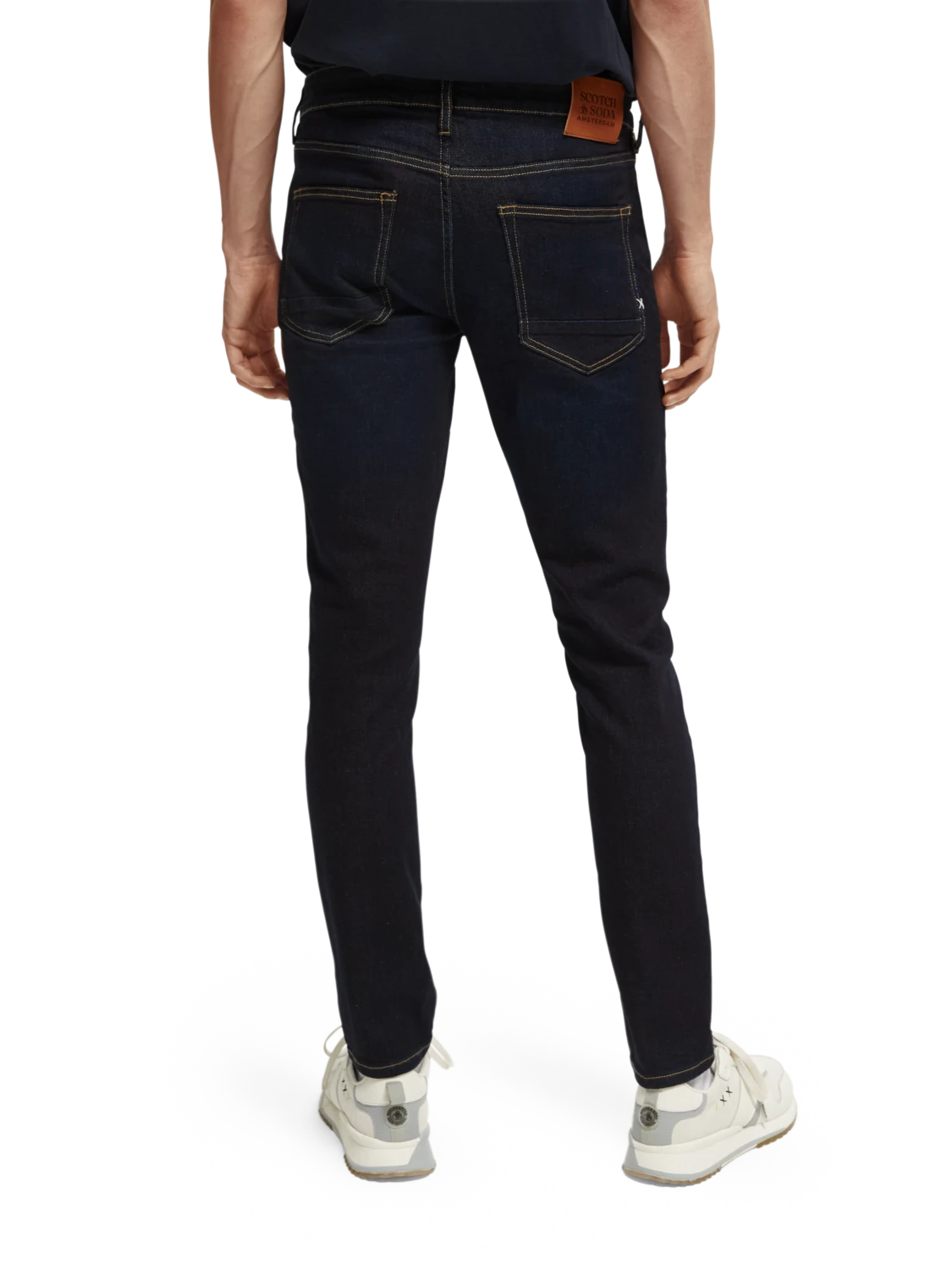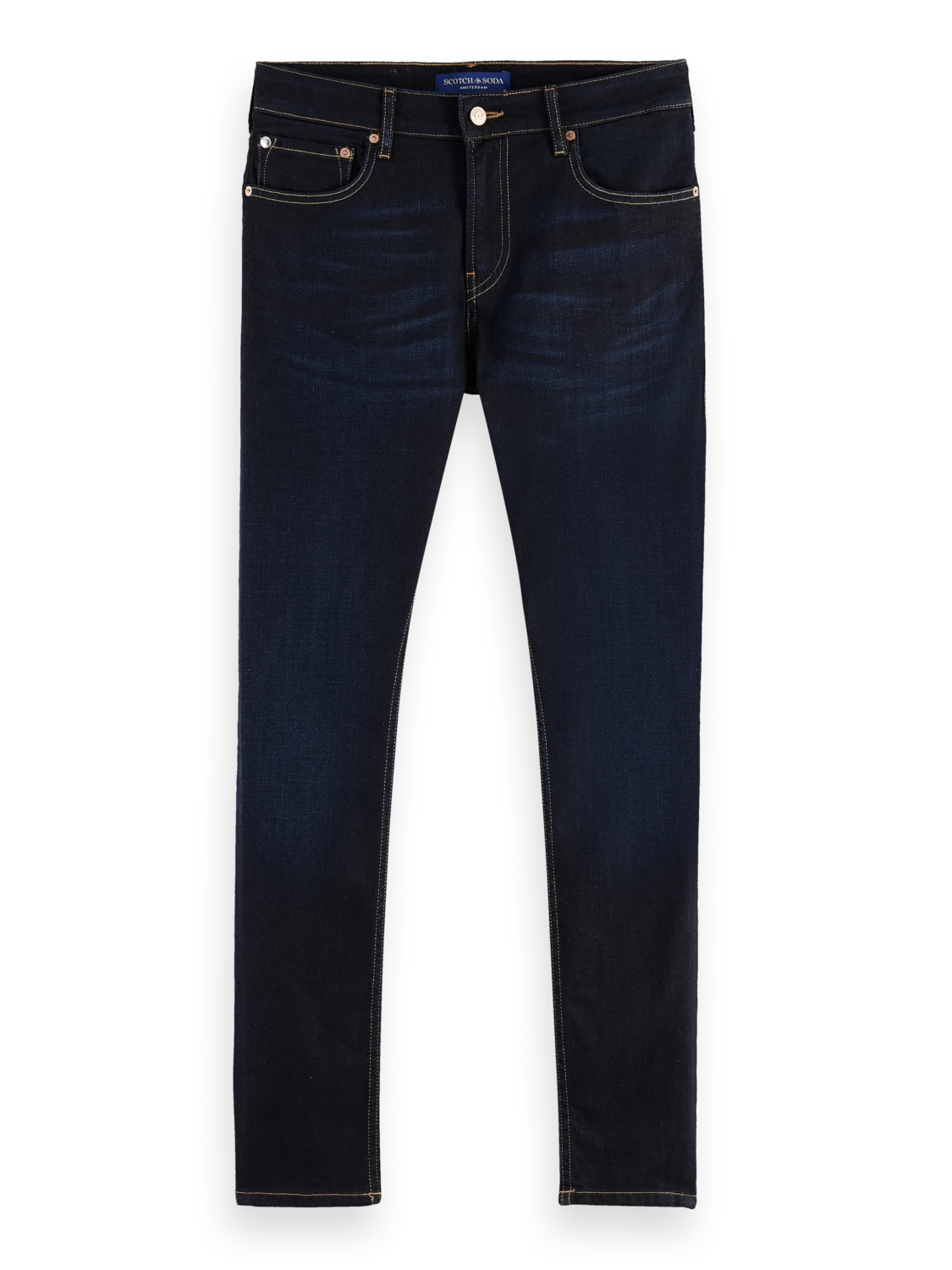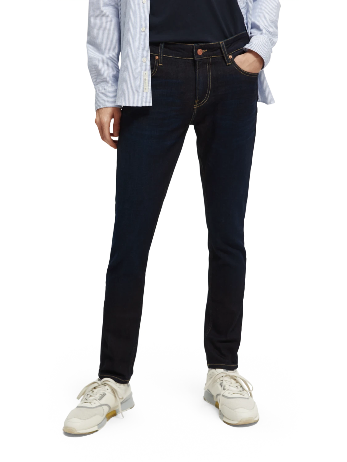 Cut super-slim, the Skim is form-fitting from waist to ankle. An infusion of elastane makes this skinny style comfortable throughout the day. Washed in a deep indigo tone, finished with special coin rivet detailing and a zip fly.