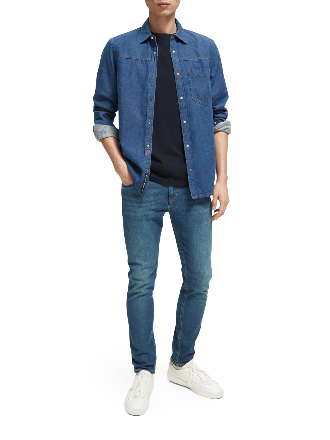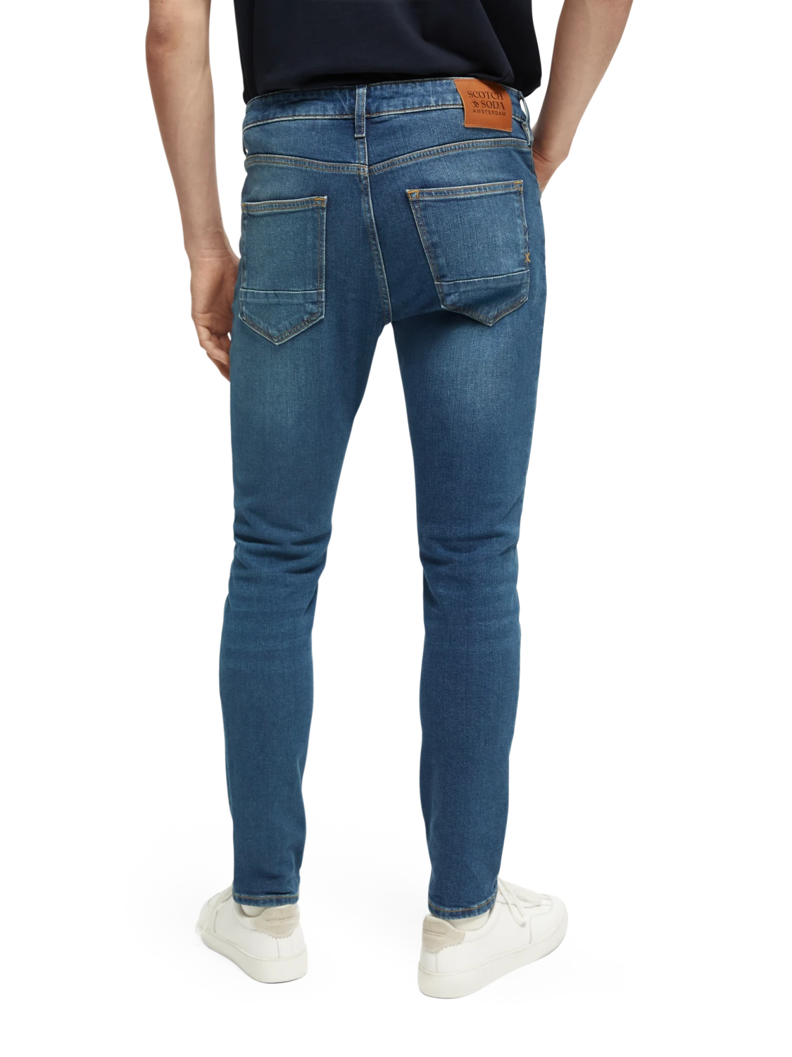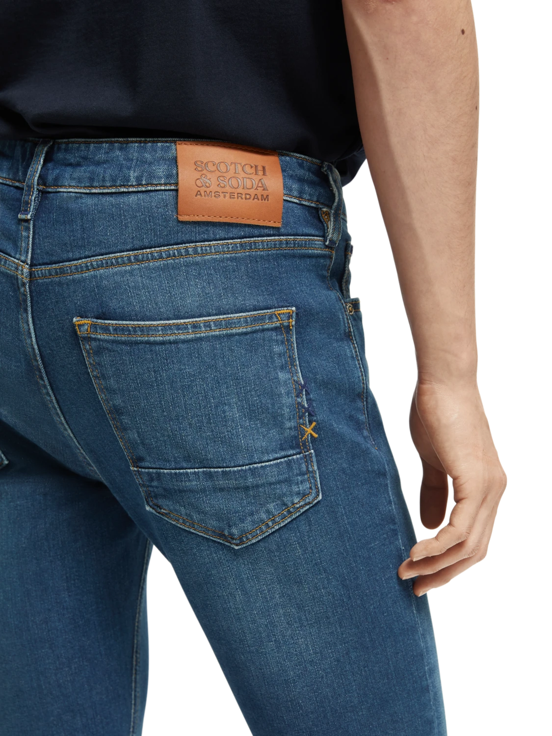 Cut super-slim, the Skim is form-fitting from waist to ankle. An infusion of elastane makes this skinny style comfortable throughout the day. Washed in a classic blue tone, finished with special coin rivet detailing and a zip fly.