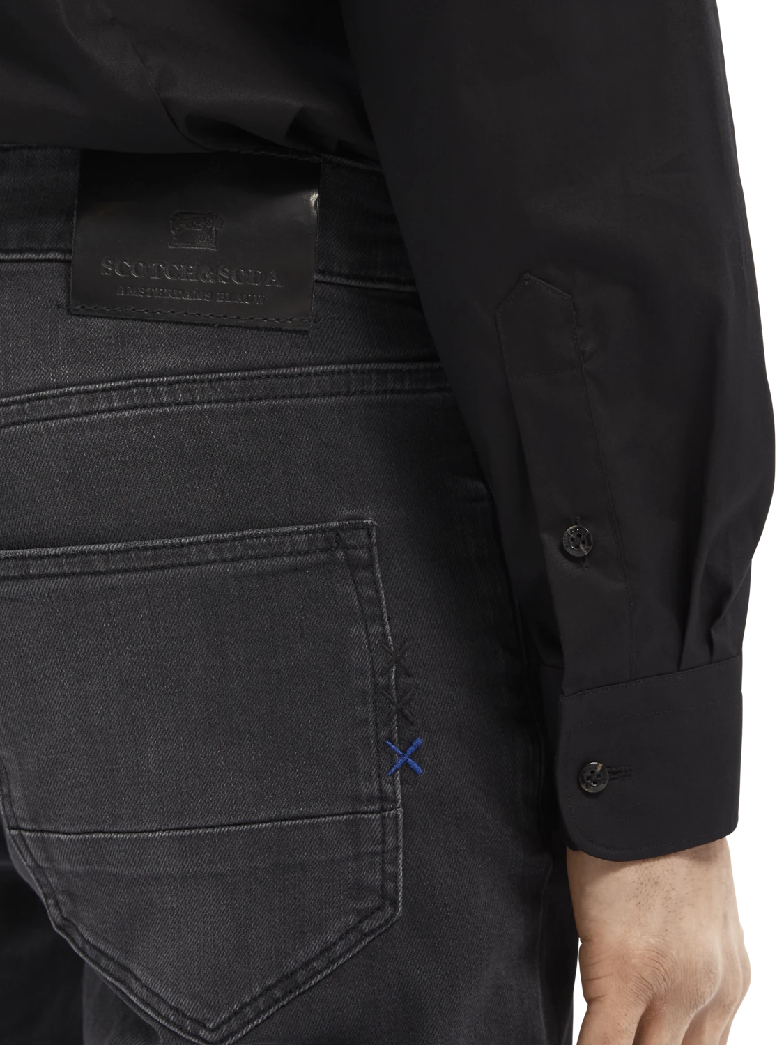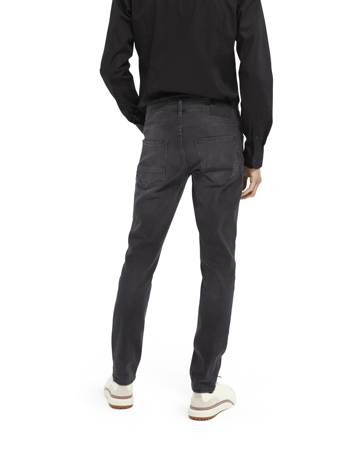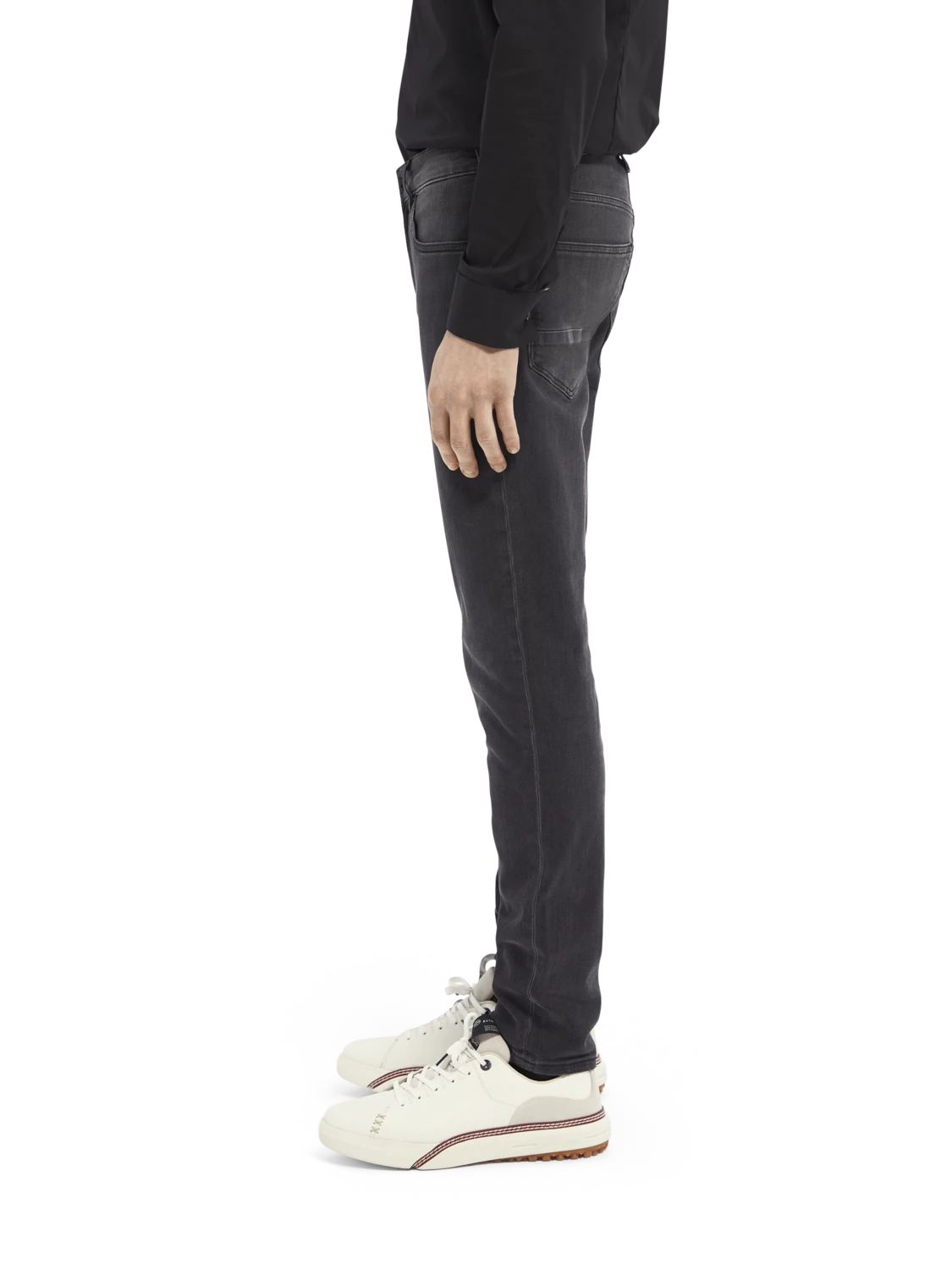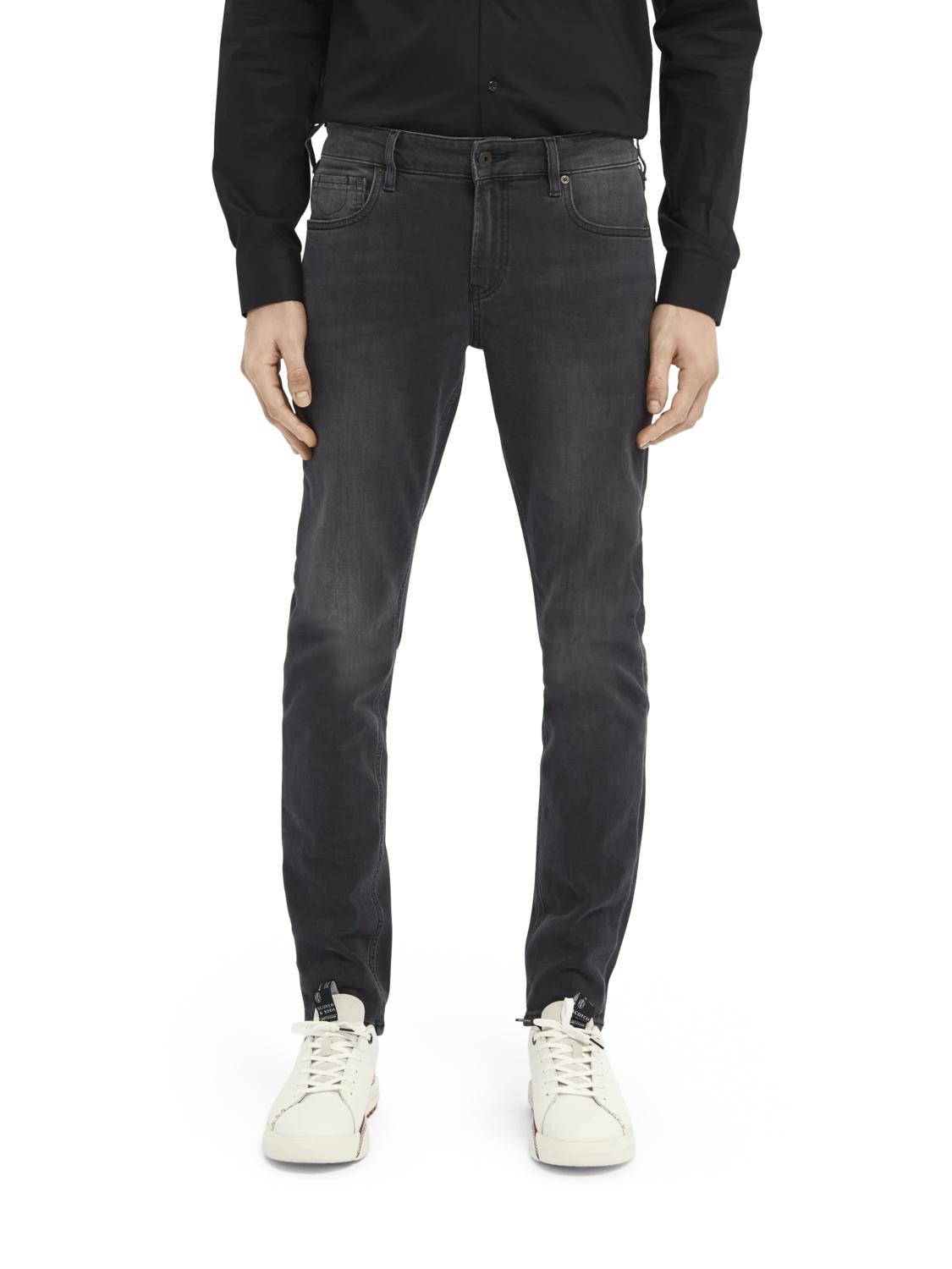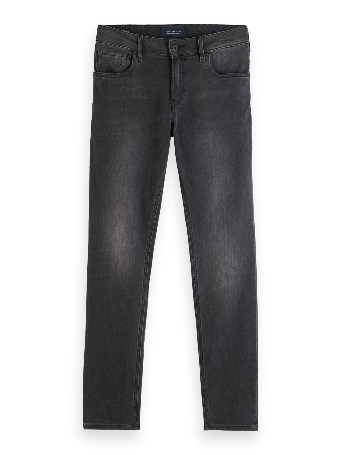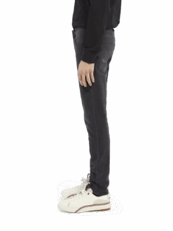 Cut super-slim, the Skim is form-fitting from waist to ankle. An infusion of elastane makes this skinny style comfortable throughout the day. Washed in a deep grey tone, finished with special coin rivet detailing and a zip fly.