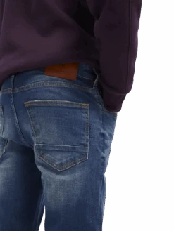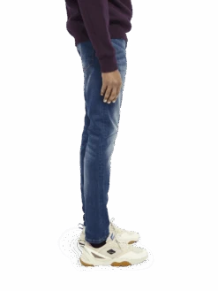 Cut super-slim, the Skim is form-fitting from waist to ankle. An infusion of elastane makes this skinny style comfortable throughout the day. Washed in a mid-blue tone, finished with special coin rivet detailing and a zip fly.