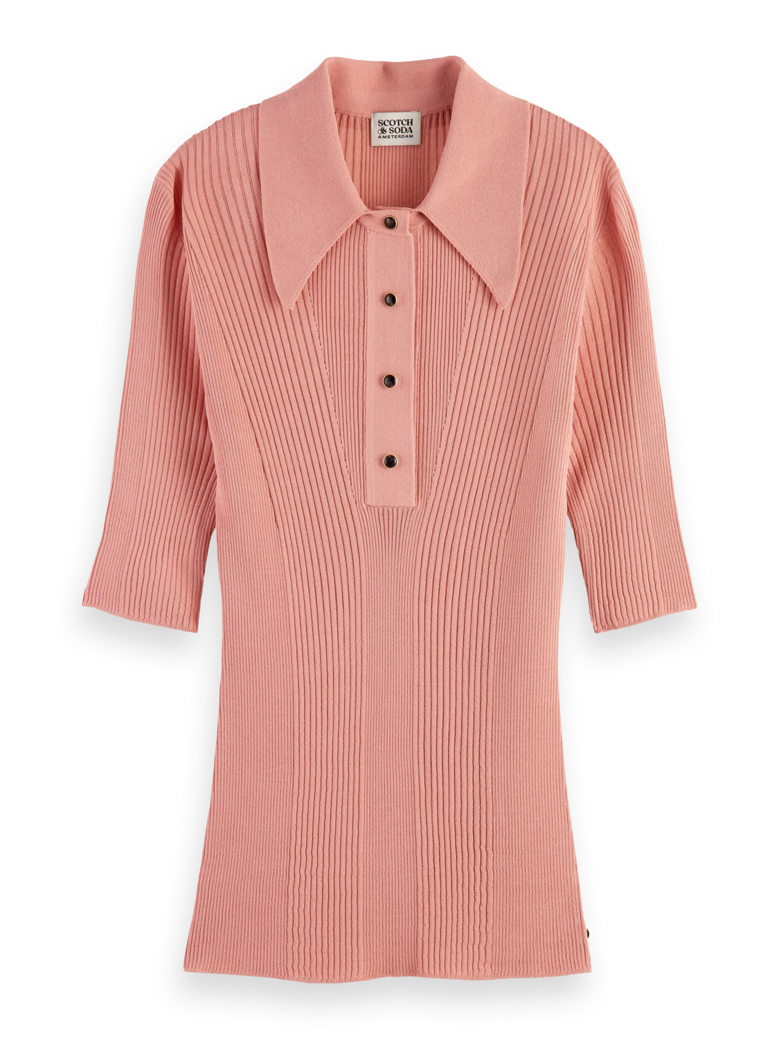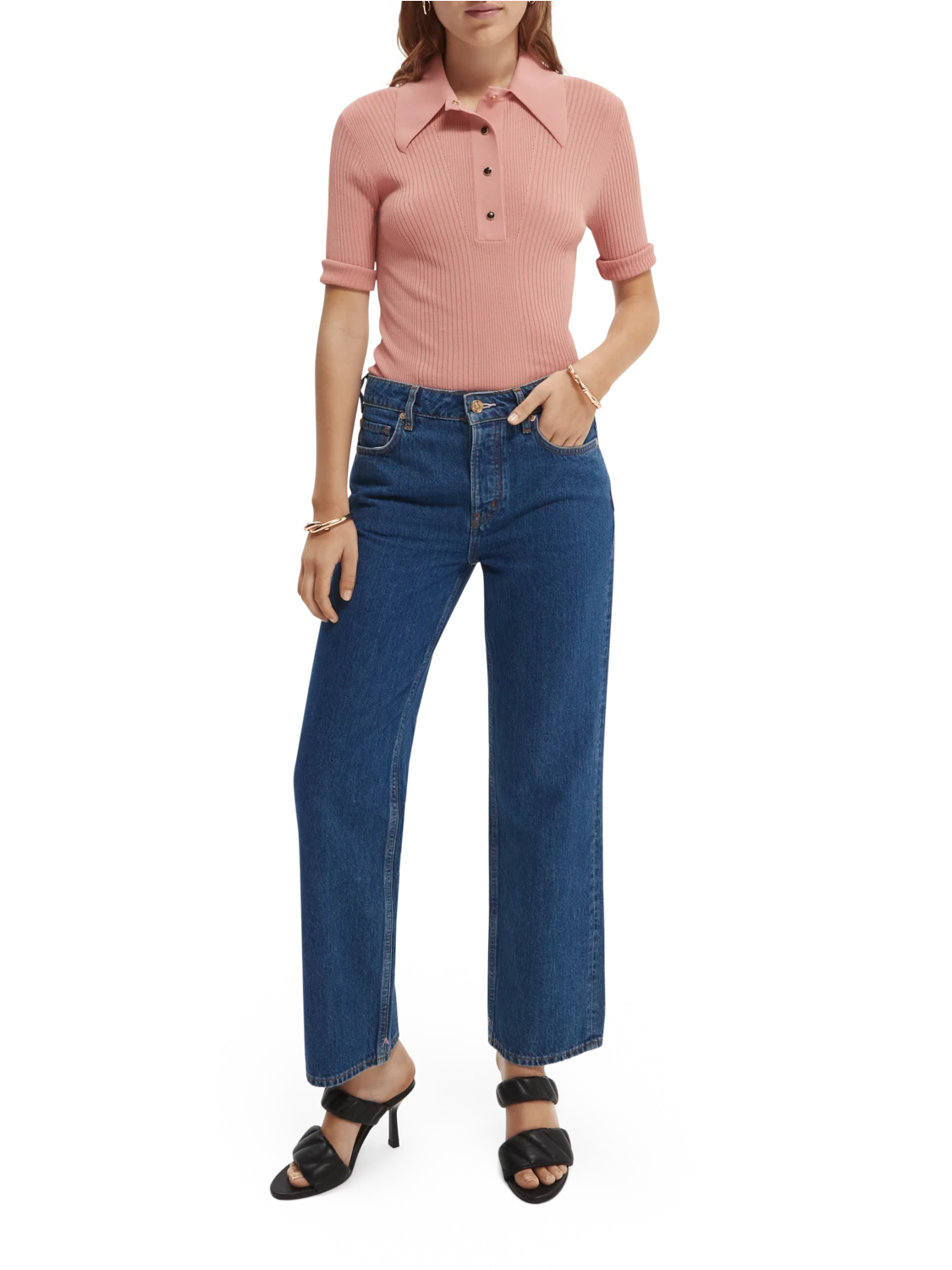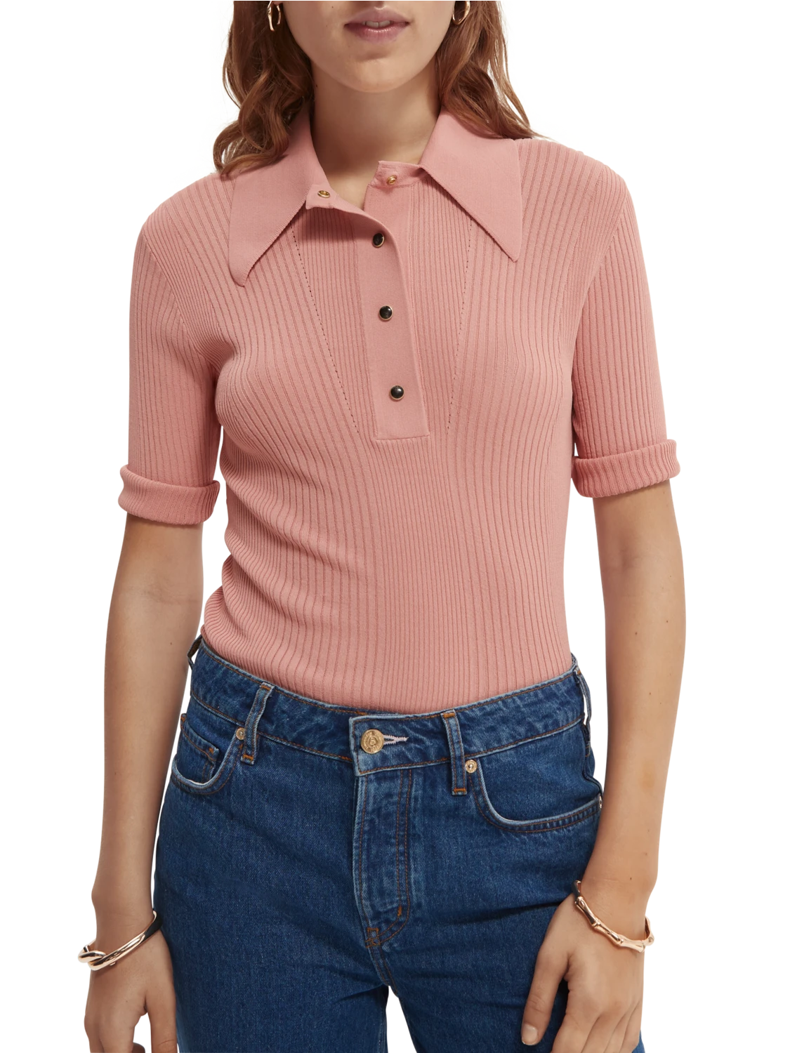 A warm take on the classic polo design: this piece has a slim-fit, a ribbed structure and short sleeves. The deep colour is superb for styling your autumnal outfit.