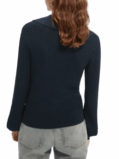 Inspired by the polo – this slim-fit sweater features a zip-up polo neck with an extra-large collar. This, combined with its balloon sleeves, makes for a fun sweater.