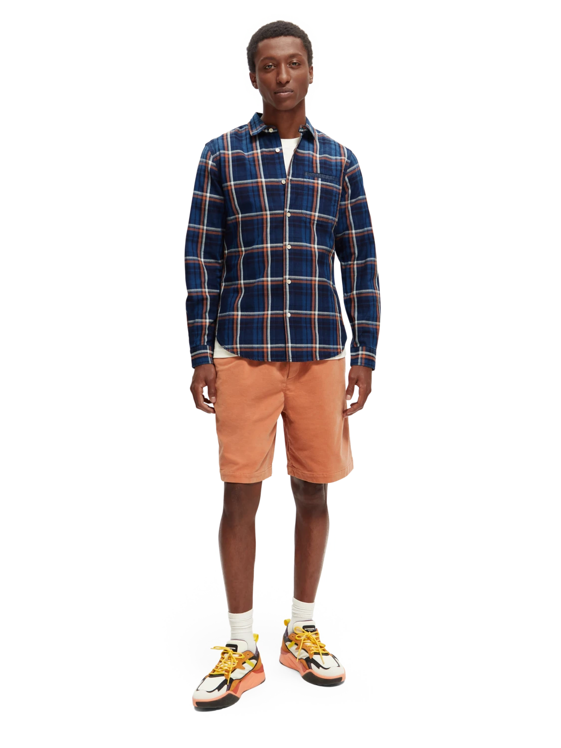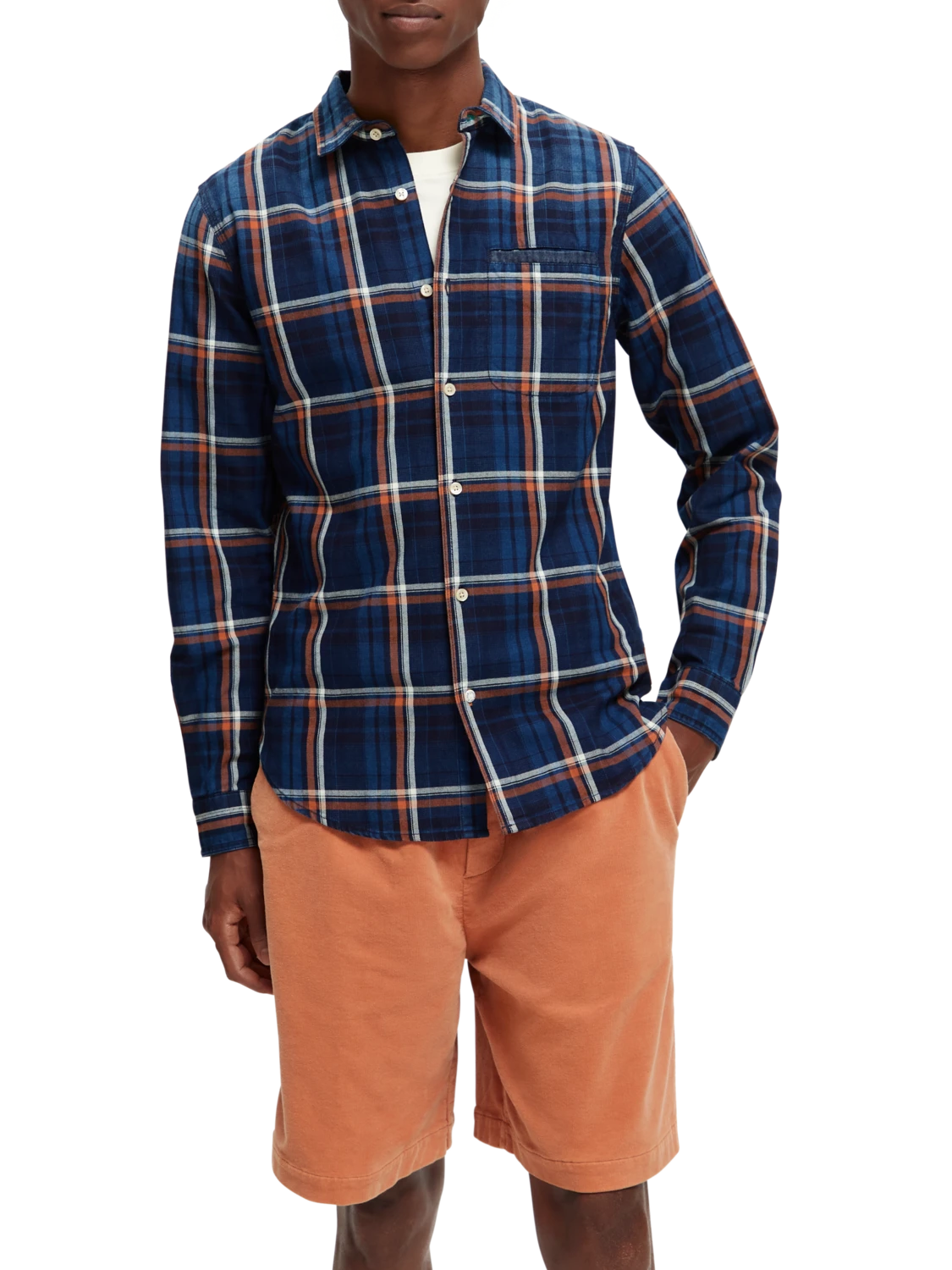 This shirt is yarn-dyed, highlighting a vivid blue colour pallet. Cut from a soft cotton, this slim-fit style is great for layering or wear on its’ own. Available in different colourways to suit your every look.