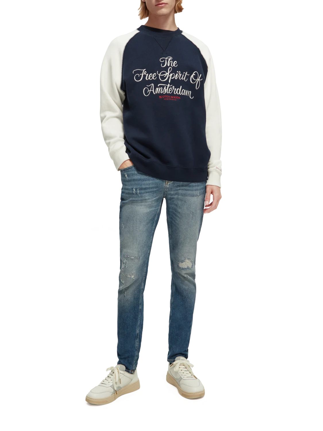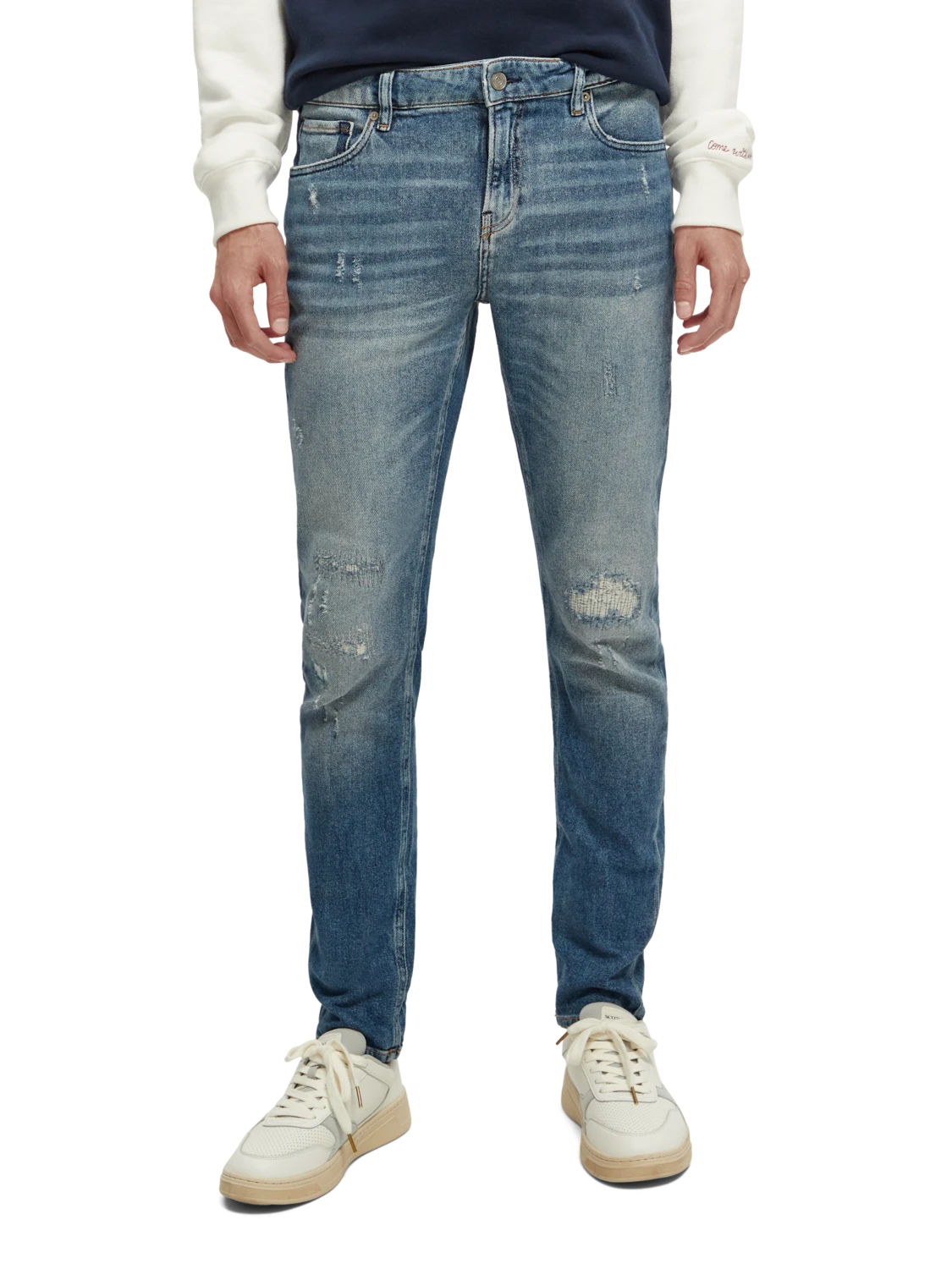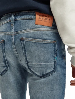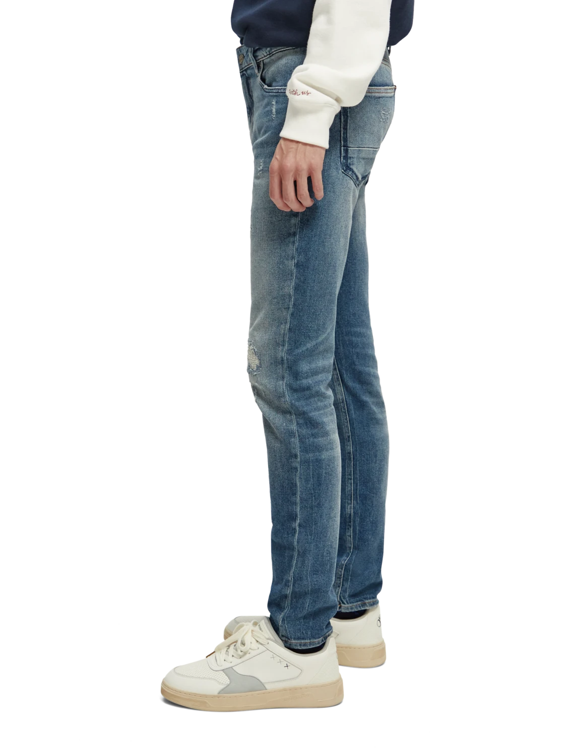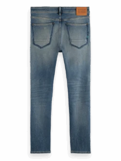 Cut super-slim, the Skim is form-fitting from waist to ankle. An infusion of elastane makes this skinny style comfortable throughout the day. Washed in our light Broke Blauw tone with distressed accents and finished with special coin rivet detailing and a zip fly.