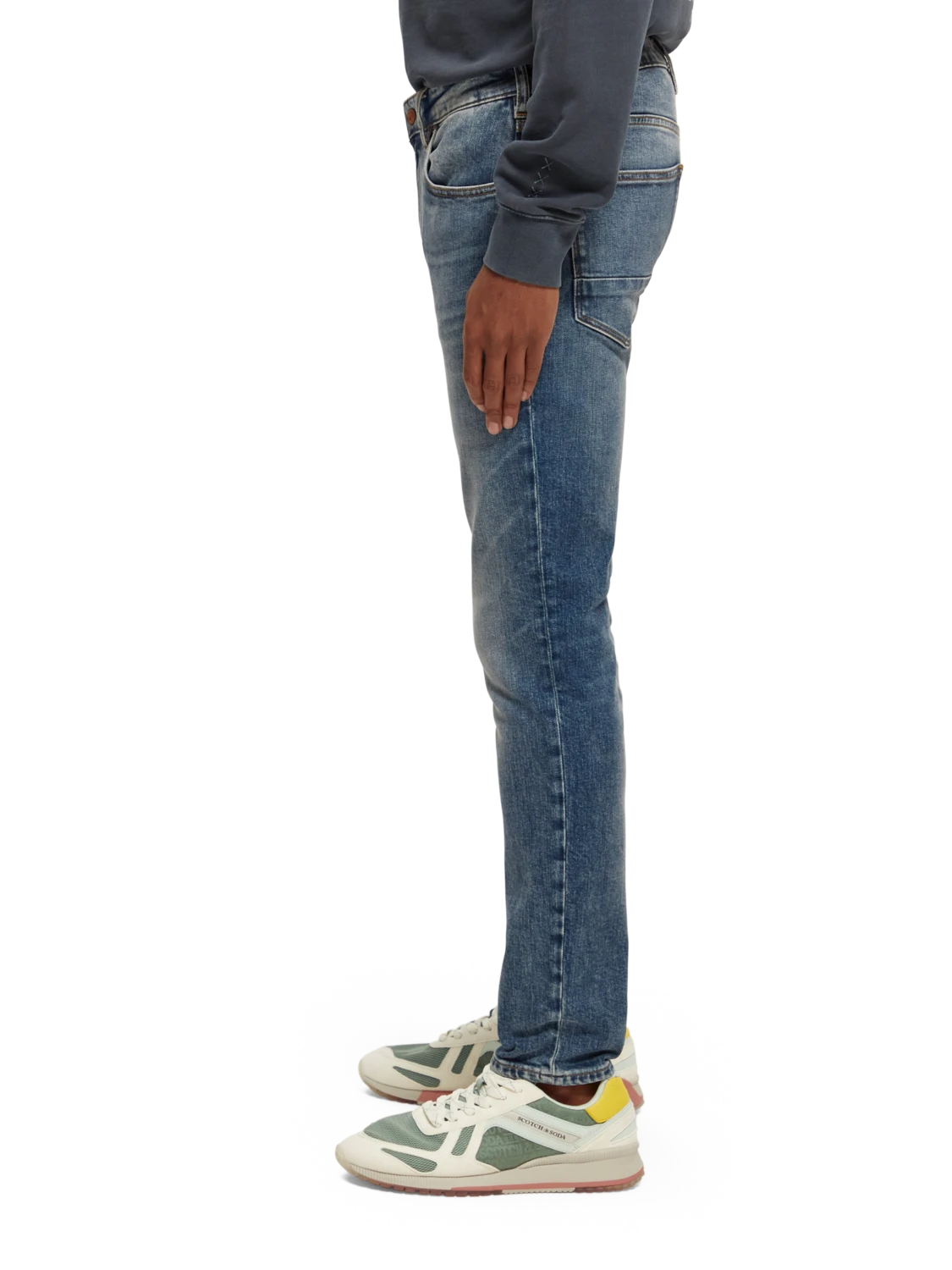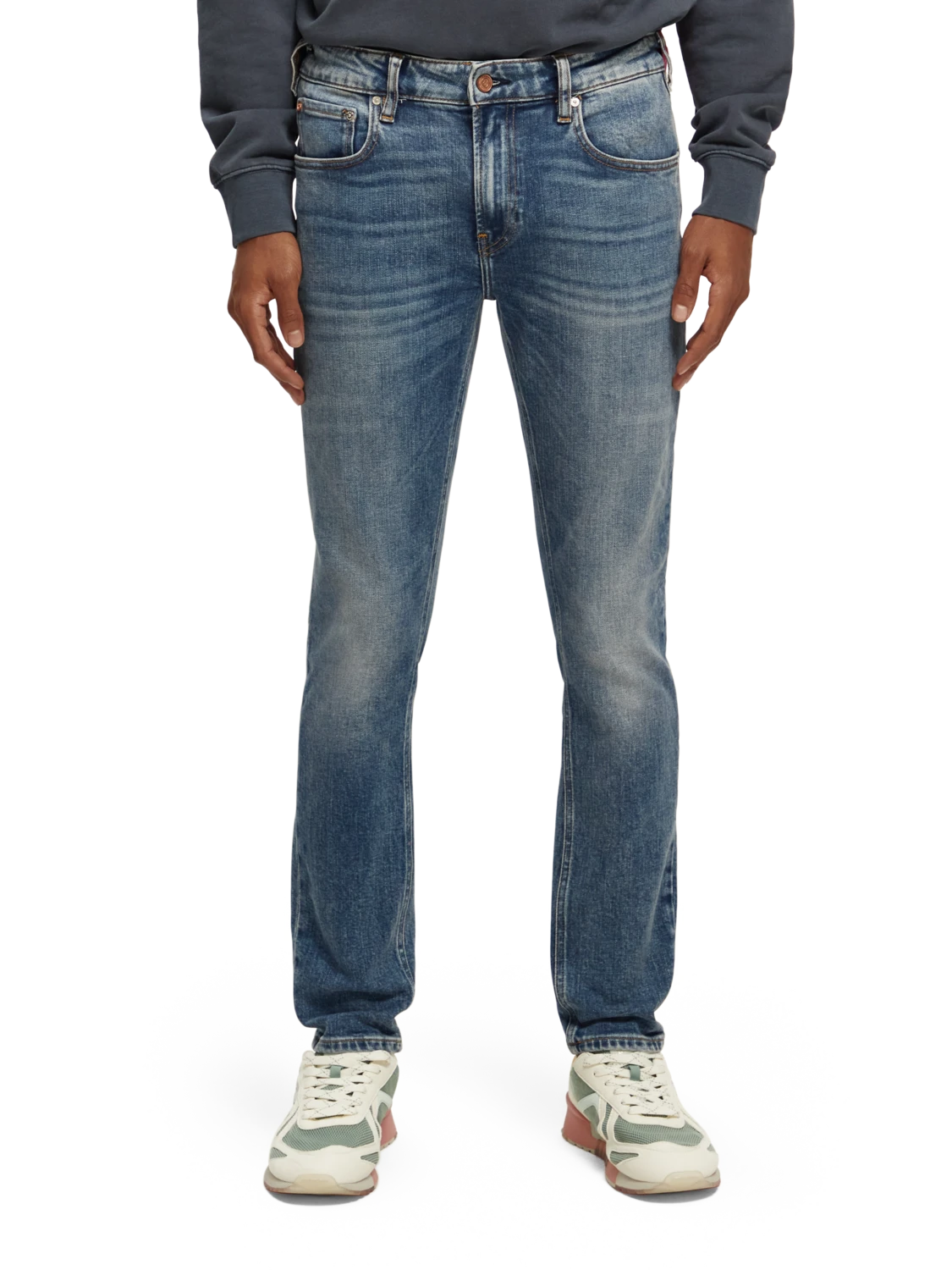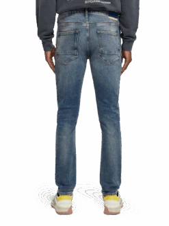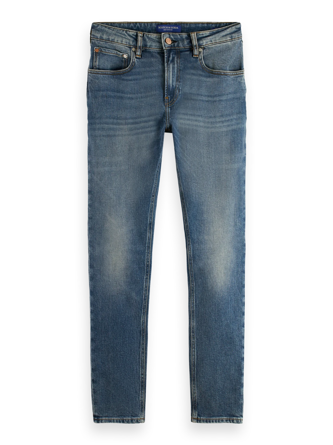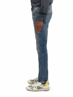Cut super-slim, the Skim is form-fitting from waist to ankle. An infusion of elastane makes this skinny style comfortable throughout the day. We’ve washed these jeans in a mid-blue tone with whiskering accents, finished with special coin rivet detailing and a zip fly.