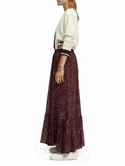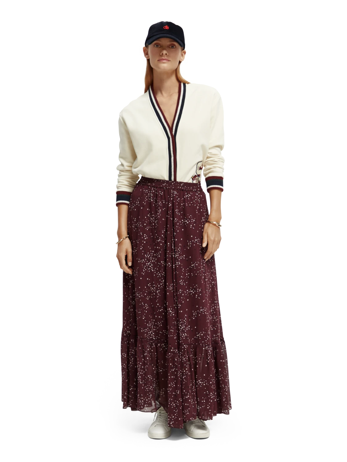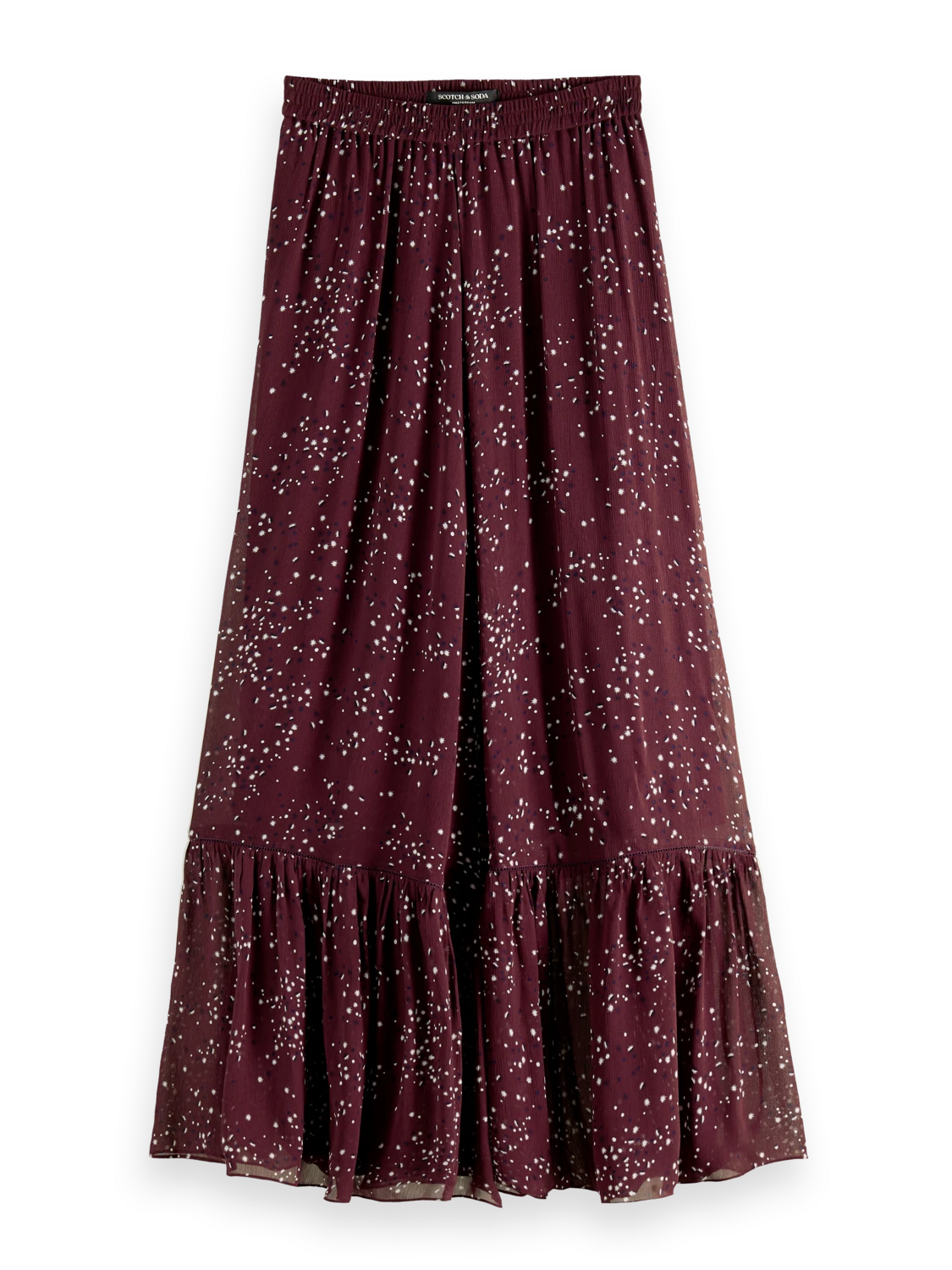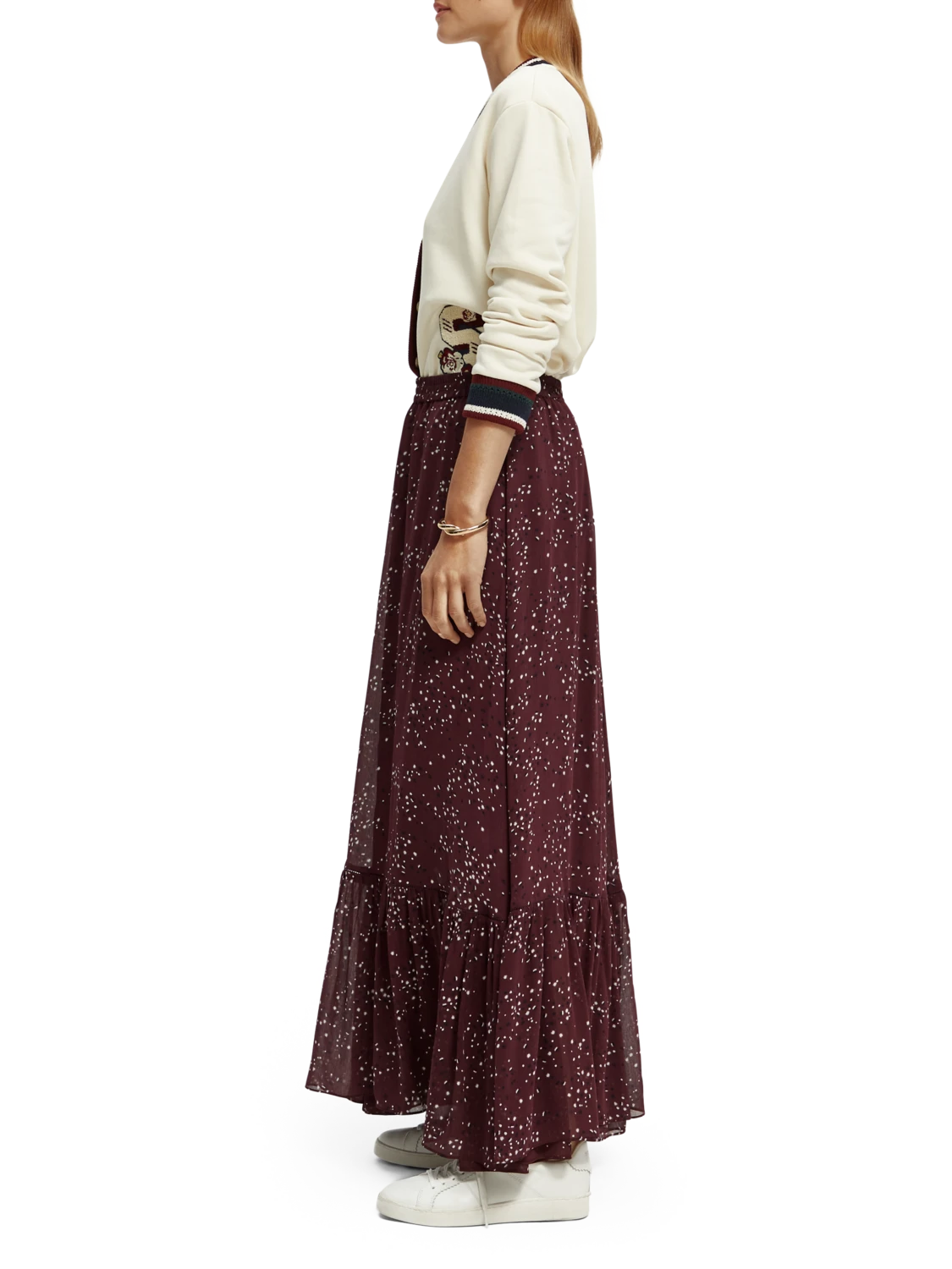 This maxi length skirt comes in a soft chiffon, adorned with an eye-catching print. Finished with a single tier with gathering details giving an added dimension to this versatile style.
