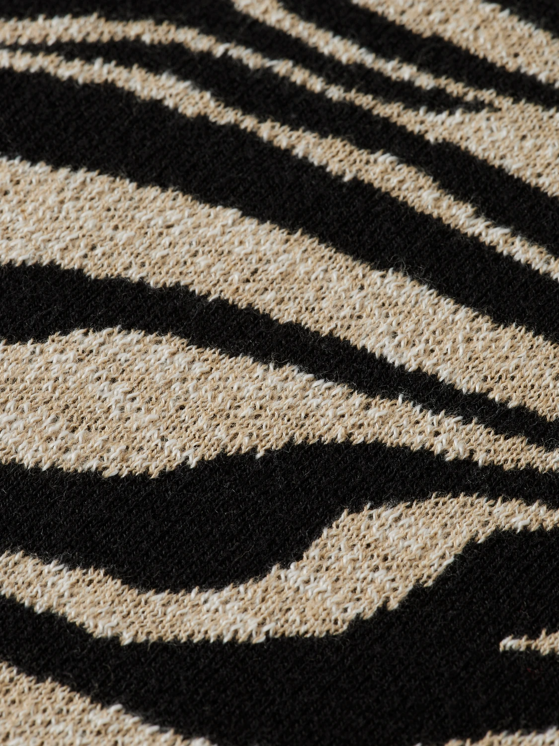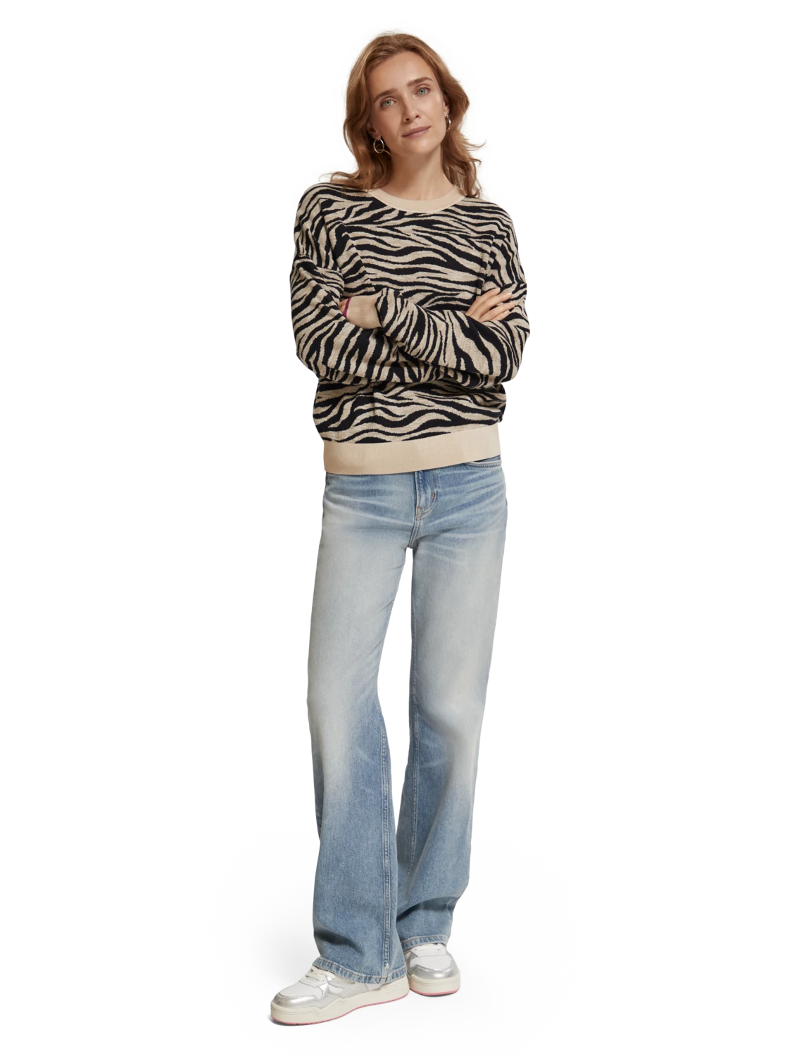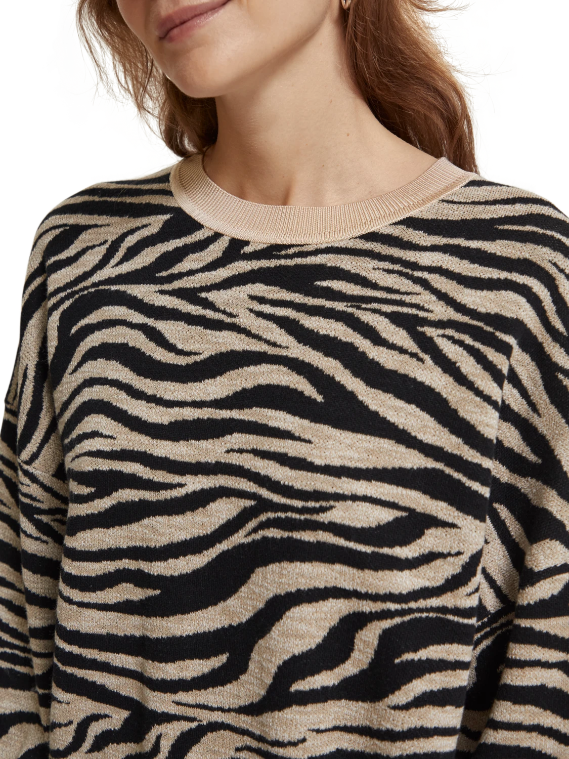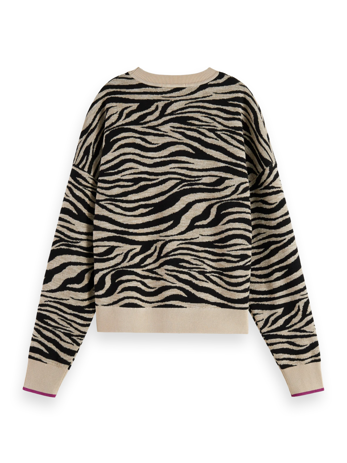 Unleash your bold side with this tiger jacquard crew neck pullover. The striking tiger jacquard pattern adds a fun and playful element to this classic silhouette. Made from a soft and comfortable fabric, this pullover is perfect for making a statement.