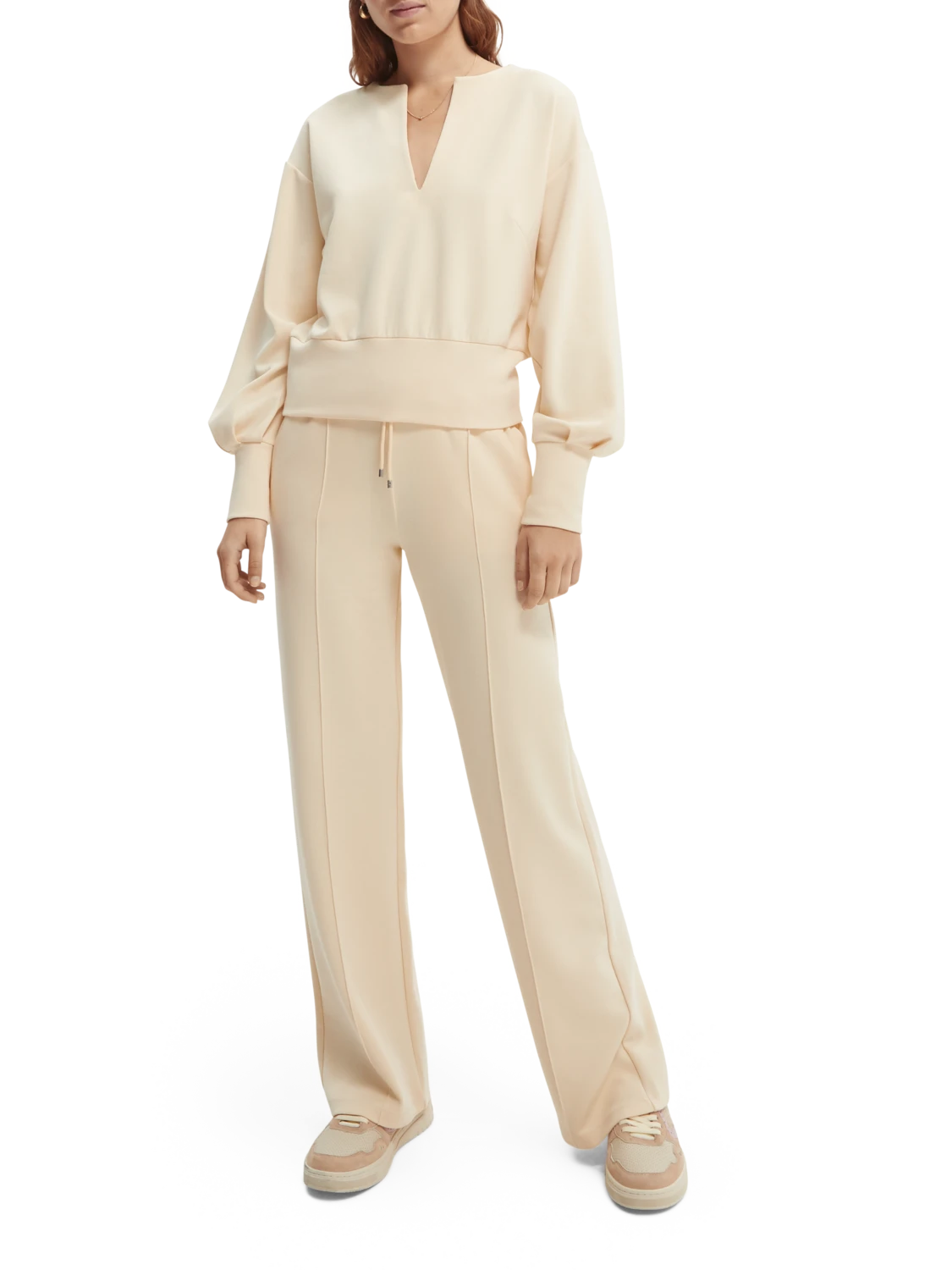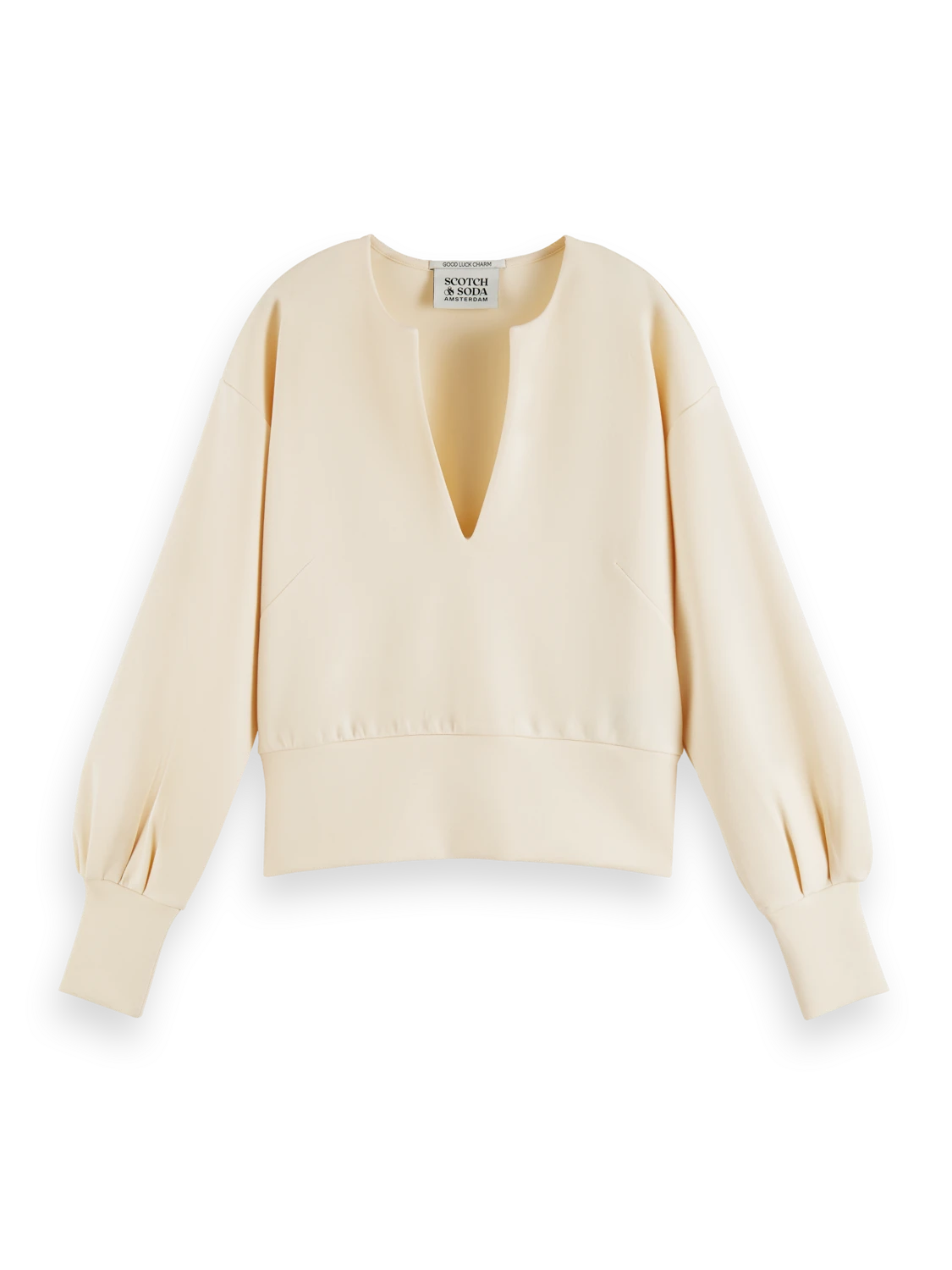 With a classic V-neck design and pleated sleeves, this top is easy to dress up and down.